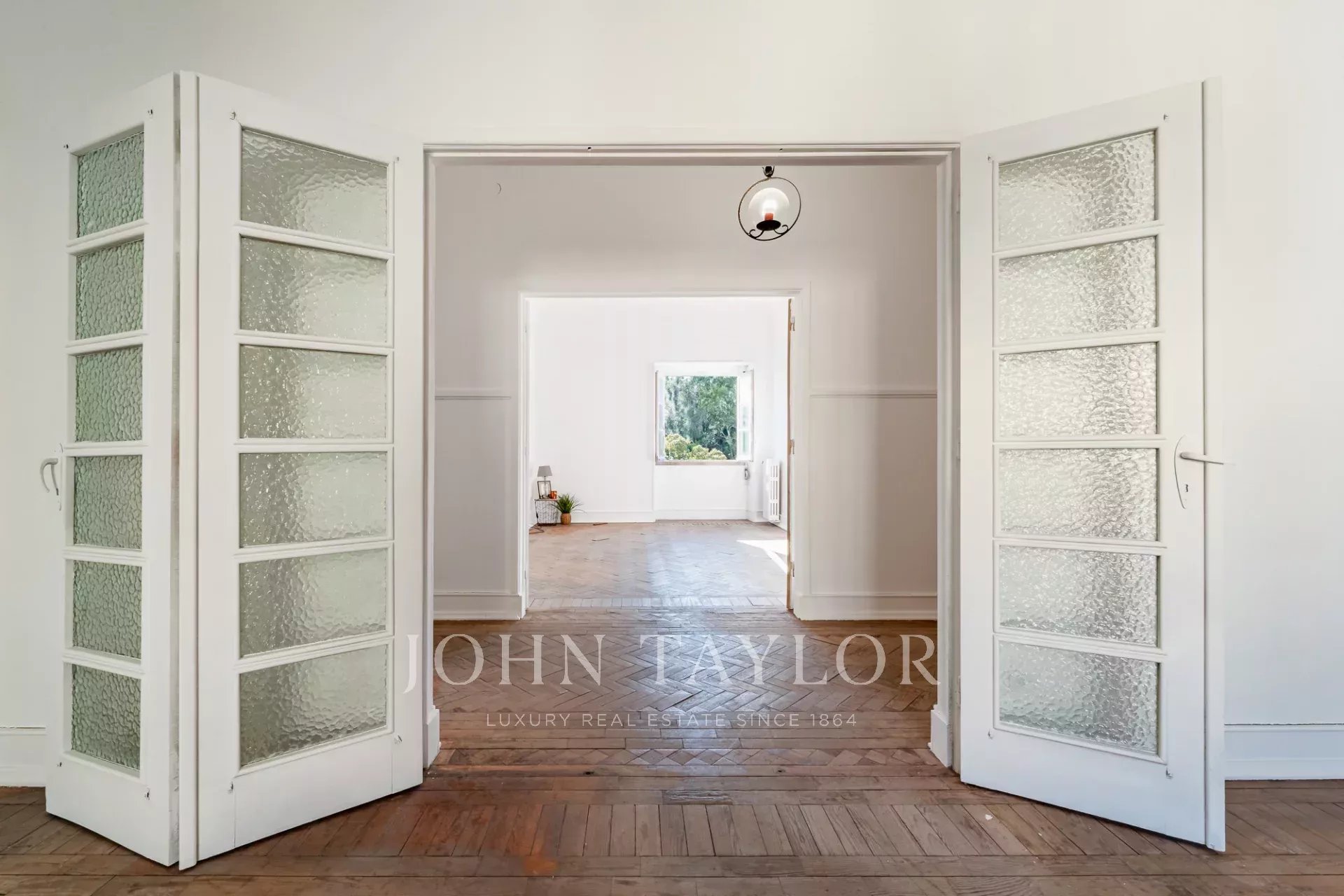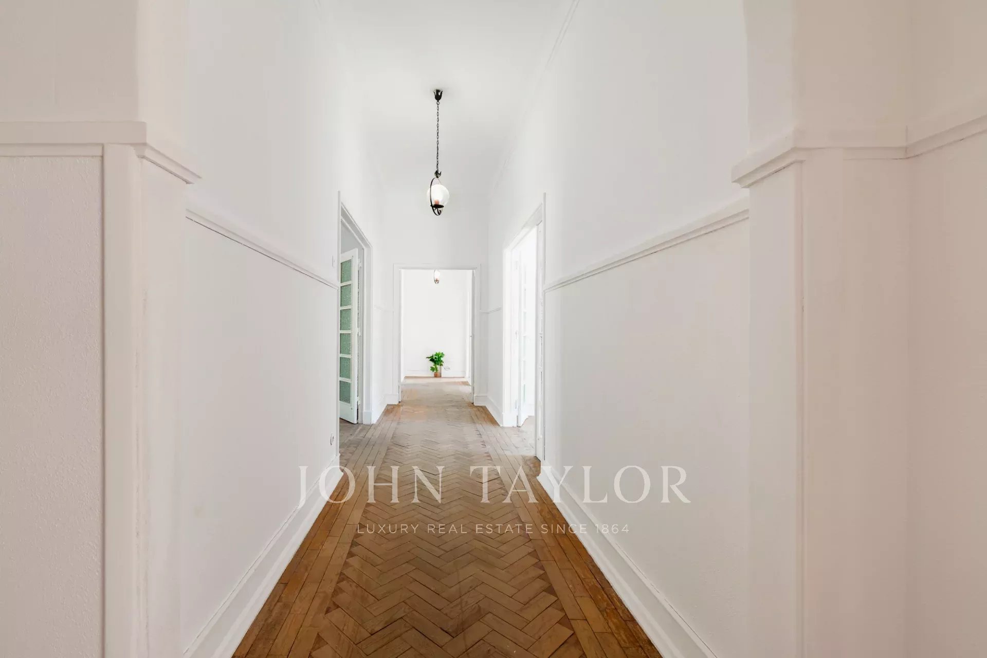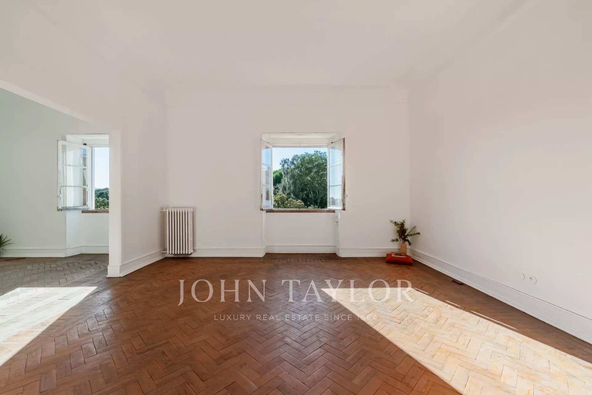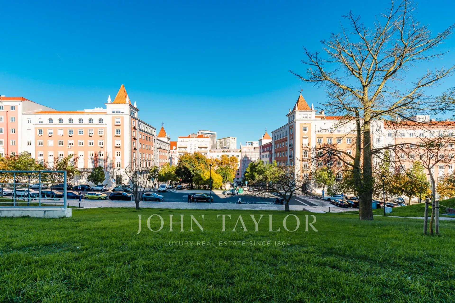 Com 238 m² de área privativa, este imóvel distingue-se pela luminosidade excecional, pé-direito alto e vista direta sobre o verde do Parque Eduardo VII. Inserido num edifício clássico com elevador, o apartamento situa-se num 4.º andar, garantindo privacidade e uma involvência tranquila. Dispõe ainda de estacionamento no exterior para residentes, um privilégio raro nesta localização.