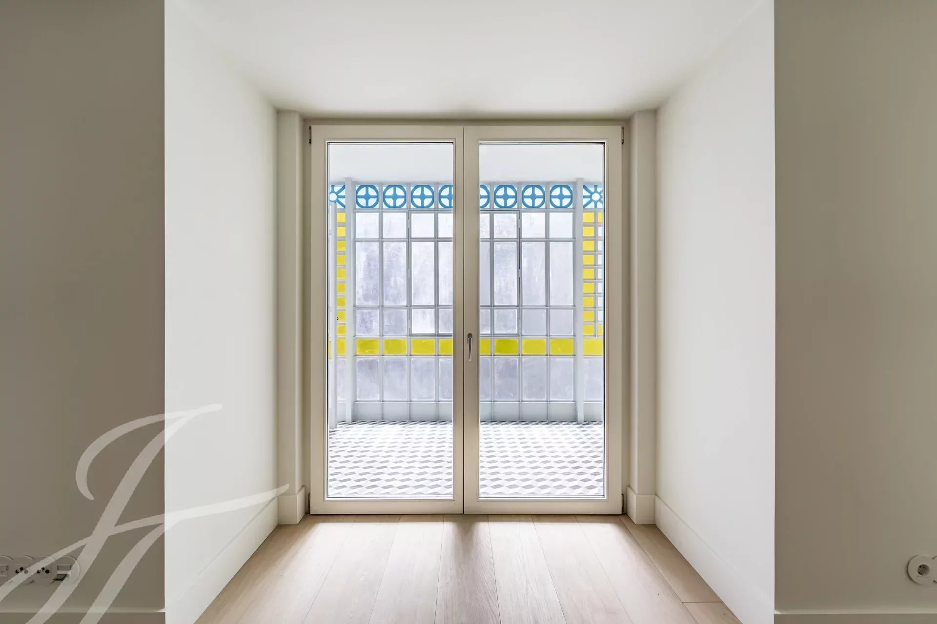 O edifício usufrui de uma exposição solar excecional, graças à sua posição de esquina, com fachadas viradas a sul e nascente, além de uma claraboia que reforça a luminosidade natural no interior.
