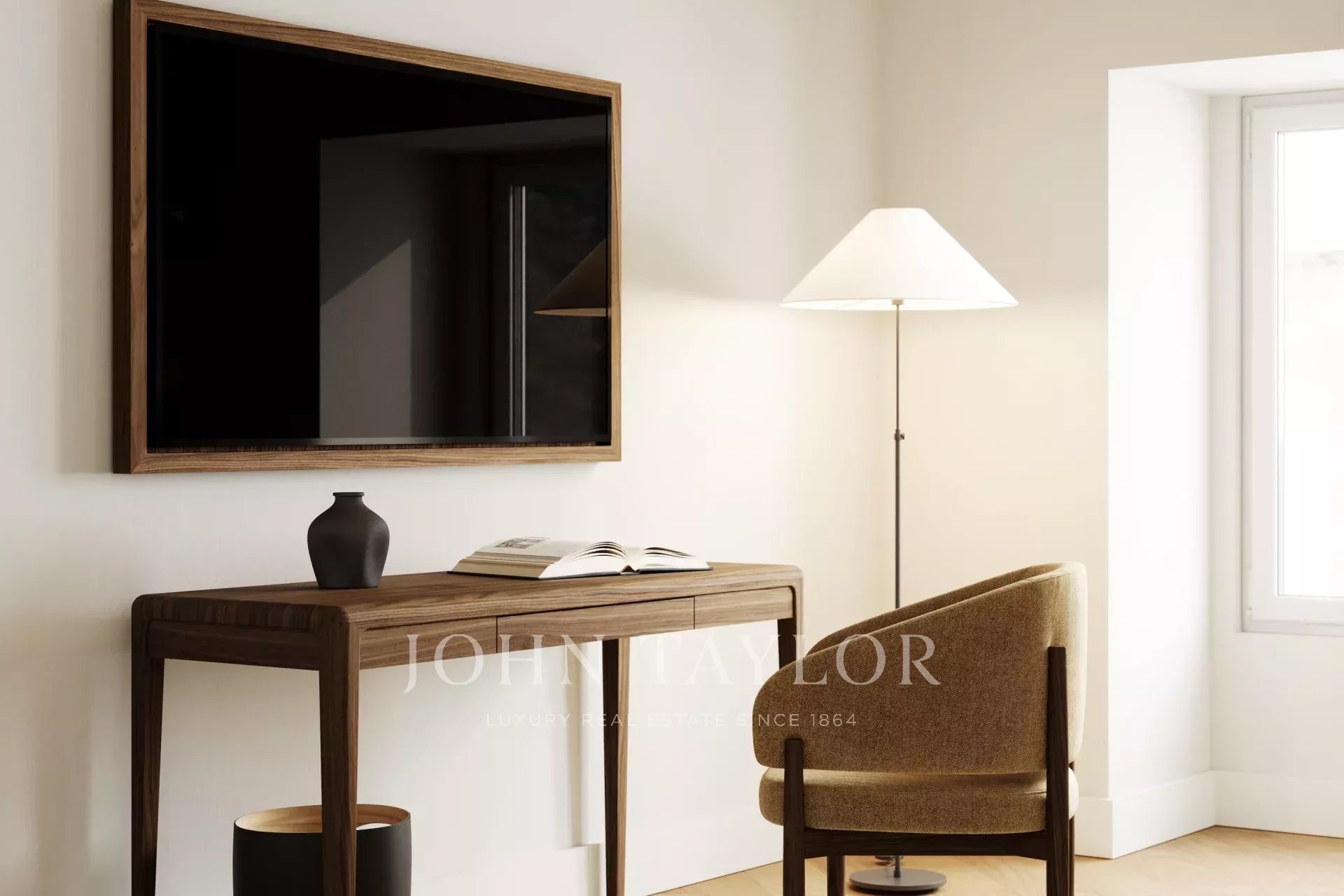 Os acabamentos de alta qualidade incluem pisos de madeira maciça, casas de banho em mármore e uma paleta de cores neutras, enquanto os detalhes arquitectónicos originais foram preservados por toda a parte. A disposição é simultaneamente prática e requintada, concebida para viver a tempo inteiro ou como uma residência de luxo para estadias mais curtas.