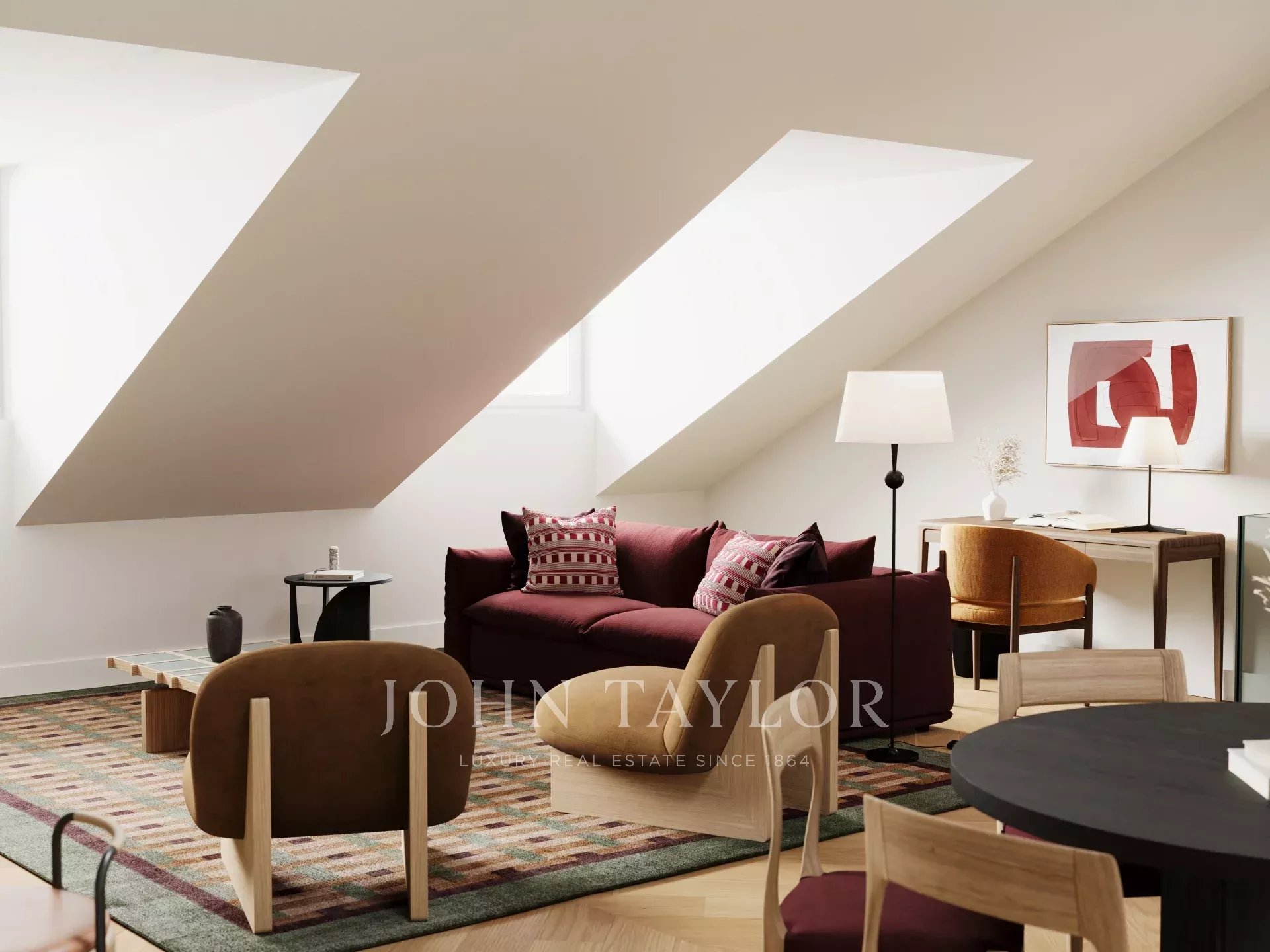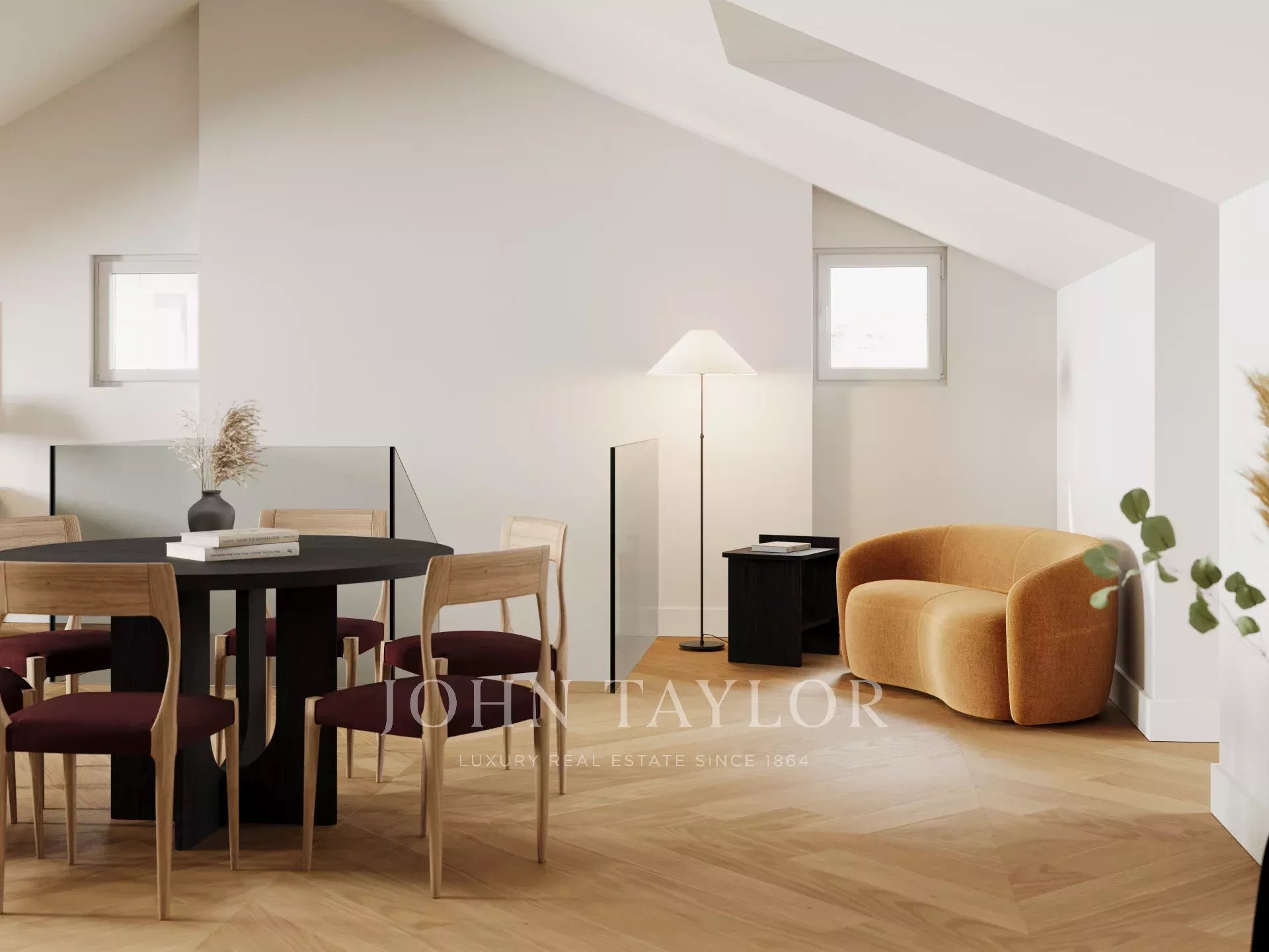 Localizado no último andar da Casa dos Fanqueiros, um edifício do século XIX totalmente restaurado no coração da Baixa de Lisboa, este duplex com dois quartos oferece um espaço generoso, carácter arquitetónico e luz natural abundante em dois níveis cuidadosamente concebidos.