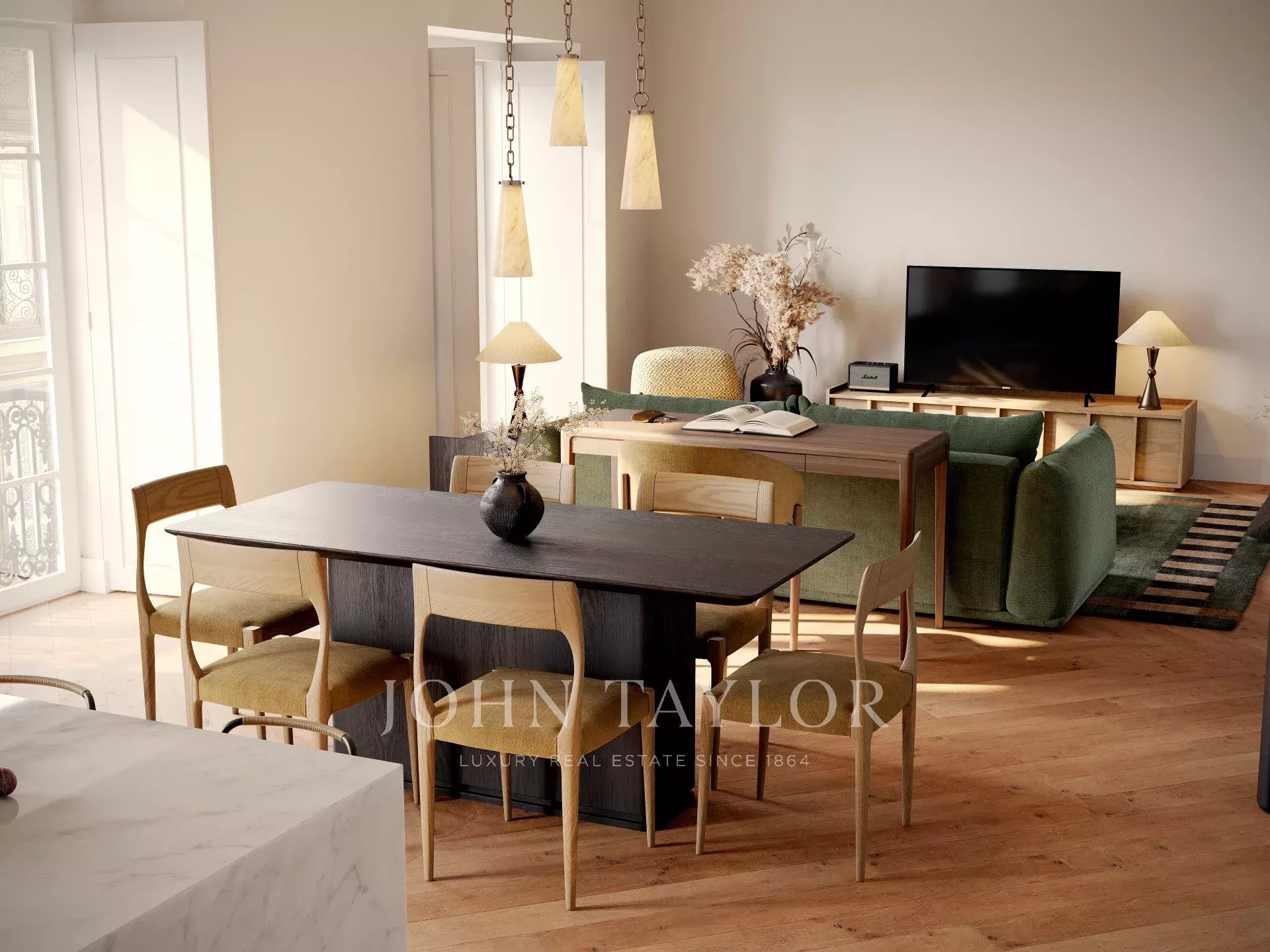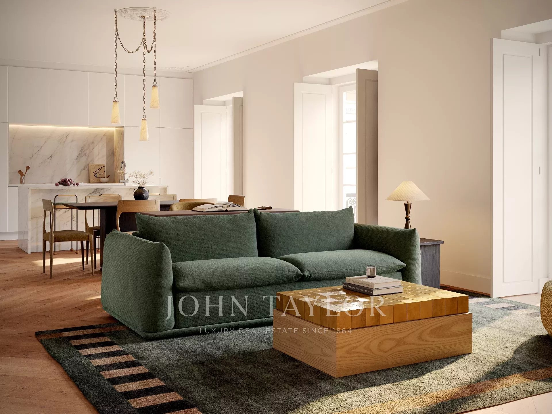 Os acabamentos de alta qualidade incluem pisos de madeira maciça, casas de banho em mármore e uma paleta de cores neutras, enquanto os detalhes arquitectónicos originais foram preservados por toda a parte. A disposição é simultaneamente prática e requintada, concebida para viver a tempo inteiro ou como uma residência de luxo para estadias mais curtas.