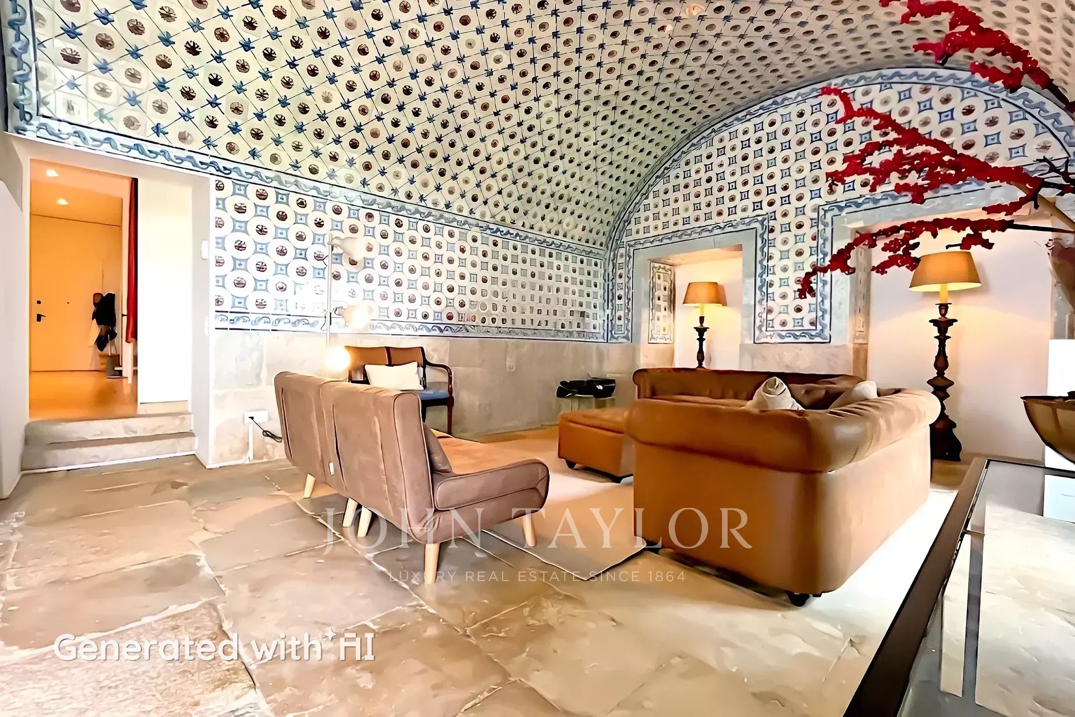 Este apartamento com 4 quartos e 4 casas de banho tem uma sala de estar de 100 m² decorada com azulejos do século XVIII e que se abre para um jardim privado virado para sul.