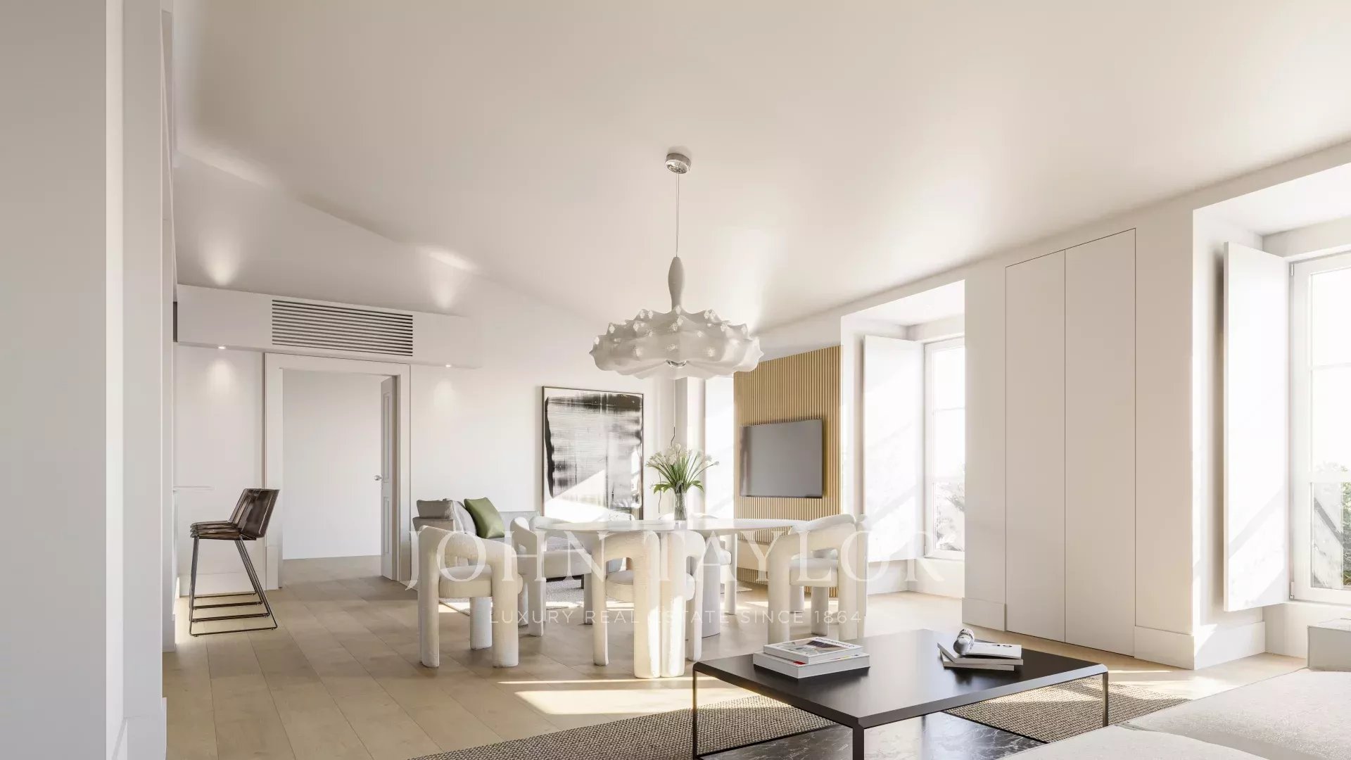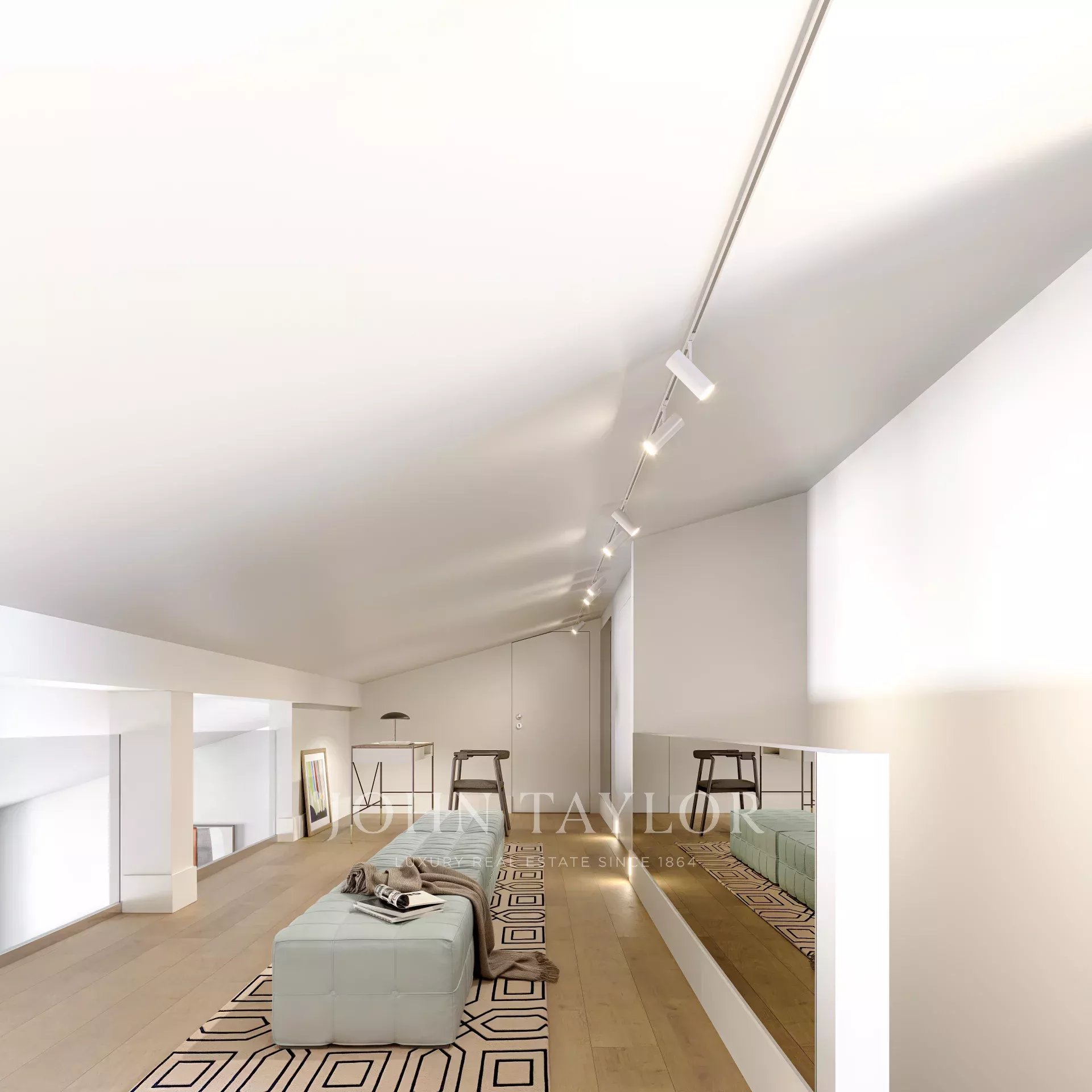 Esta penthouse de 158 m², acessível por elevador, está situada no edifício Alecrim 51, no Chiado, em Lisboa, numa das ruas mais emblemáticas da cidade. O edifício do século XVIII foi totalmente restaurado, preservando o seu estilo pombalino e incorporando confortos modernos.