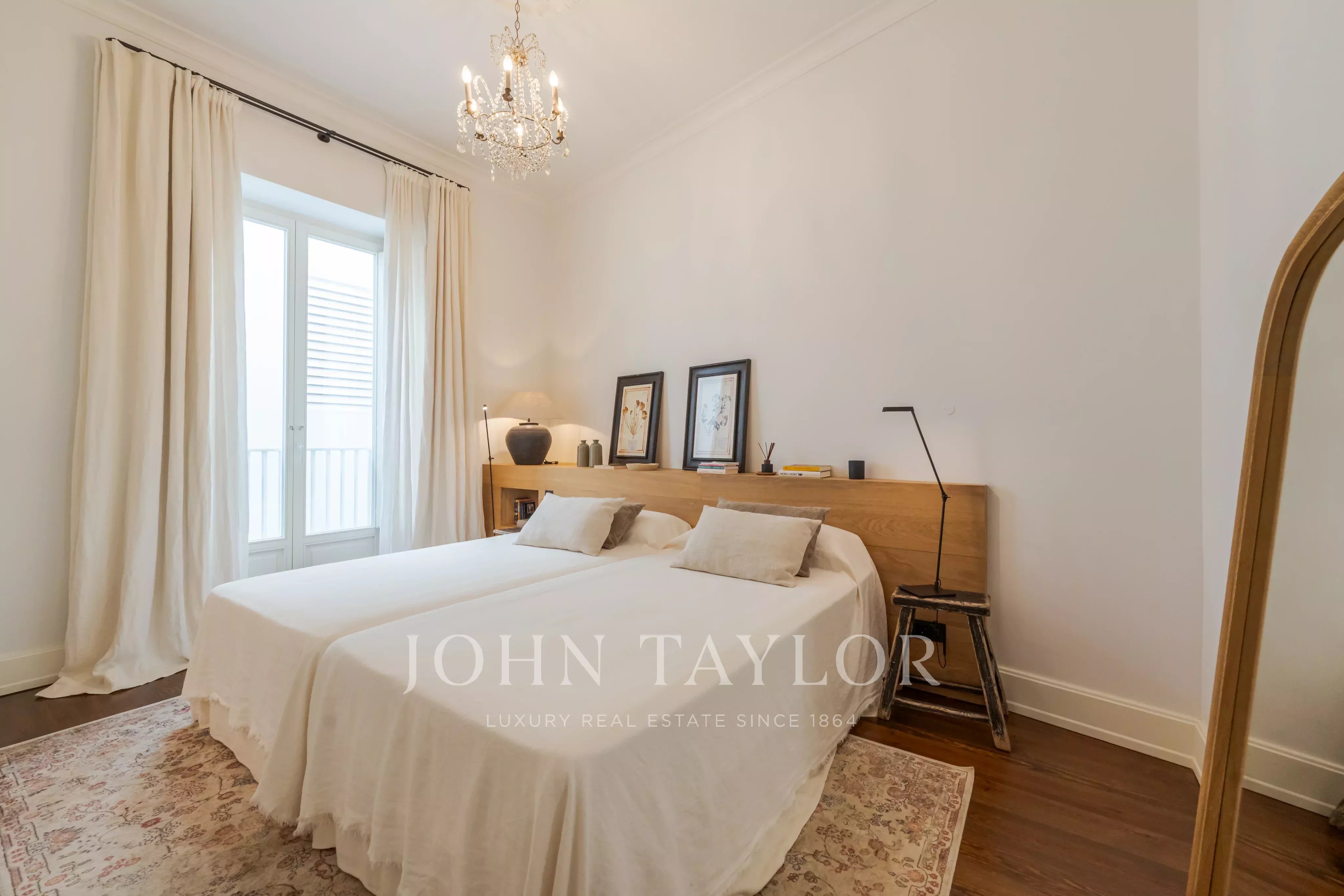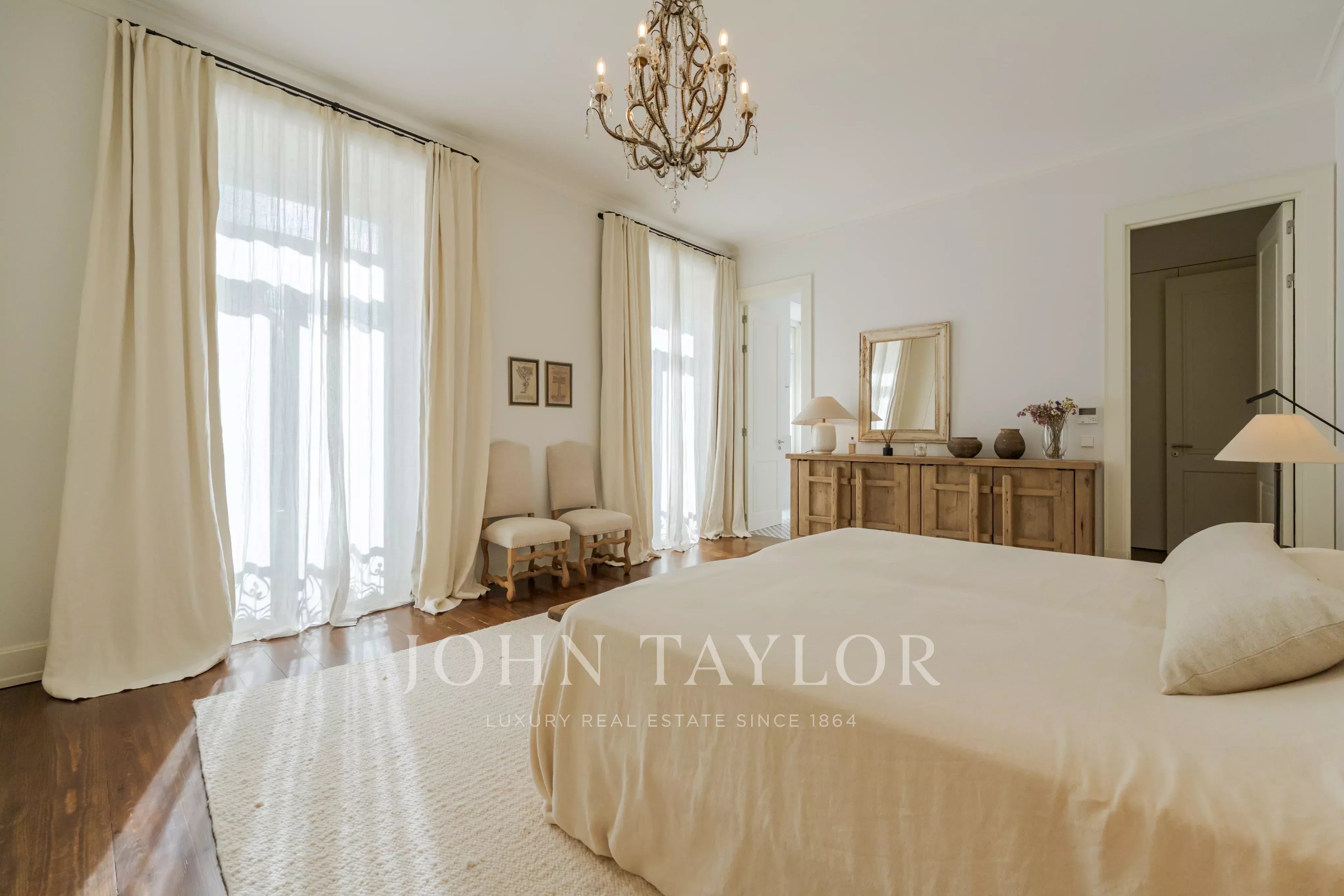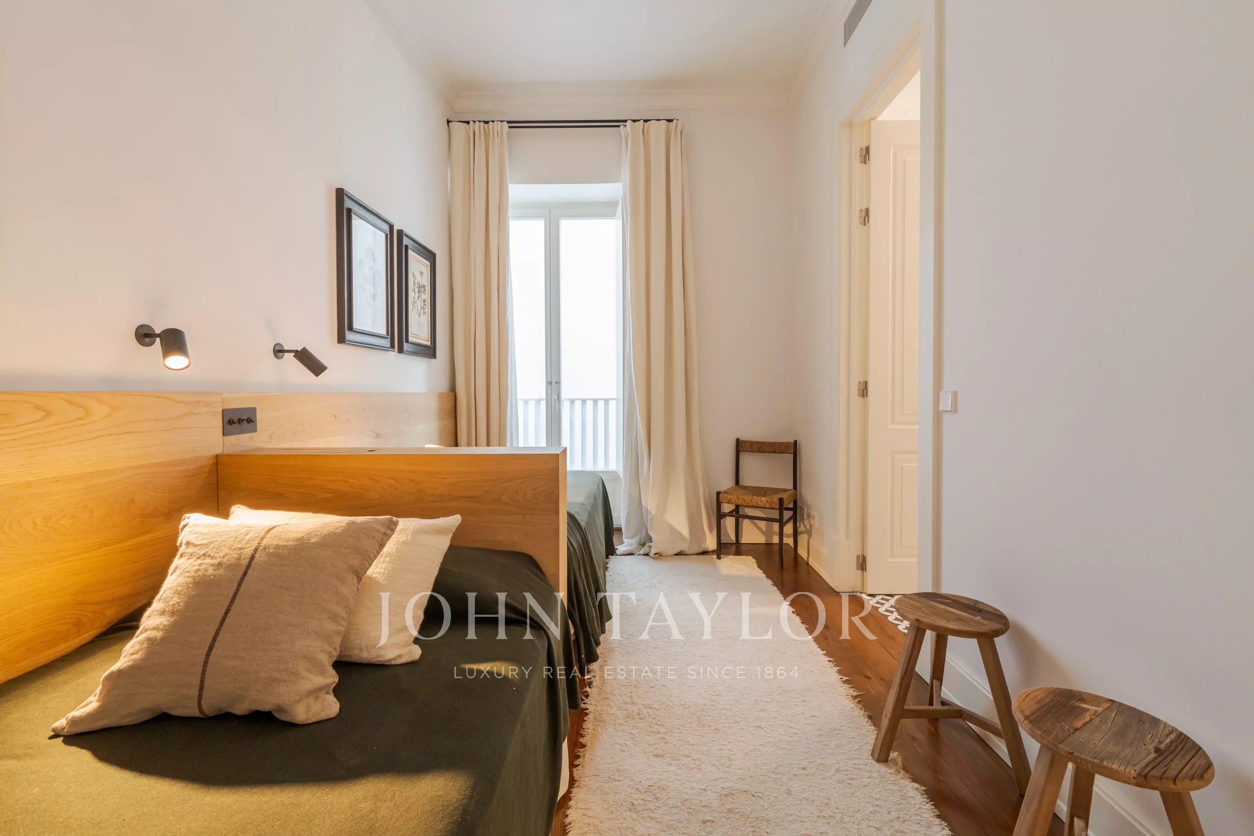 Um diálogo contido entre a arquitetura clássica e o conforto contemporâneo percorre todo o espaço: pavimentos em madeira maciça, carpintarias feitas à medida e aquecimento radiante nas casas de banho. Os amplos janelões assumem um papel central, captando a luz natural e revelando a arquitetura dos espaços.