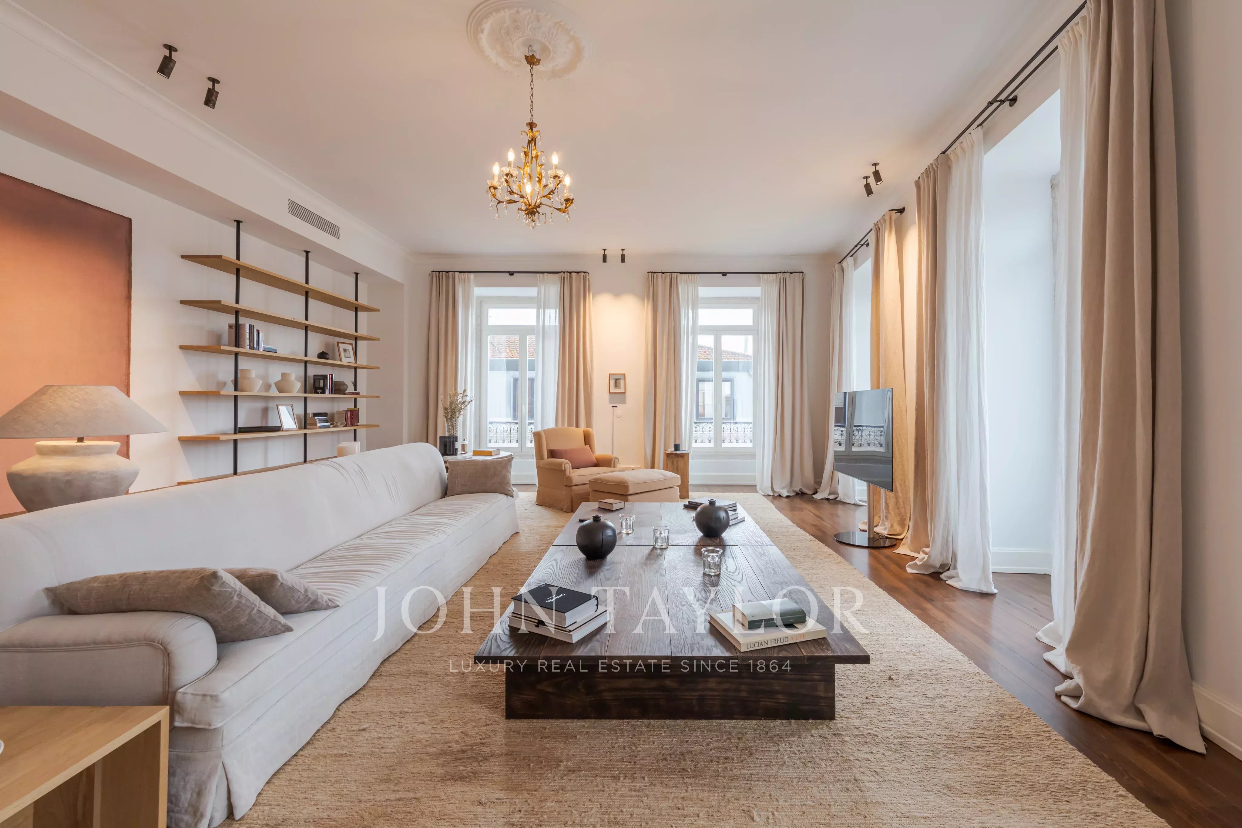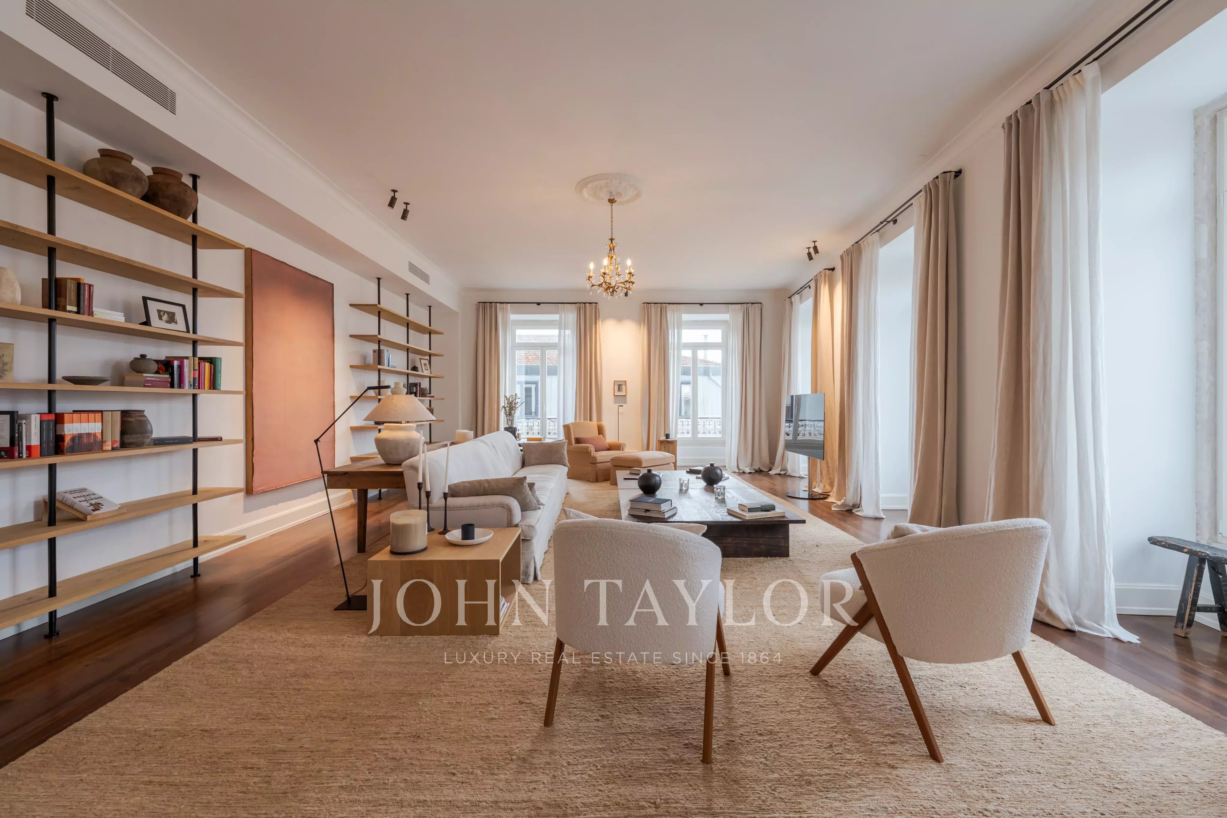 Inserido num edifício do século XIX restaurado, no coração do Chiado, este notável apartamento com 350 m² distingue-se pela sua amplitude e elegância serena. Situado numa rua discreta, oferece um ambiente equilibrado no centro de uma das zonas mais vibrantes de Lisboa.