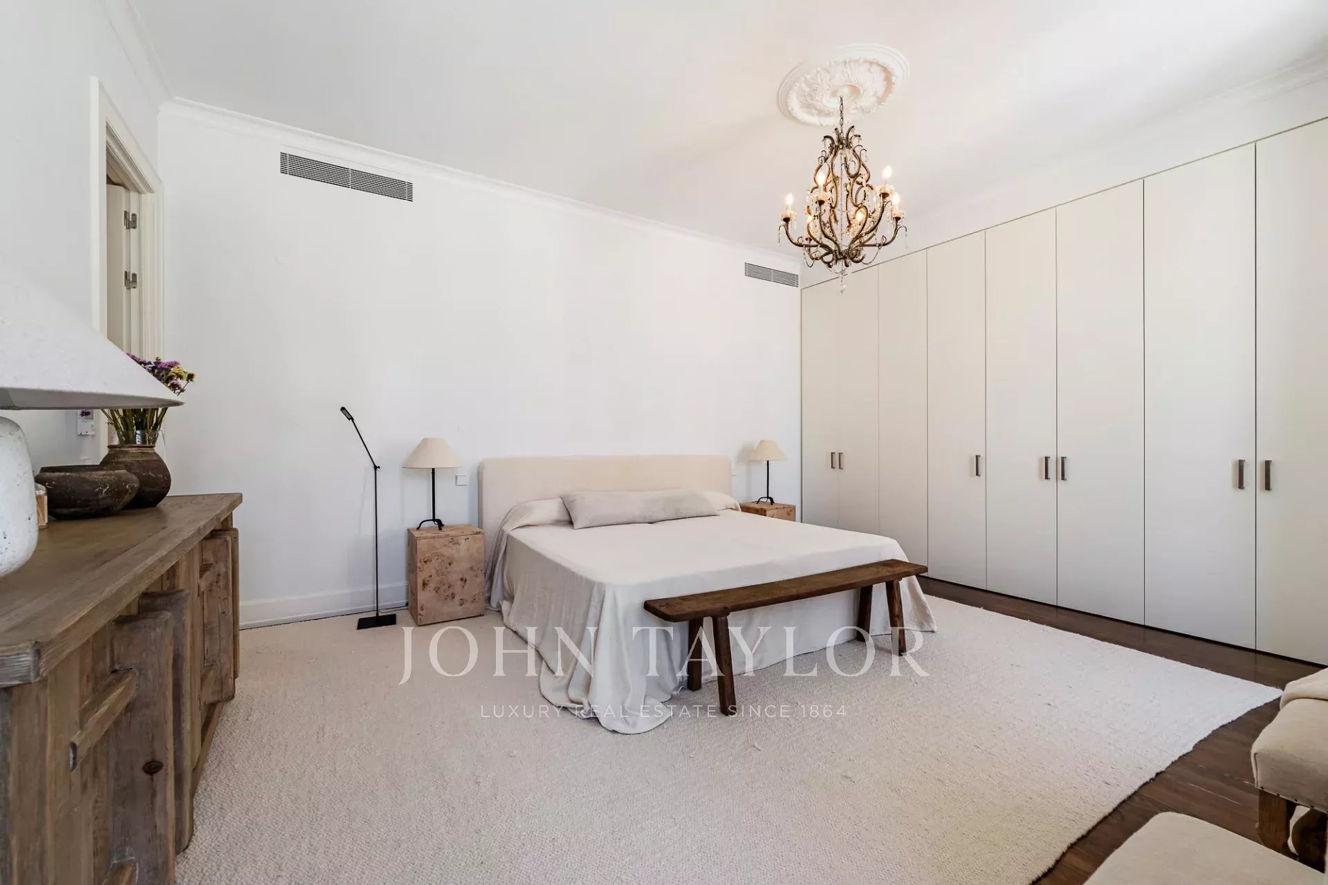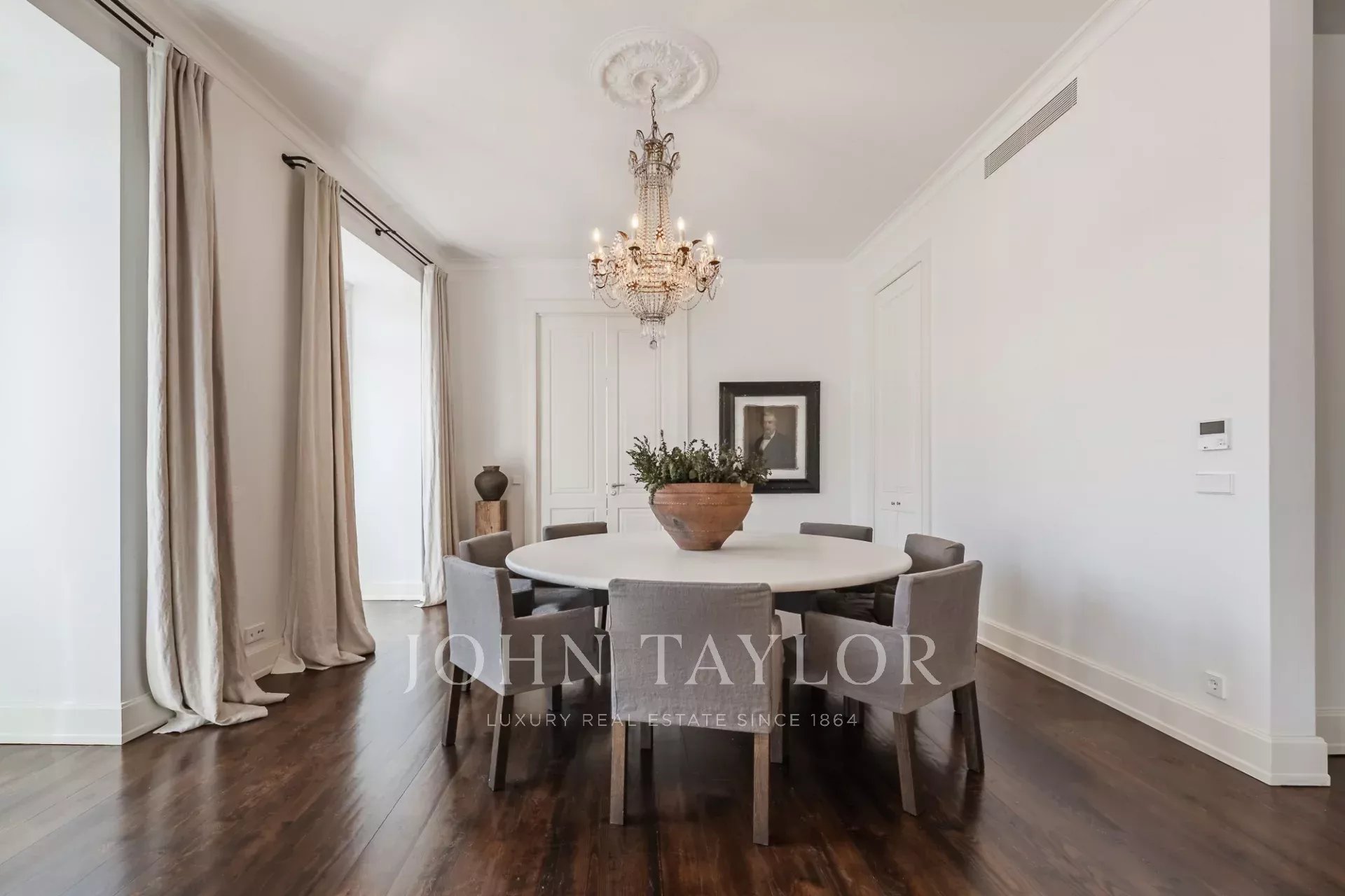 Com uma disposição generosa e bem concebida, destaca-se pelos pés-direitos altos, proporções elegantes e acabamentos de qualidade em toda a casa. Dispõe de quatro quartos, três dos quais em suite, e uma ampla sala de estar e jantar com cerca de 80 m², banhada por luz natural e com vistas parciais sobre o rio Tejo.