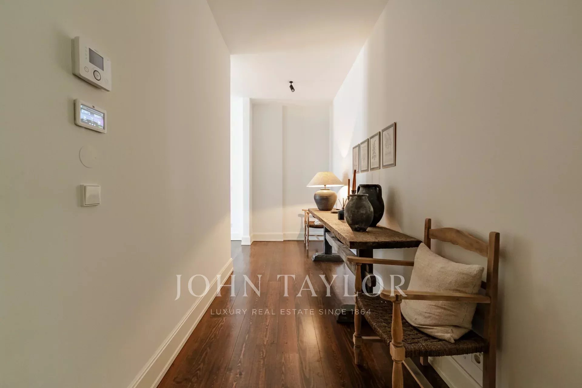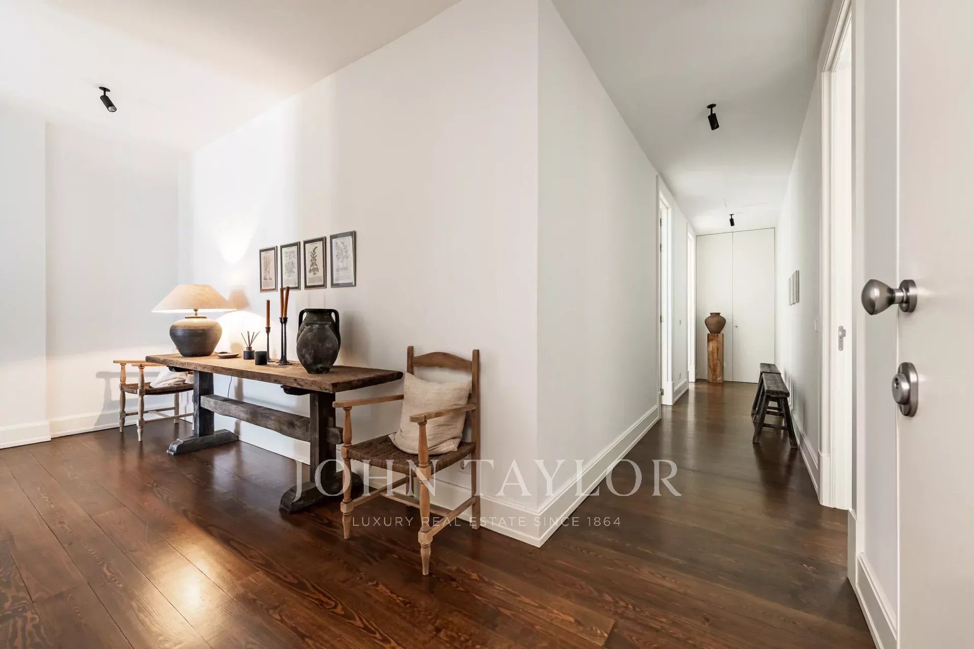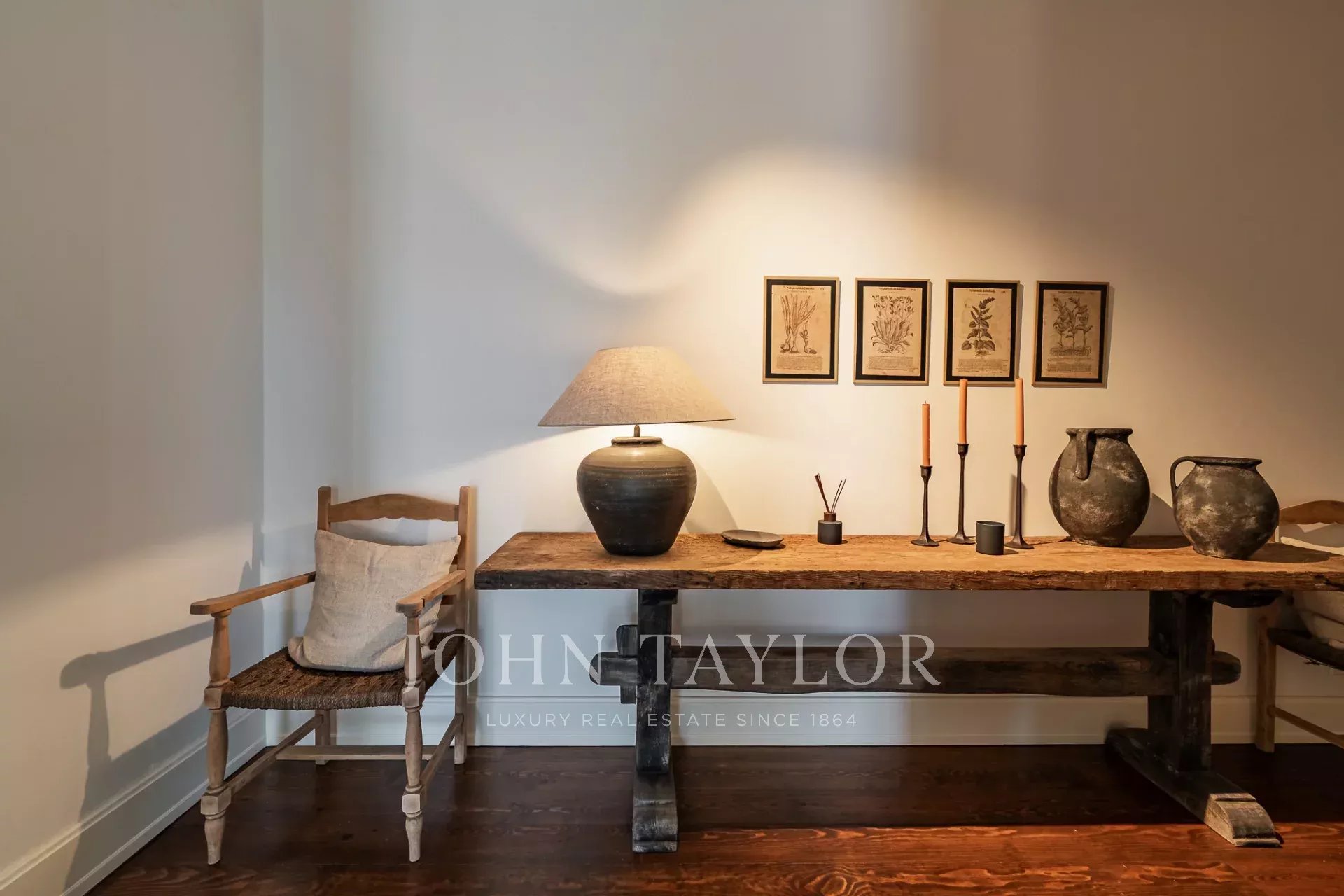 Os interiores combinam elementos clássicos com conforto contemporâneo, incluindo soalhos em madeira maciça, acabamentos feitos por medida e piso radiante em todas as casas de banho e na casa de banho social. Cada detalhe reflete qualidade e cuidado, criando uma atmosfera que equilibra o charme clássico com a sofisticação moderna. A cozinha está totalmente equipada e conta com uma zona de refeições luminosa e bastante arrumação.