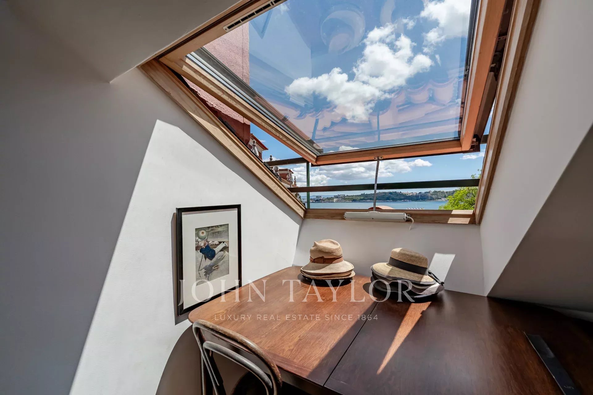 No andar de cima, uma segunda suite principal de 41,7 m² com casa de banho privativa cria um retiro tranquilo e luxuoso. Uma deslumbrante mezzanine de 53 m² oferece uma versatilidade sem fim - ideal para um escritório em casa, sala de cinema, área de fitness ou sala de lazer. A partir daqui, os residentes podem desfrutar de vistas panorâmicas sobre o rio que melhoram a atmosfera serena.