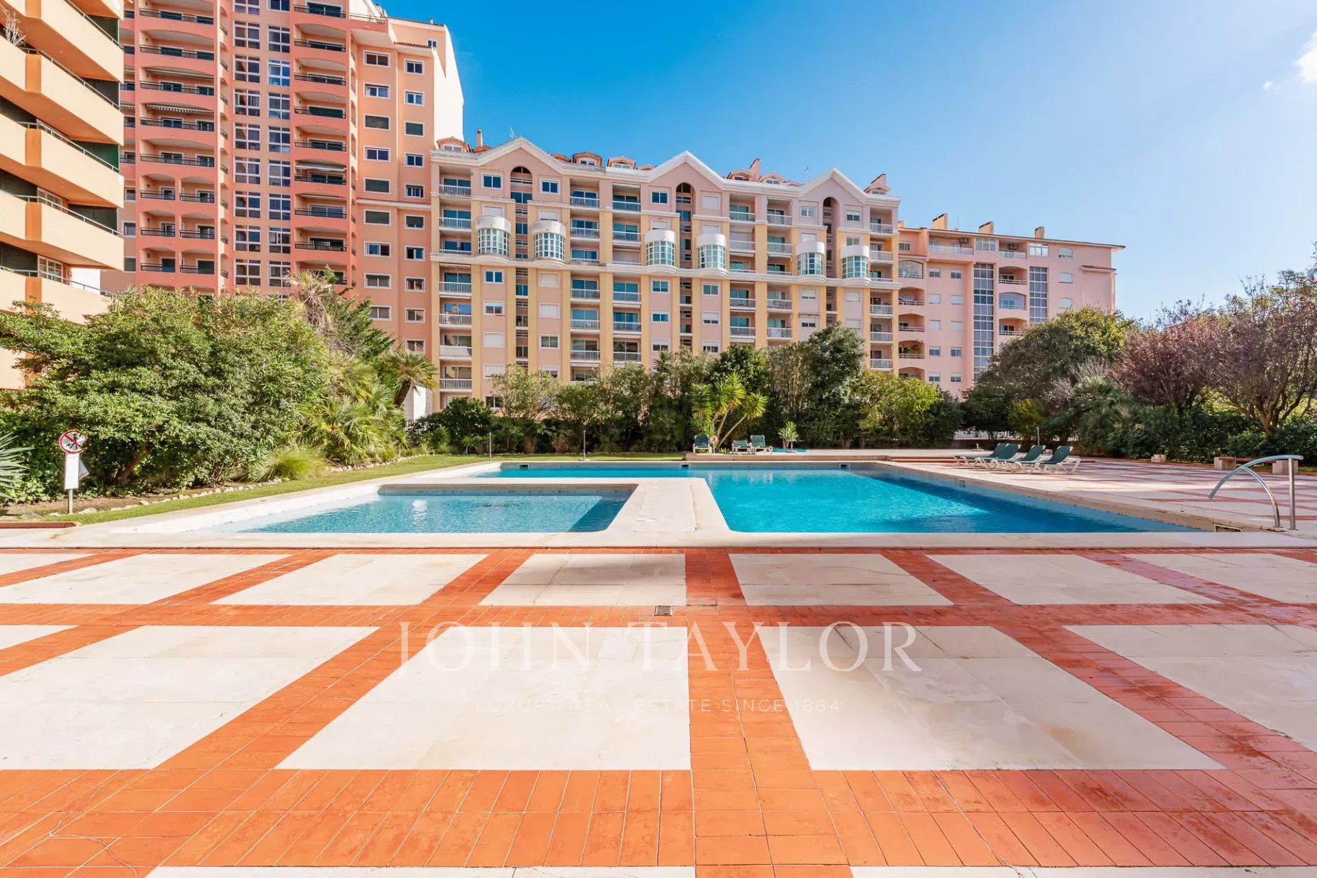 O condomínio conta com jardins espaçosos, zonas de descanso, duas piscinas (incluindo infantil), campo de squash e segurança diurna.