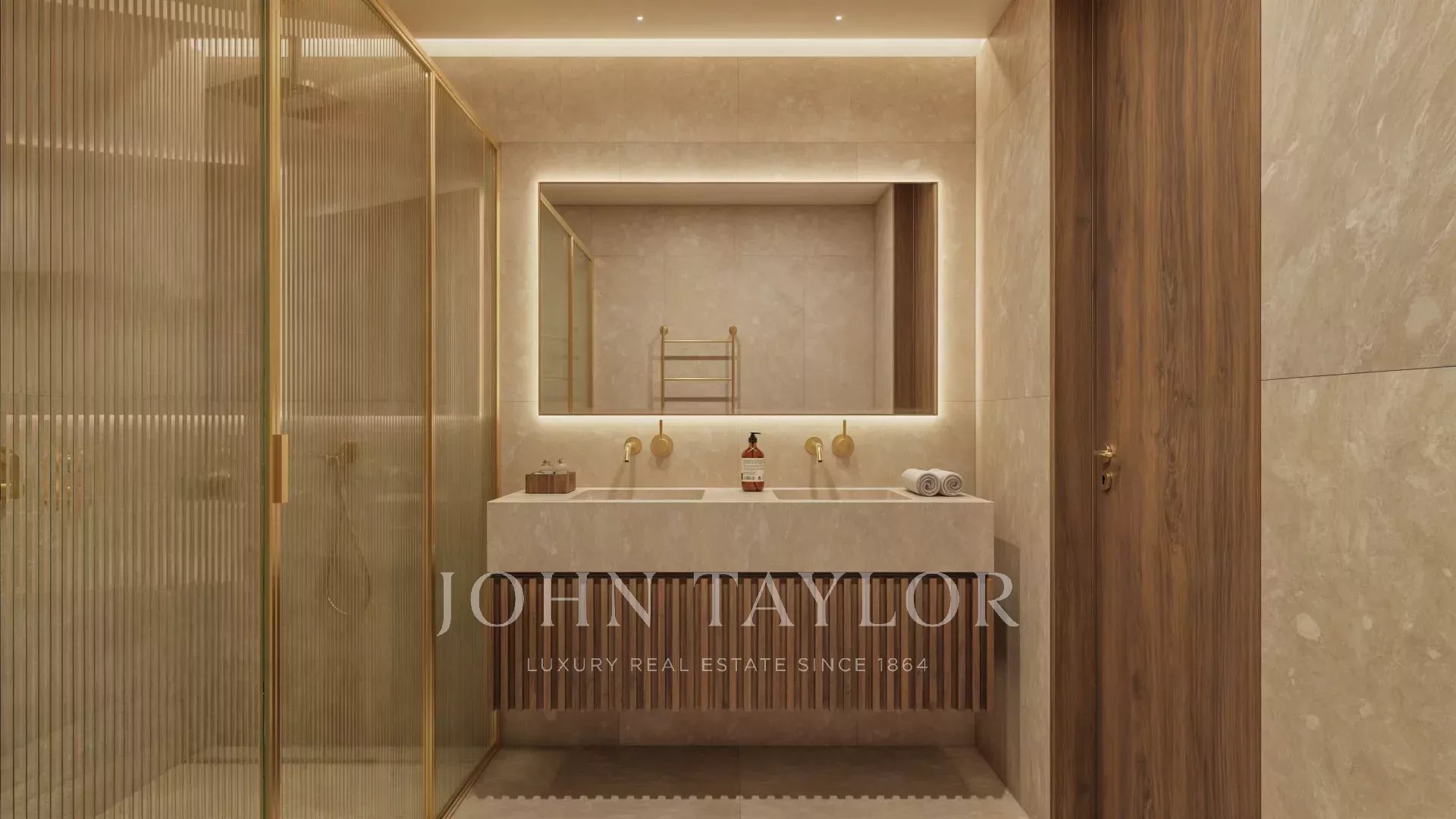 O apartamento possui uma área de construção de 185 m² e dispõe de 3 amplas suítes, uma cozinha aberta totalmente equipada, e uma sala de estar e jantar que dá acesso a uma generosa varanda e terraço com piscina. Inclui ainda uma casa de banho social e uma despensa ou lavandaria.