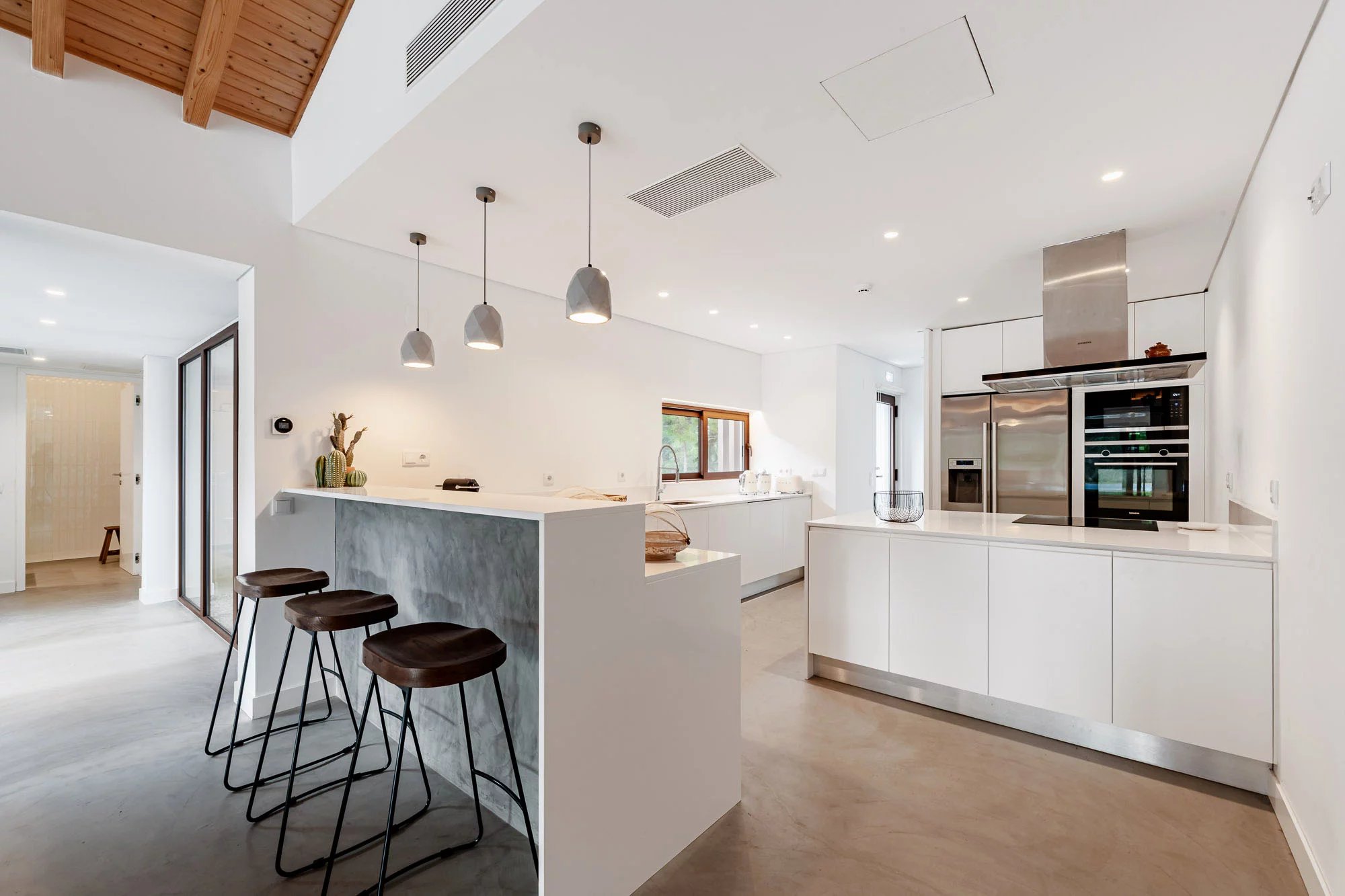 Destaques: acabamentos de alta qualidade, piso radiante, lareira, painéis solares para água quente sanitária, mosquiteiros e sistemas de rega e iluminação automáticos.