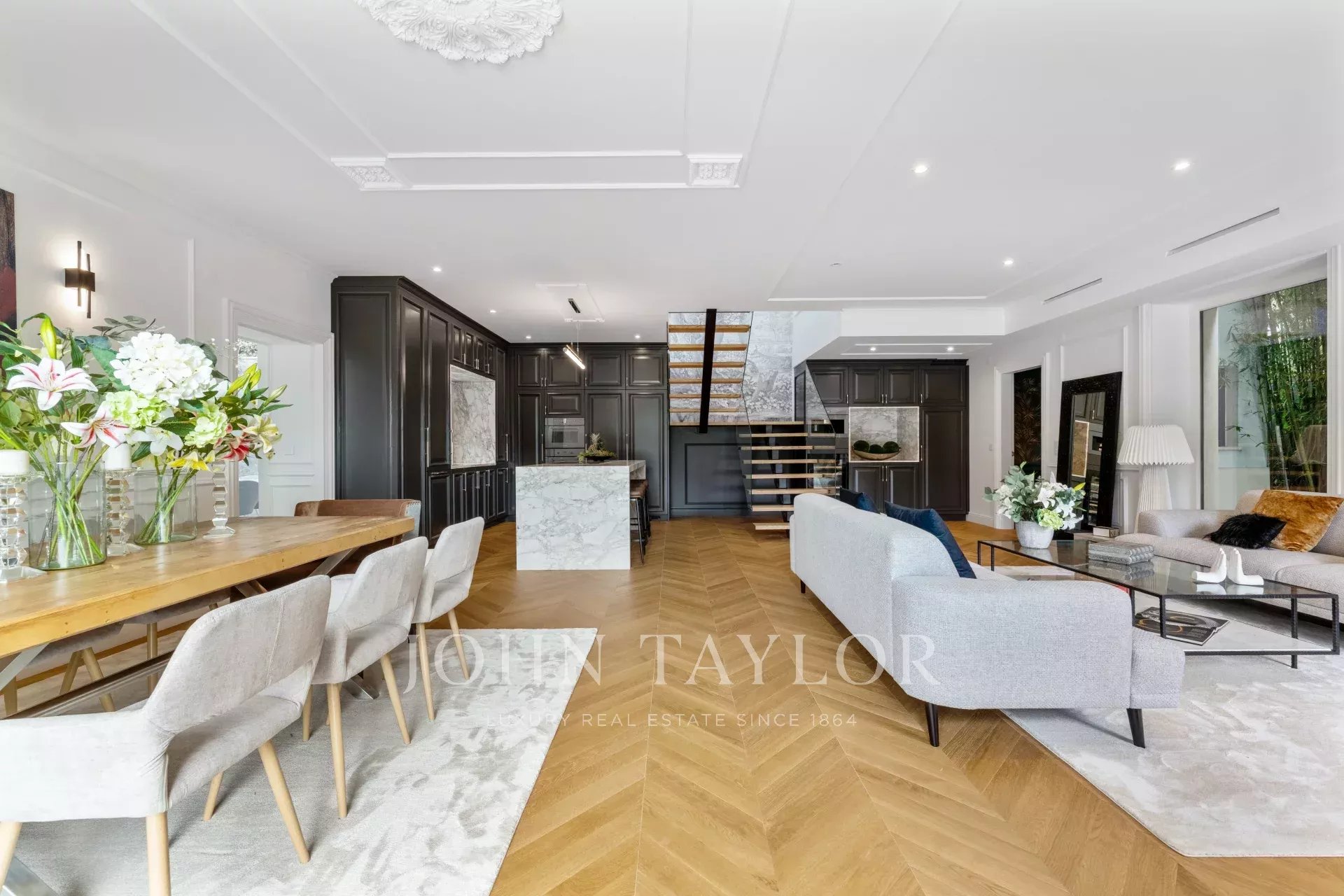 Esta elegante moradia de 300 m², implantada num lote de 700 m², foi totalmente renovada e encontra-se a uma curta distância a pé do centro de Cascais. Combina conforto, qualidade e um design contemporâneo, com acabamentos de topo em todas as divisões.