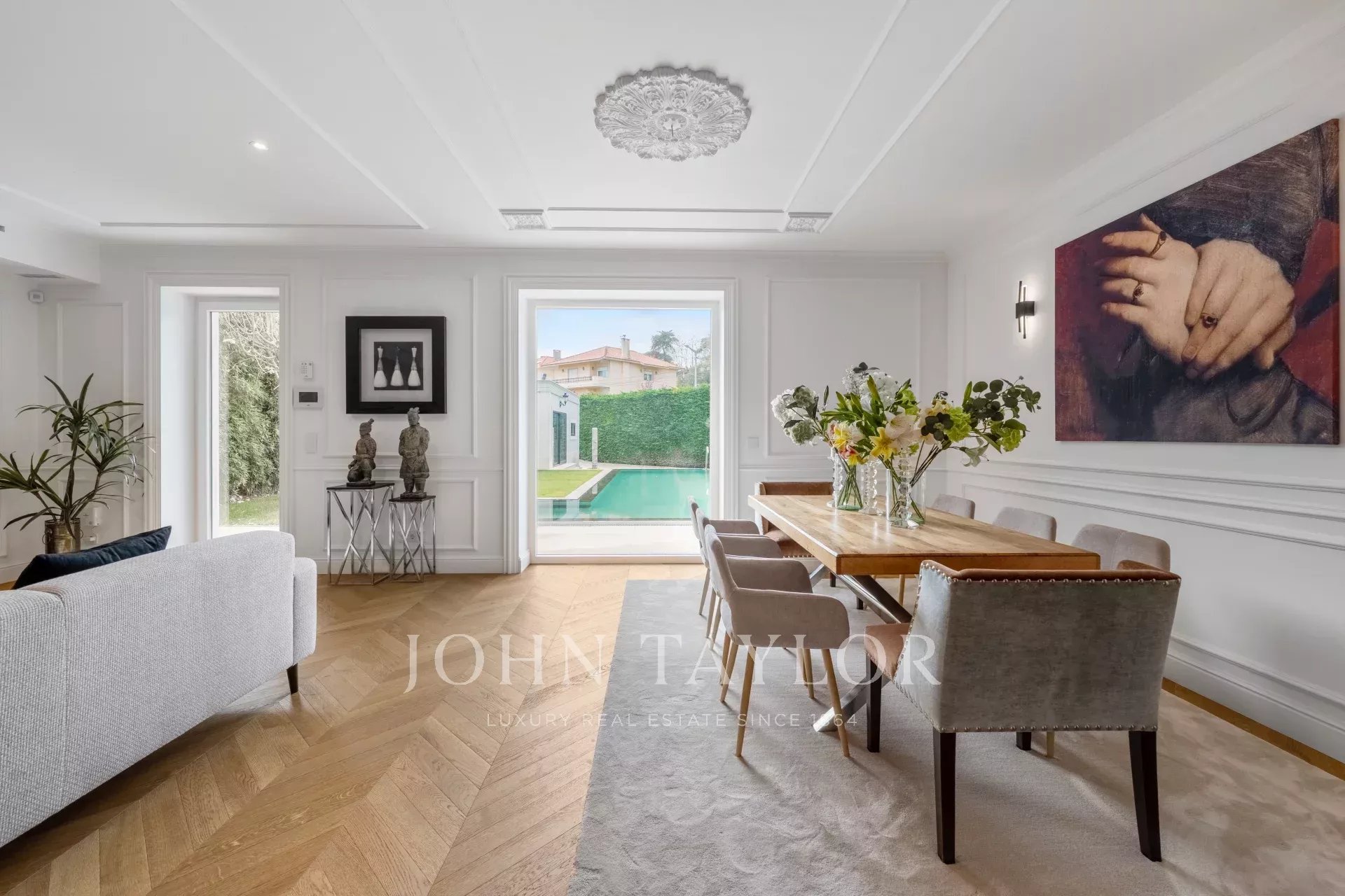 No exterior, o jardim privativo com piscina oferece um ambiente tranquilo e agradável. O anexo independente, com cozinha e casa de banho, é ideal para receber hóspedes, instalar um escritório ou montar um pequeno ginásio.