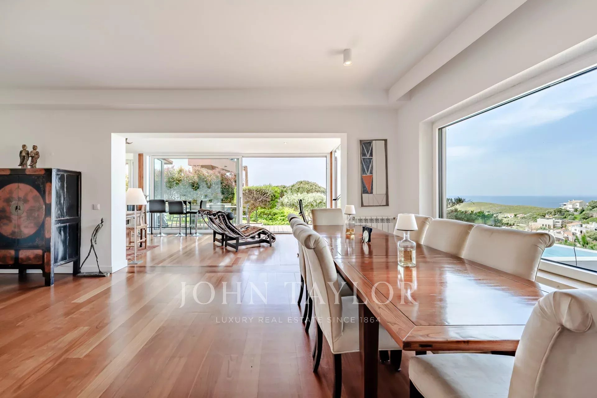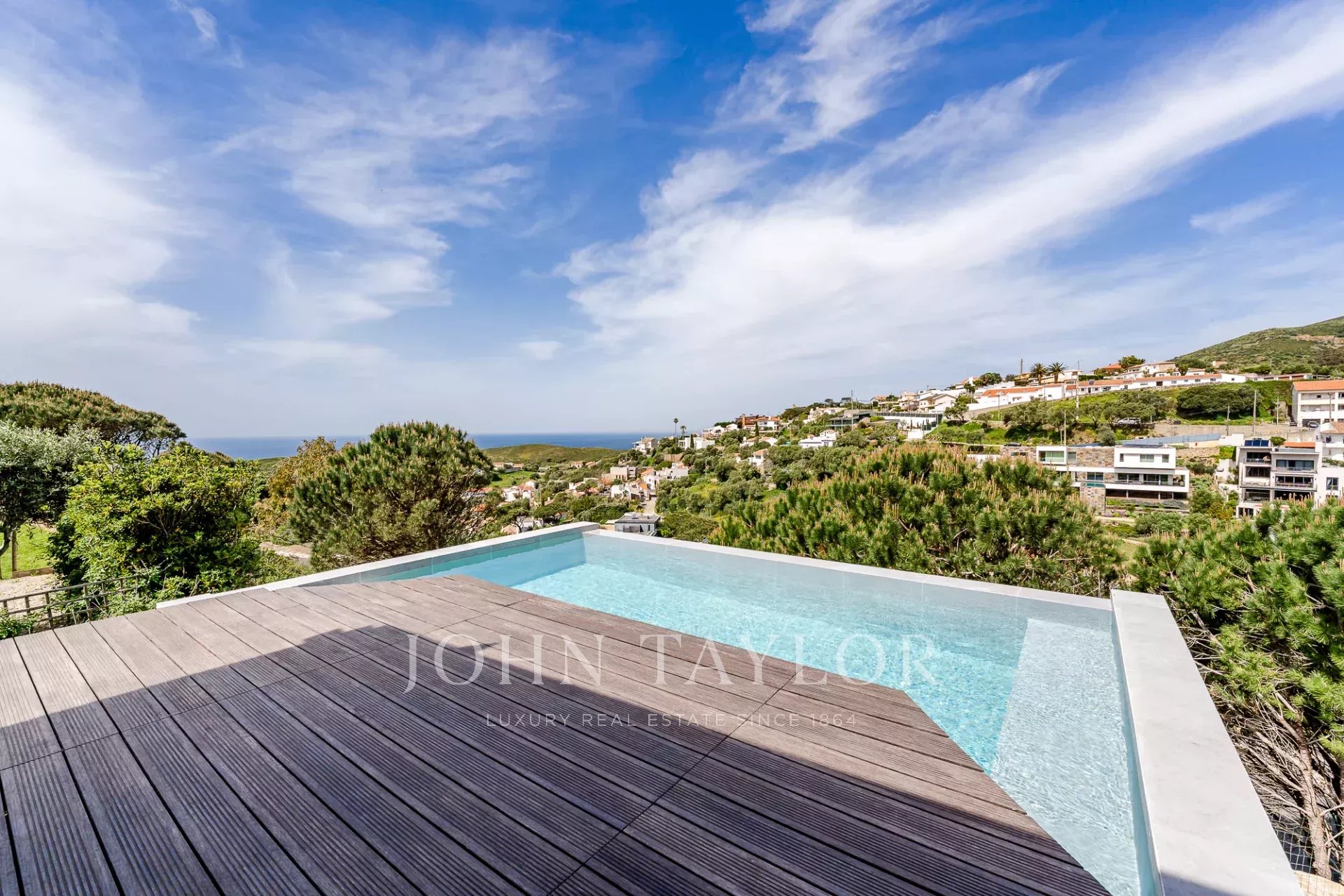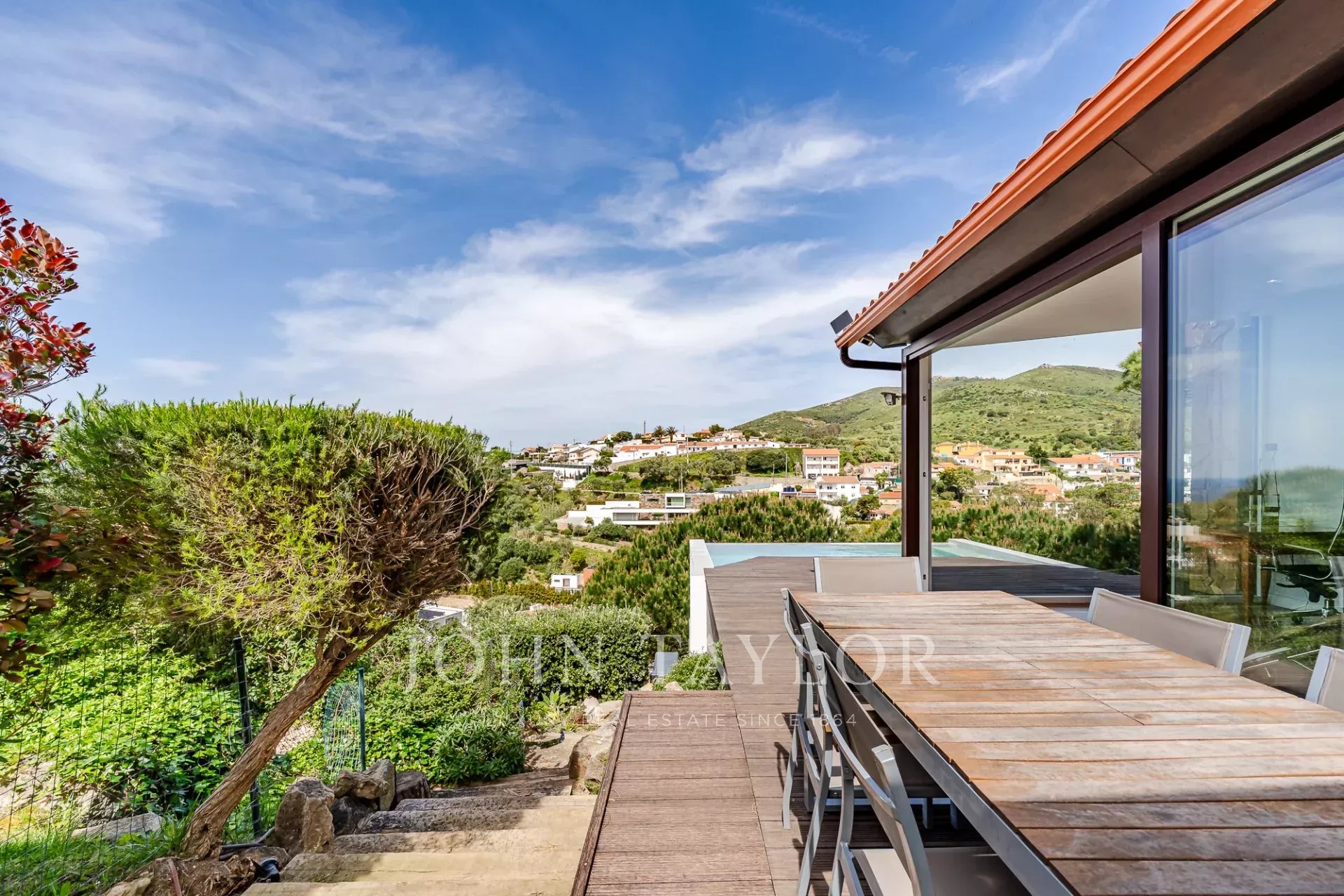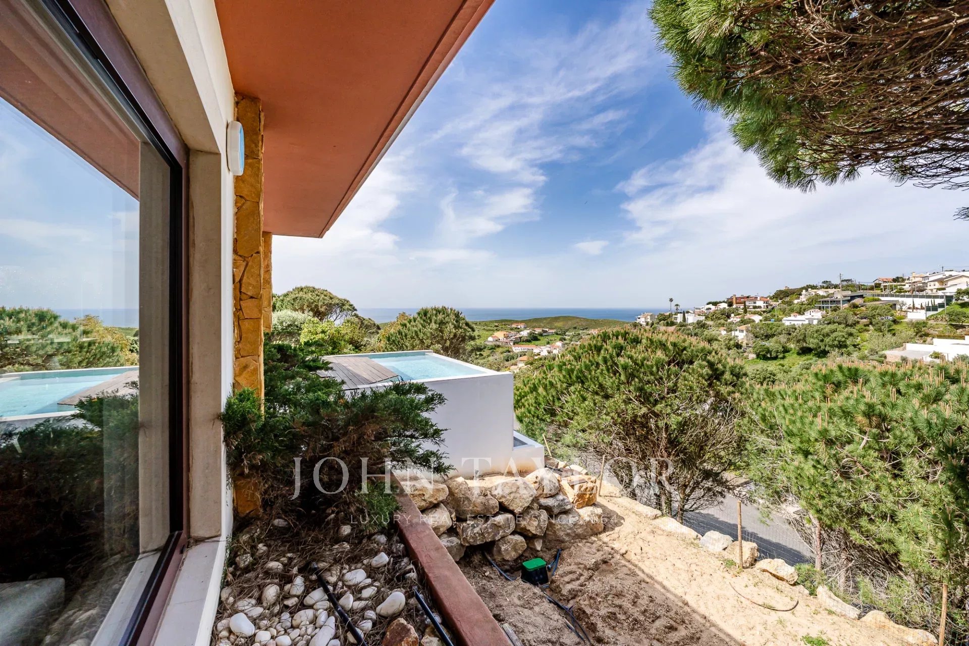 O terraço exterior e a piscina privada estão posicionados de forma a maximizar a vista para o mar, oferecendo uma forte ligação à paisagem circundante e total privacidade. Cada nível da casa tira partido da orientação e da vista, o que a torna um achado raro nesta zona da costa.