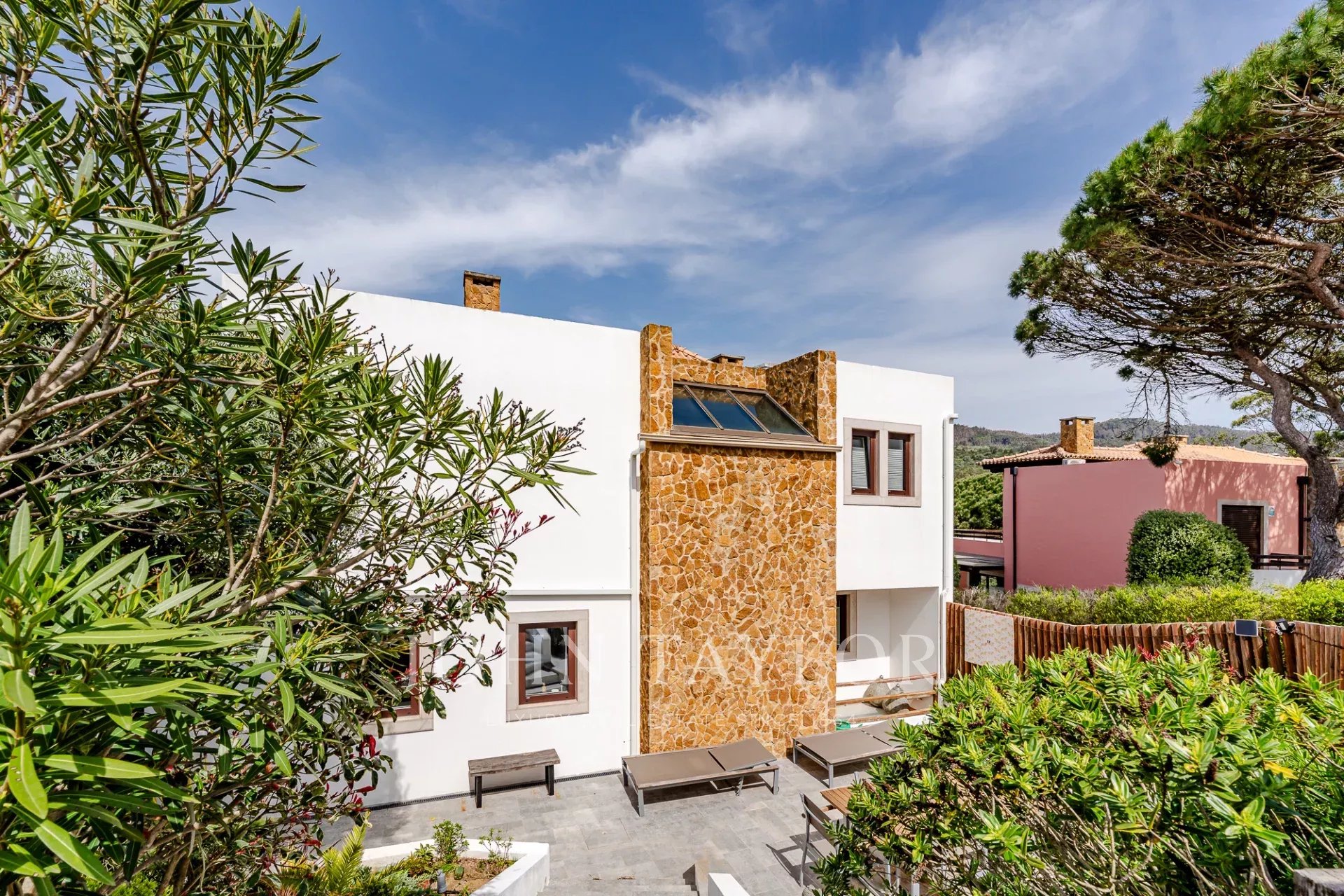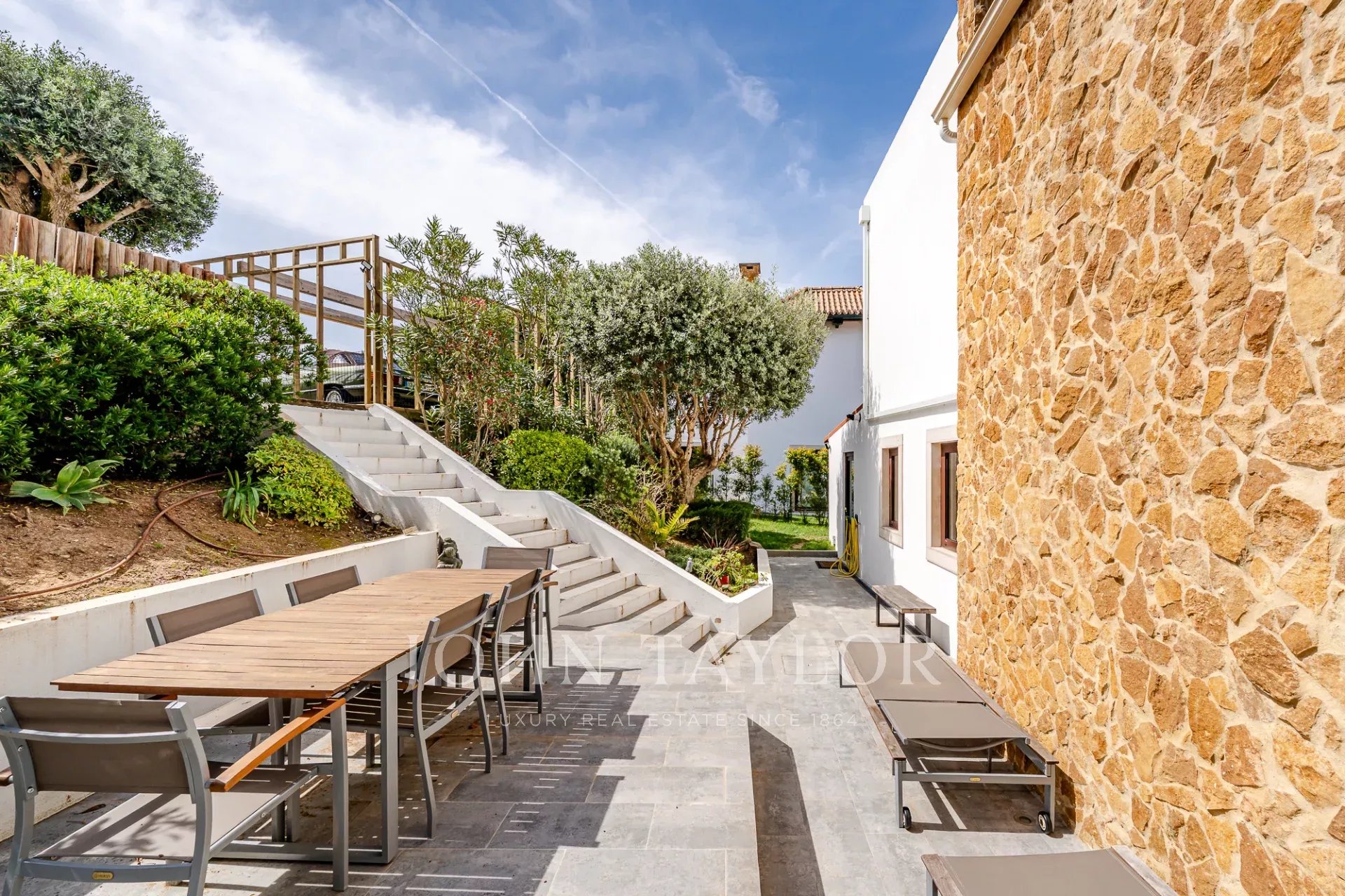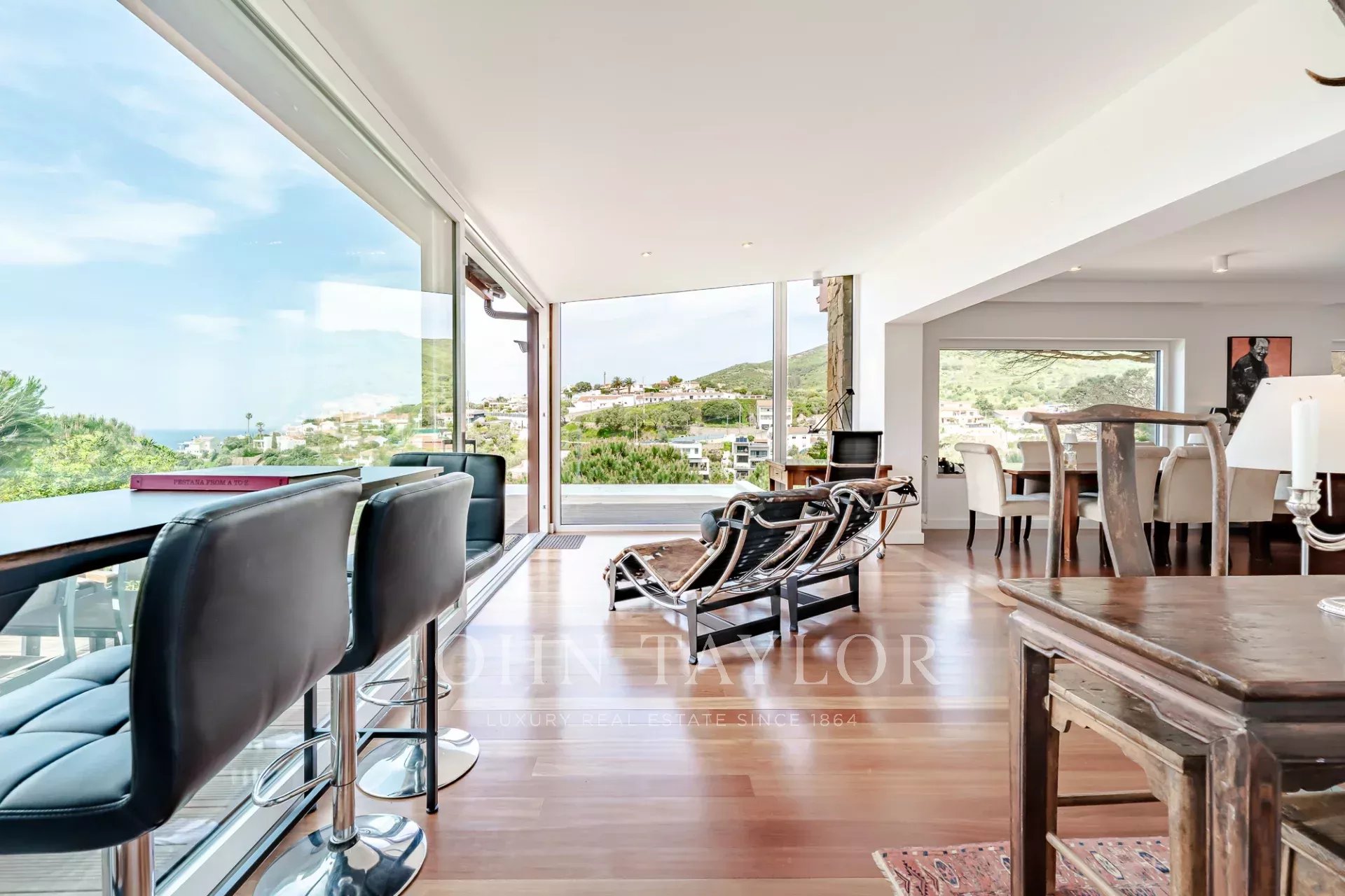 O terraço exterior e a piscina privada estão posicionados de forma a maximizar a vista para o mar, oferecendo uma forte ligação à paisagem circundante e total privacidade. Cada nível da casa tira partido da orientação e da vista, o que a torna um achado raro nesta zona da costa.