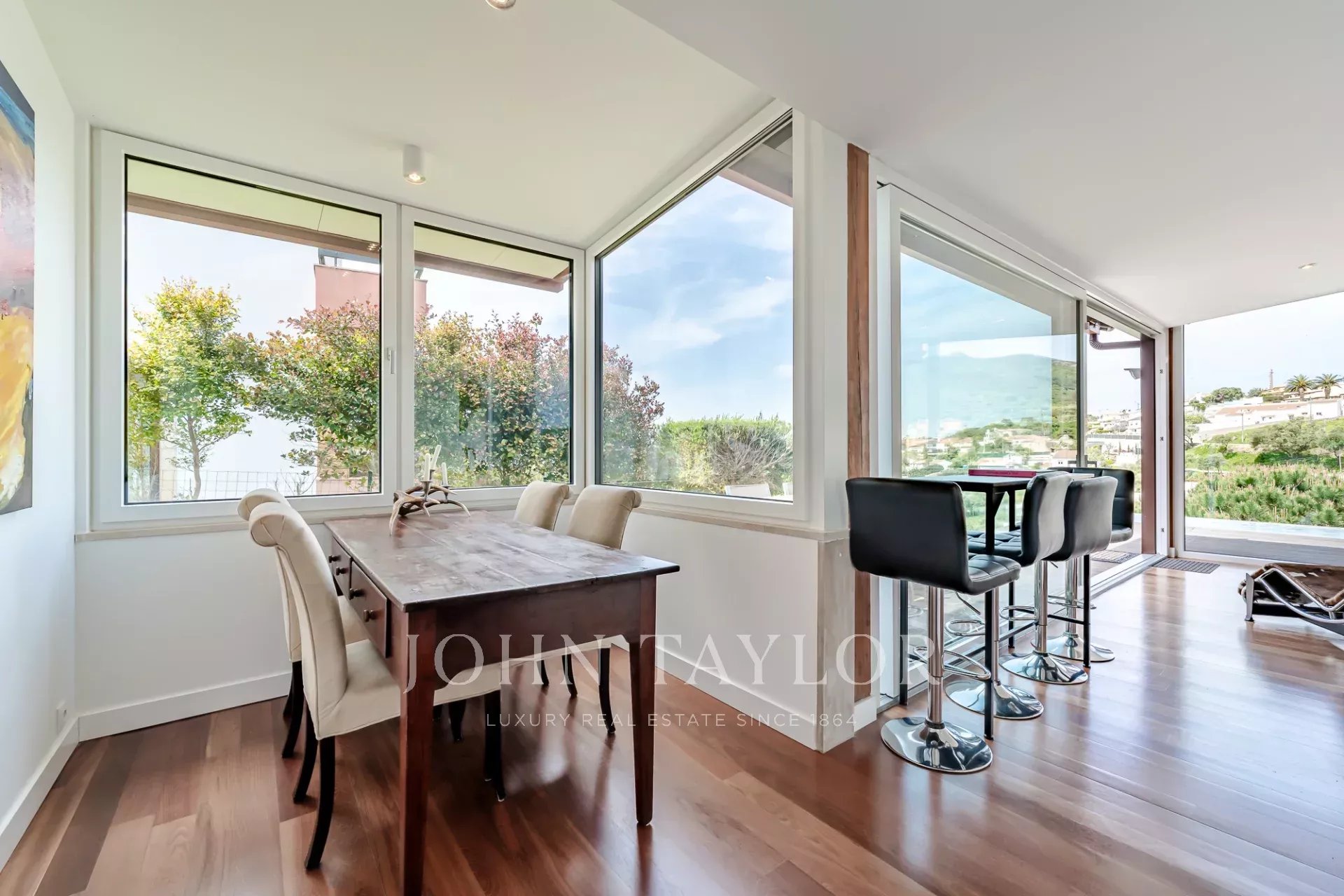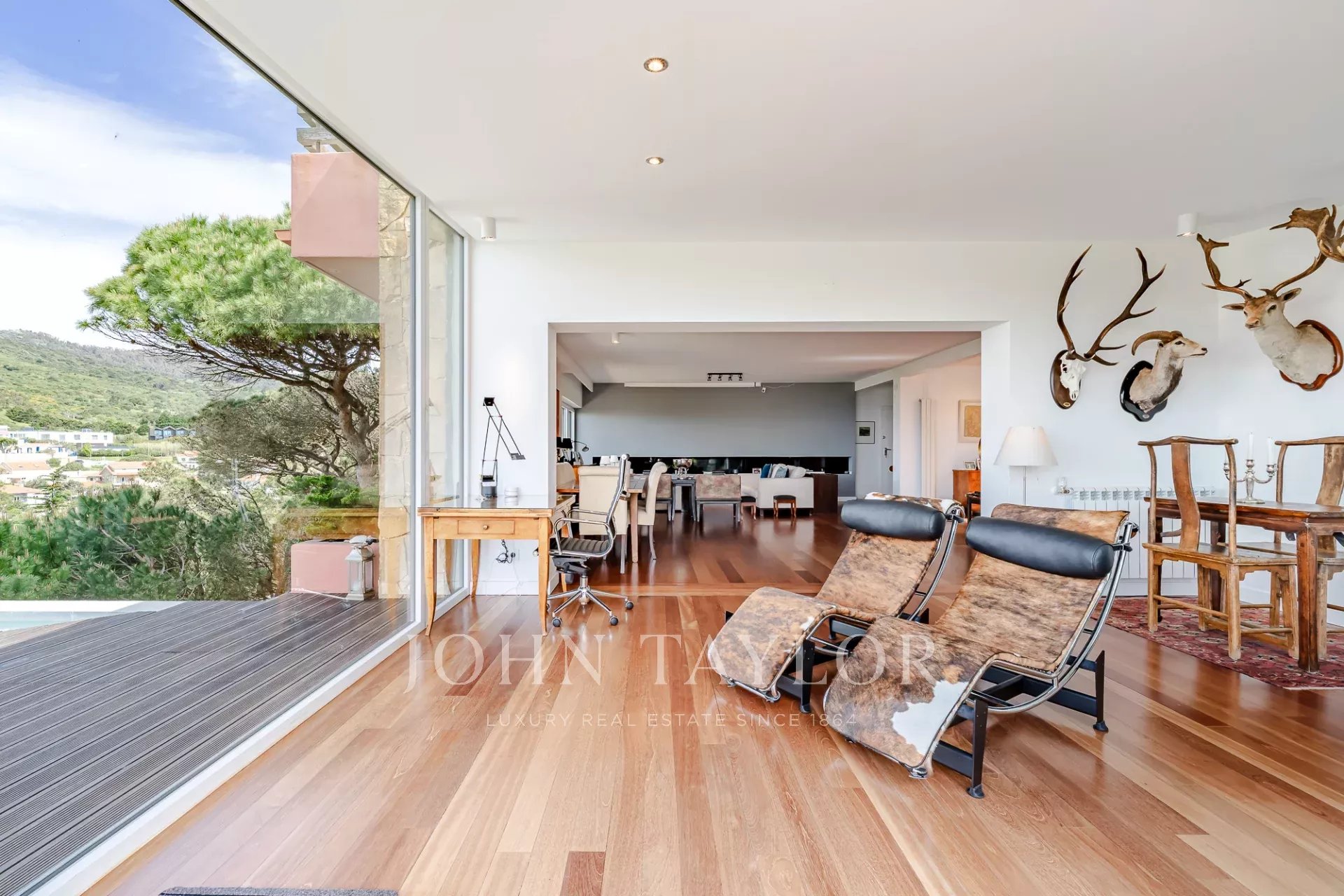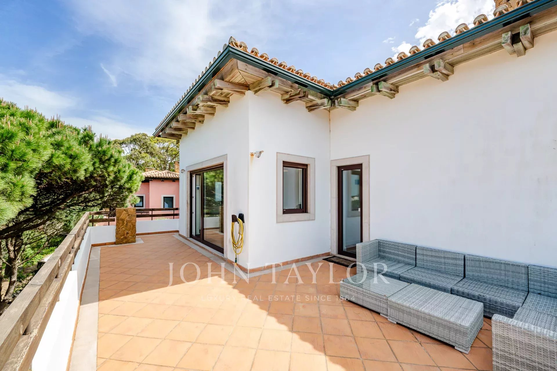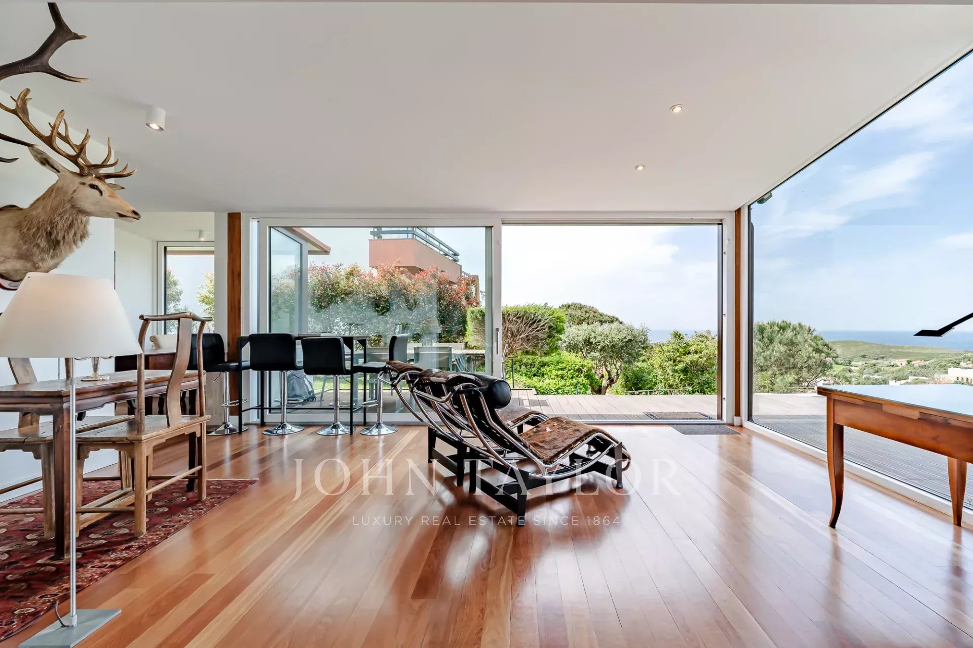 O terraço exterior e a piscina privada estão posicionados de forma a maximizar a vista para o mar, oferecendo uma forte ligação à paisagem circundante e total privacidade. Cada nível da casa tira partido da orientação e da vista, o que a torna um achado raro nesta zona da costa.
