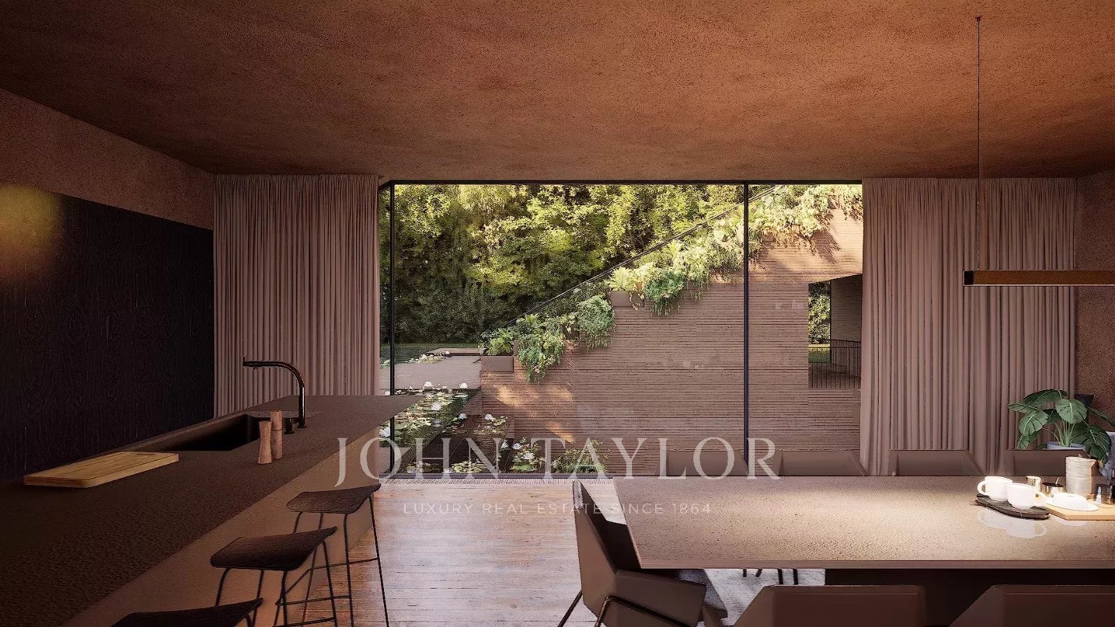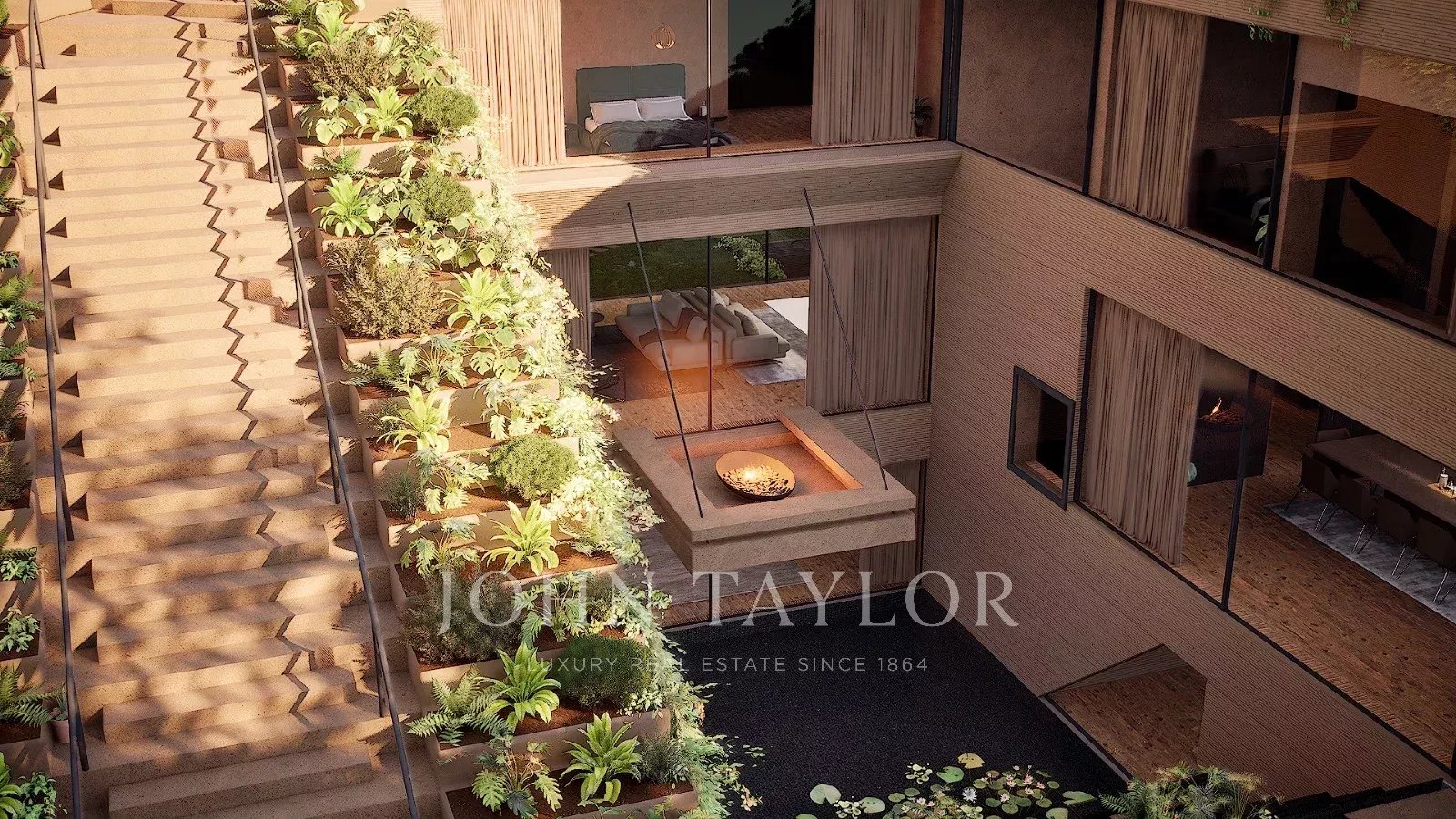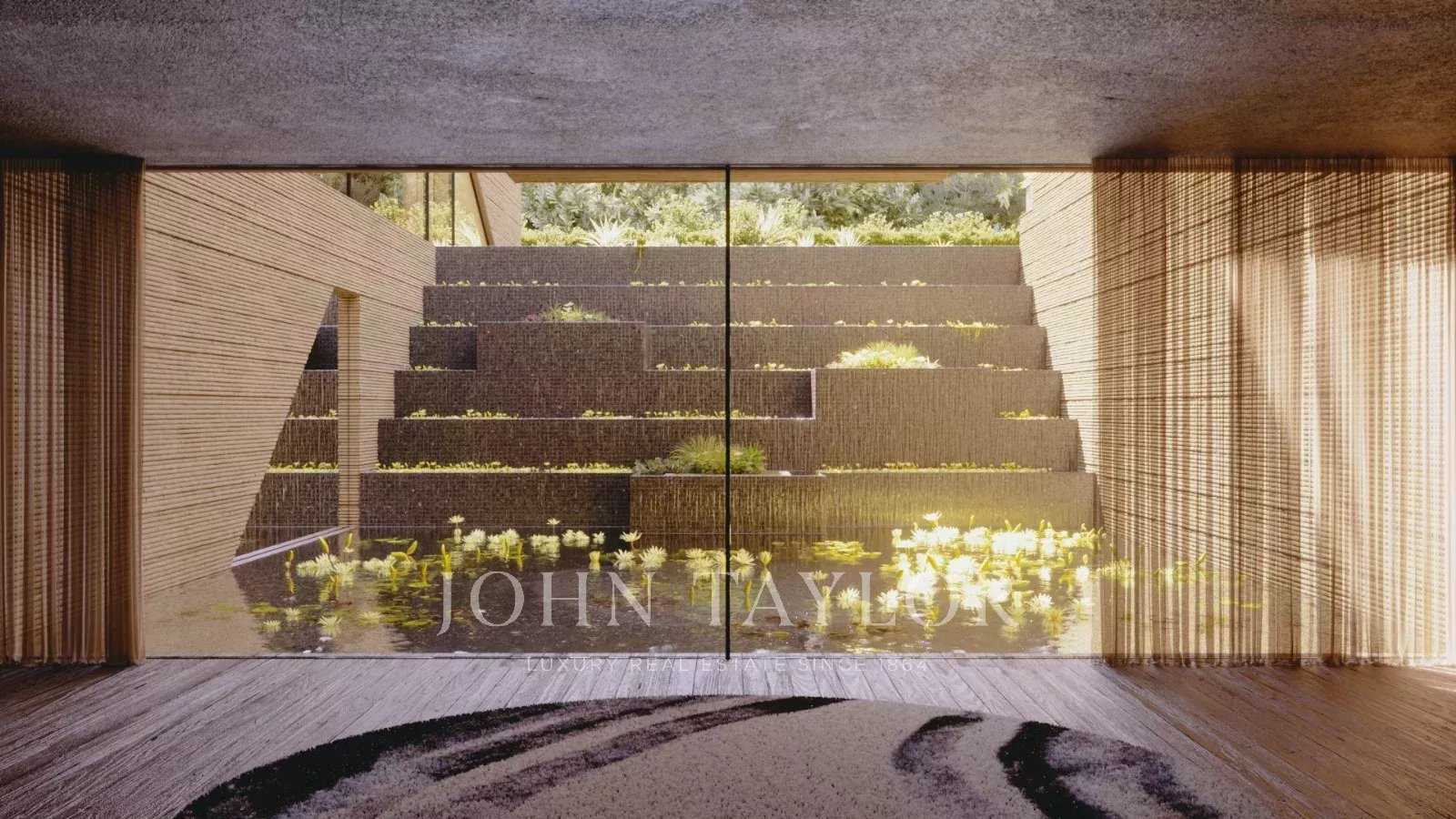 O piso inferior distingue-se pela área de bem-estar, que inclui um ginásio, sauna e vistas deslumbrantes para o pátio interno, que se conecta à piscina através de uma cascata. Este nível inclui também um quarto de serviço, áreas técnicas multifuncionais e uma garagem com capacidade para quatro viaturas.