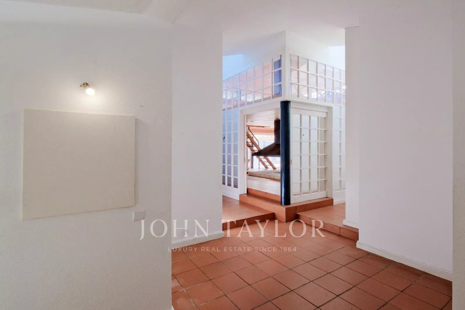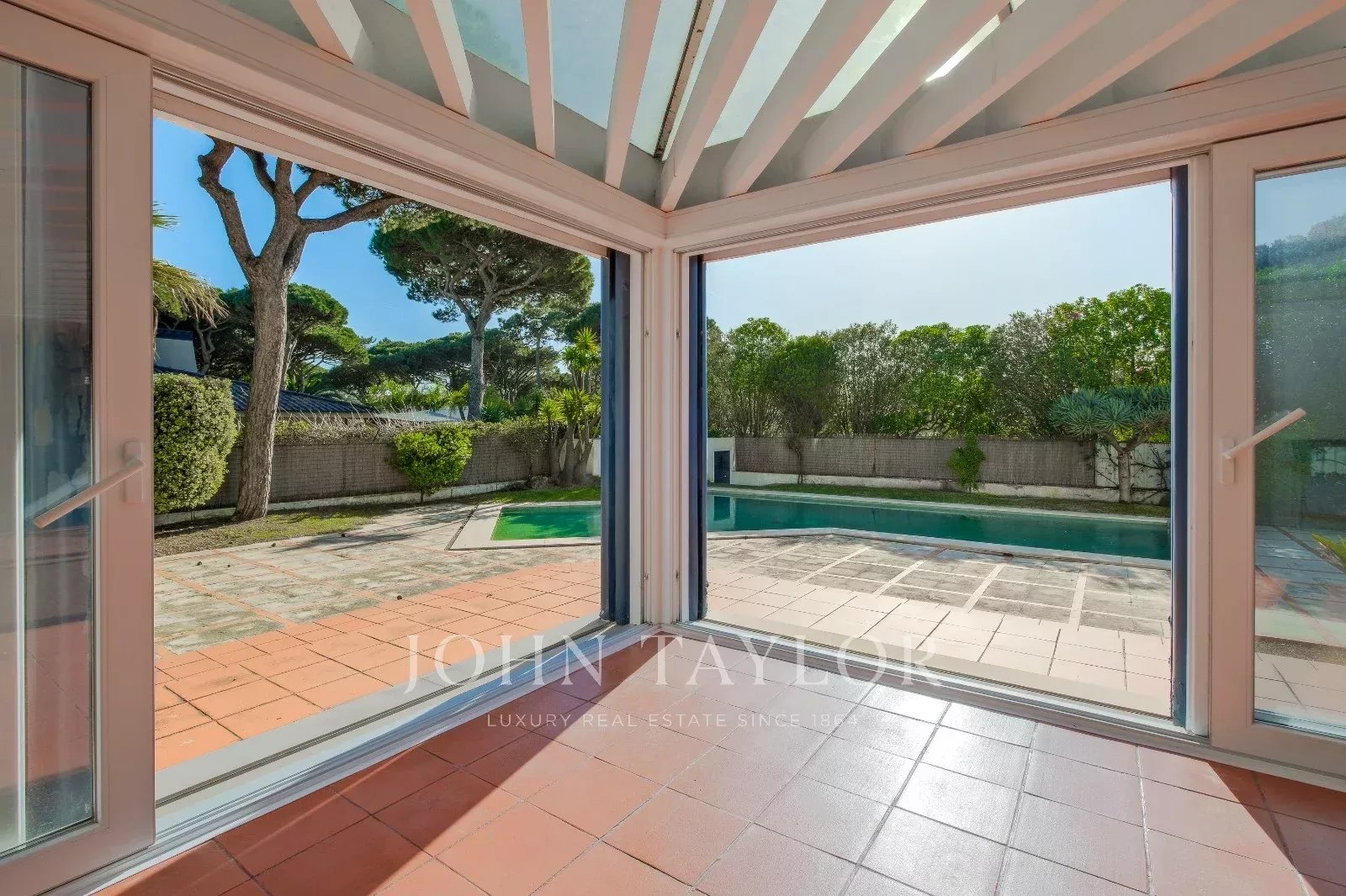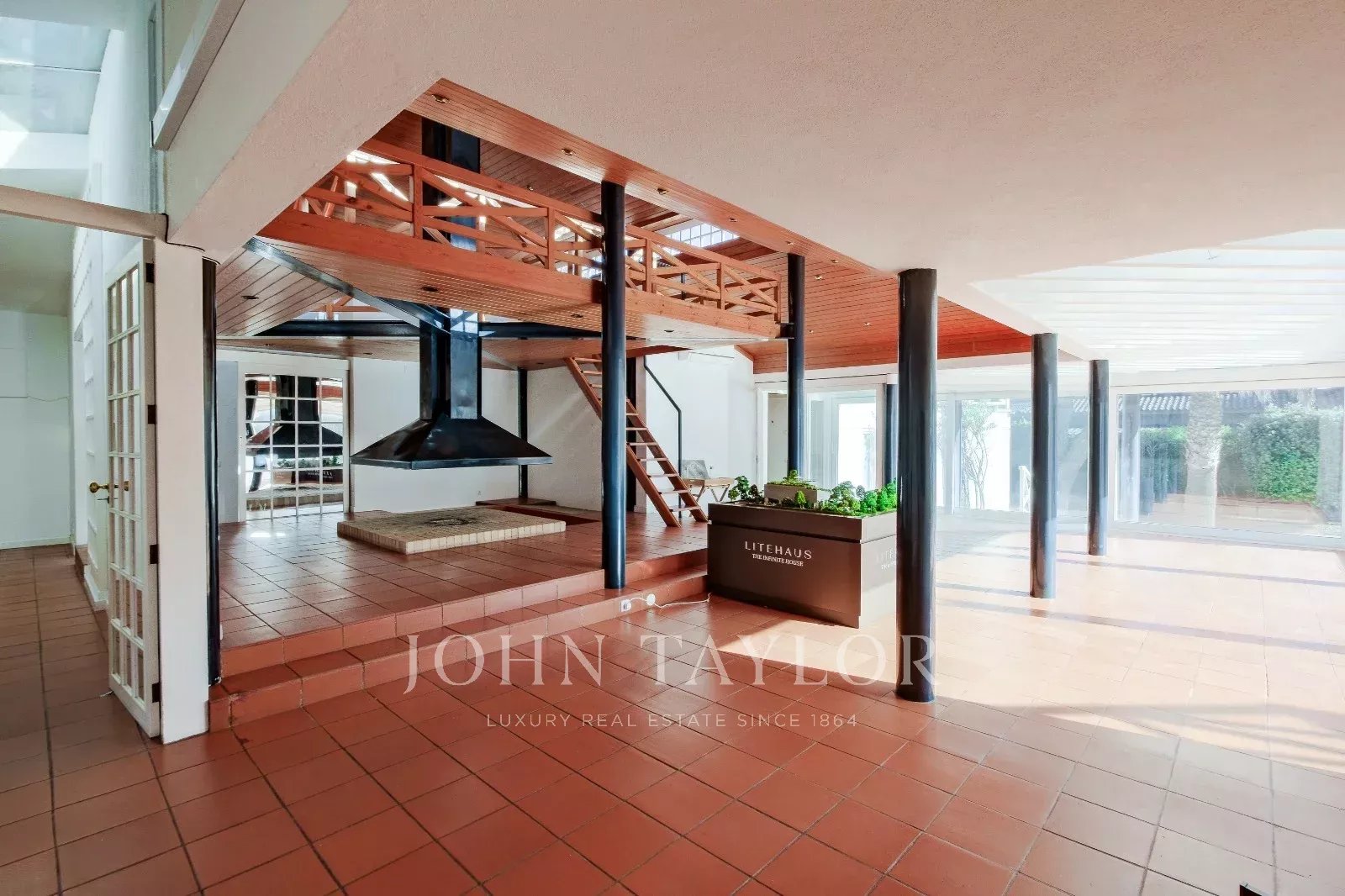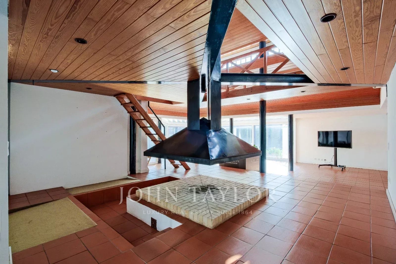 Com uma área bruta de construção de 692 m² e 88 m² de área dependente, a moradia inclui jardim, piscina, garagem fechada para dois carros e estacionamento exterior para vários veículos. A configuração atual permite uma utilização flexível como moradia unifamiliar, habitações independentes ou espaço misto de habitação e escritório.