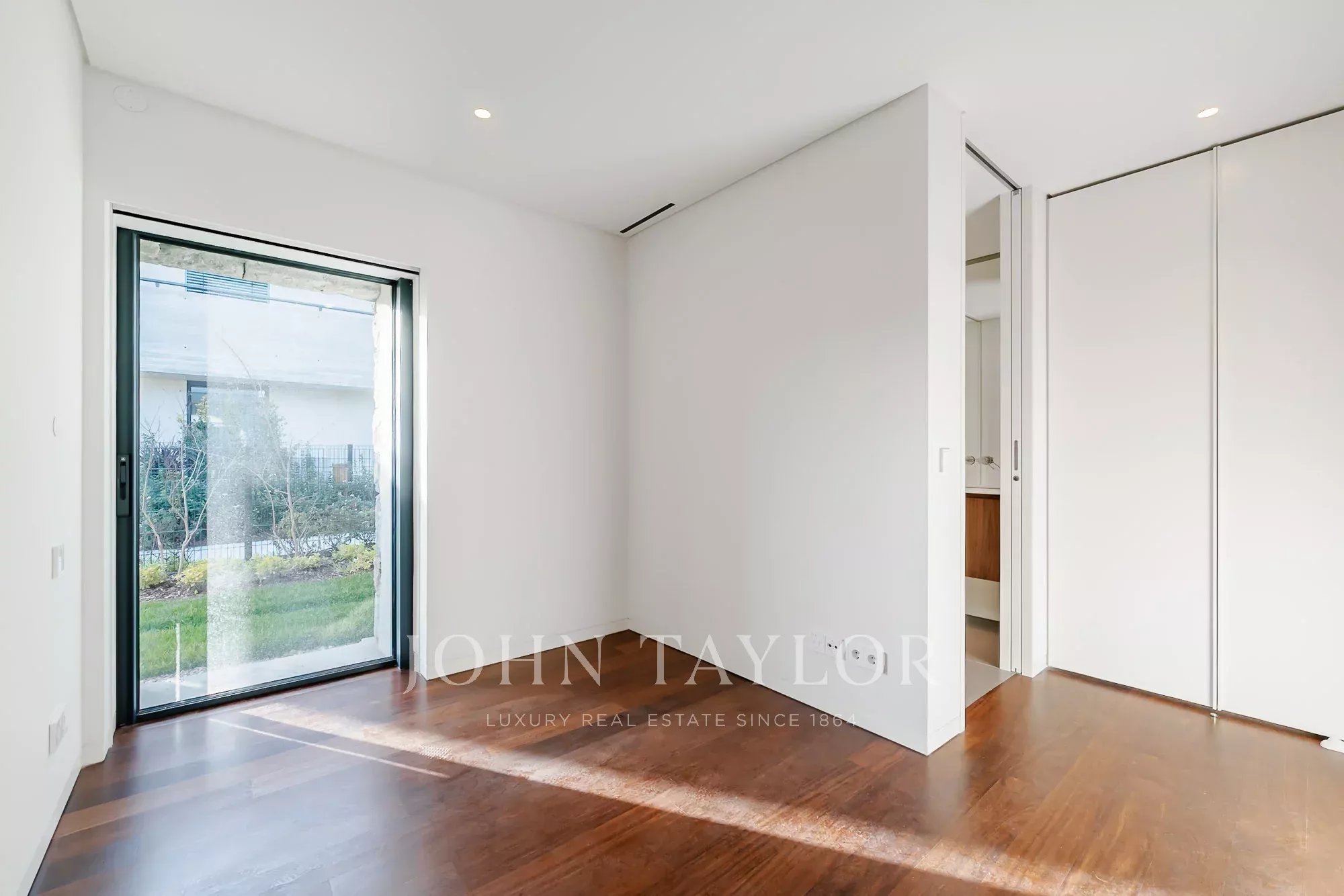 A ala privada inclui quatro quartos: dois em suite e dois quartos adicionais que partilham uma casa de banho completa, criando uma disposição ideal para a vida familiar. Um WC de serviço e uma lavandaria complementam os espaços interiores. A propriedade inclui ainda três lugares de estacionamento privado no exterior.