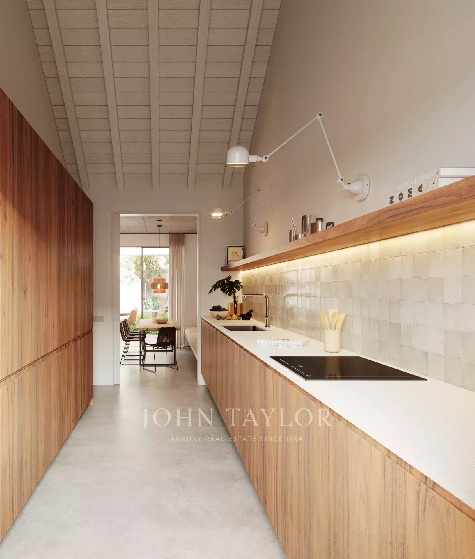 O projeto aprovado prevê uma residência contemporânea com três quartos em suite, uma espaçosa sala de estar e de jantar em plano aberto e uma cozinha separada e totalmente funcional. A disposição permite o acesso direto ao jardim e à piscina, criando uma ligação perfeita entre os espaços interiores e exteriores.