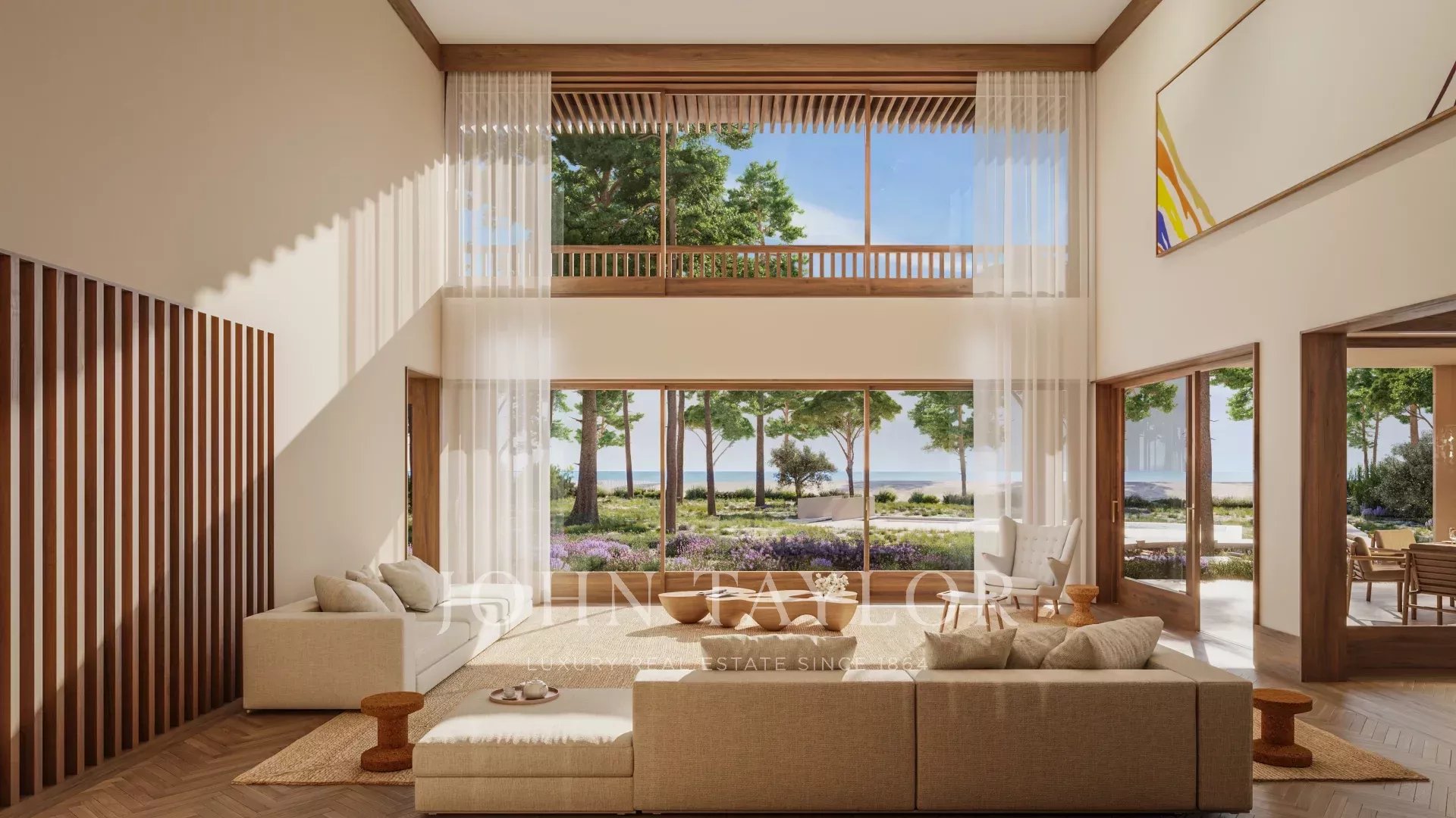 No piso térreo, a vila dispõe de uma ampla sala de estar e jantar, cozinha totalmente equipada, cozinha de apoio, casa de banho social, sala de TV, escritório privado e um quarto em suíte com closet. As salas de estar e jantar abrem para uma varanda com espaços de estar e jantar ao ar livre. A vila inclui uma espaçosa piscina virada para a praia, inserida numa generosa área exterior.