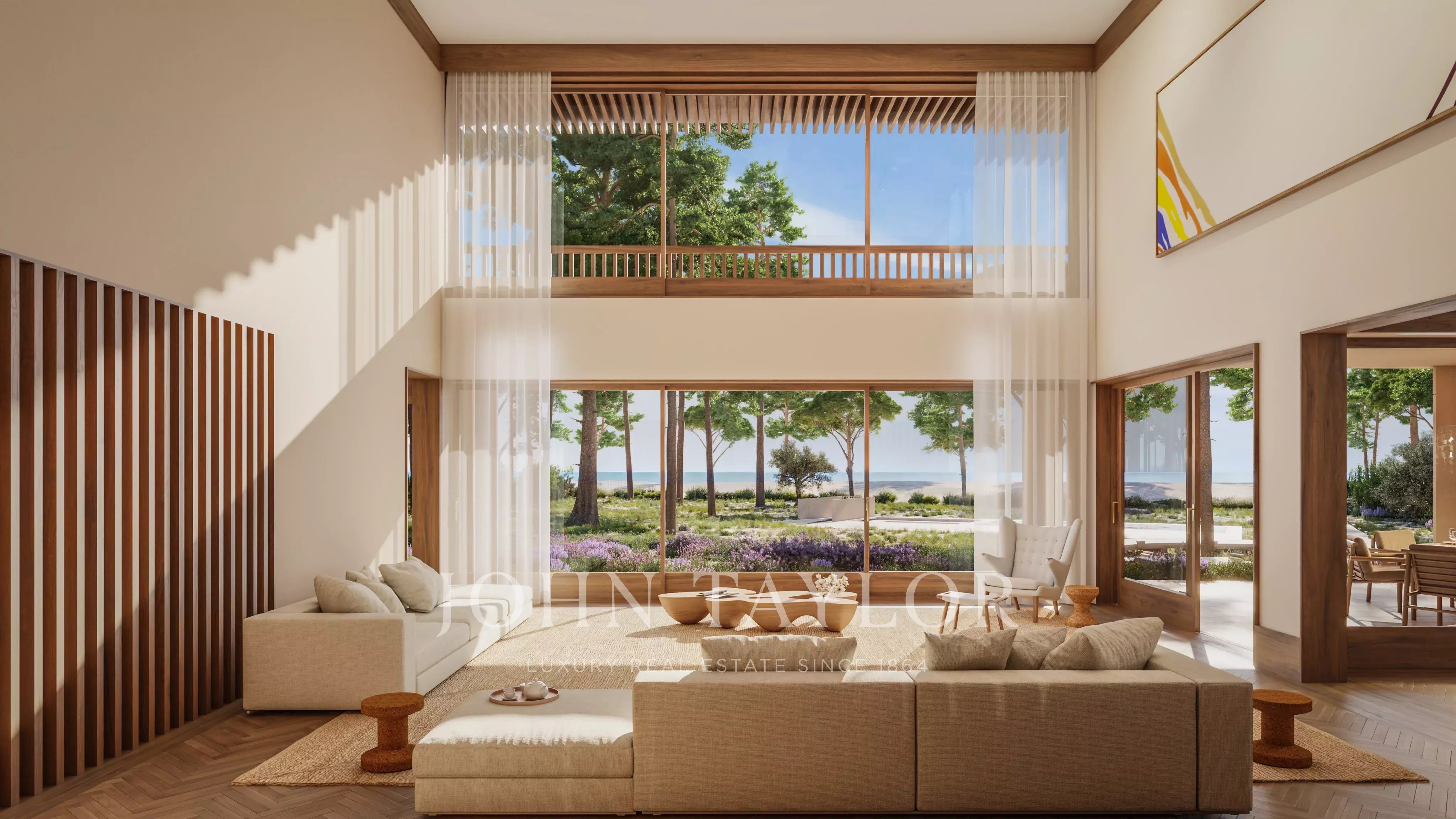 No andar superior, encontra-se uma segunda sala de estar, uma suíte principal e dois quartos em suíte, todos com acesso a um grande terraço com vistas deslumbrantes.