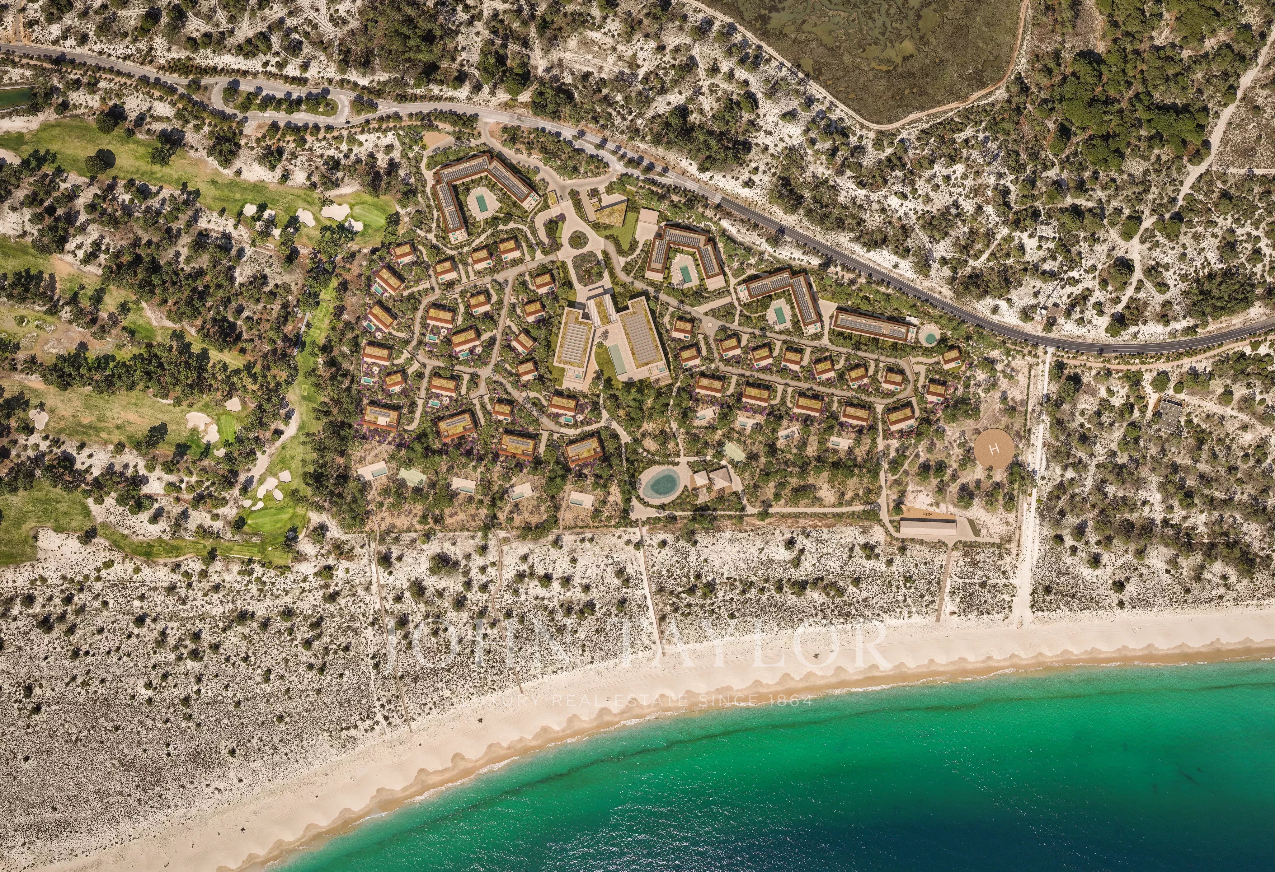 O resort está atualmente em desenvolvimento e contará com um luxuoso hotel cinco estrelas, 37 vilas à beira-mar e 71 apartamentos modernos, todos concebidos com os mais elevados padrões. As comodidades incluem receção 24 horas, estacionamento subterrâneo, campos de padel e ténis, um spa, piscinas de água salgada, clube de praia, clube infantil, ginásio e heliporto. Fica ainda a apenas 5 minutos do renomado Troia Golf Club.