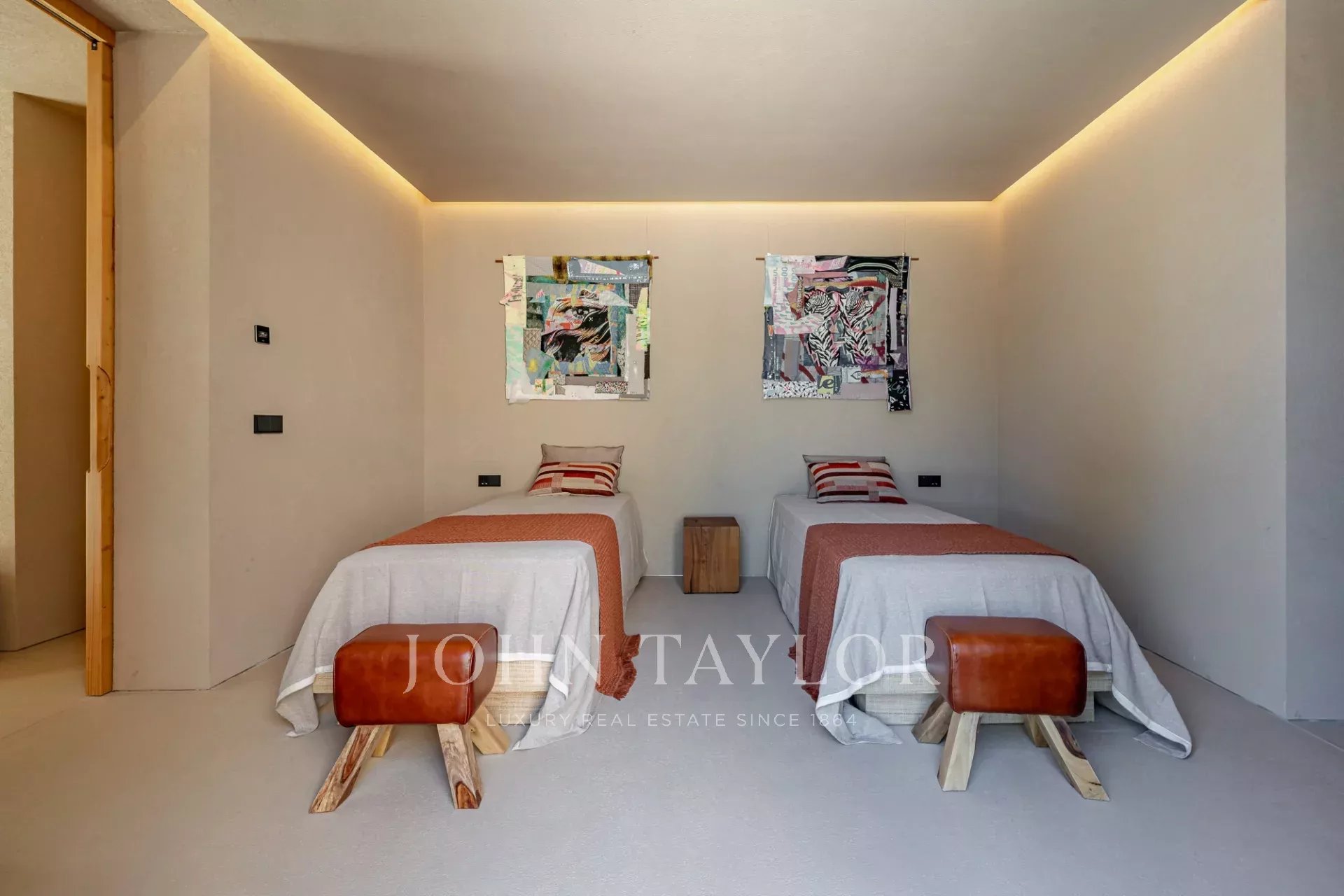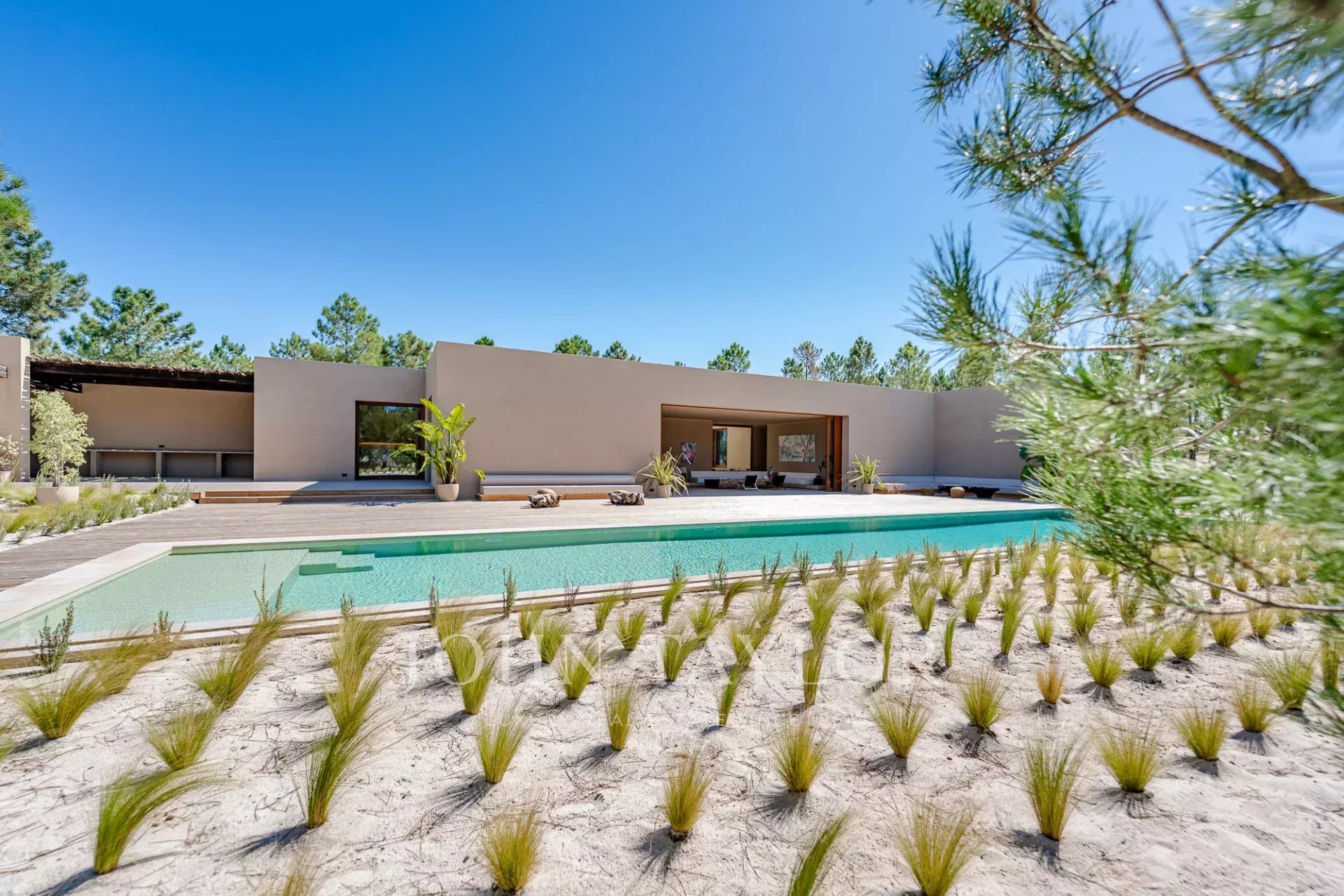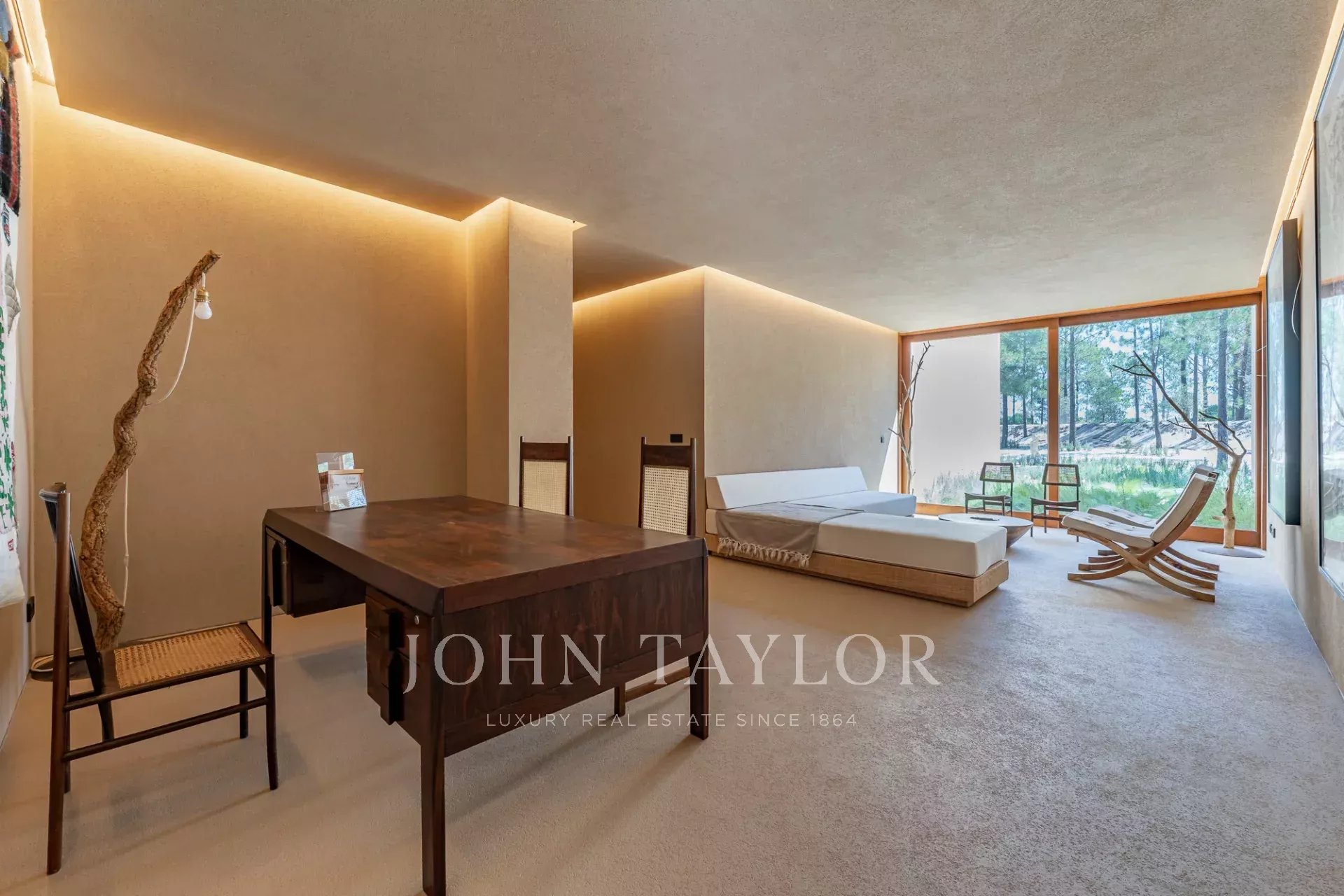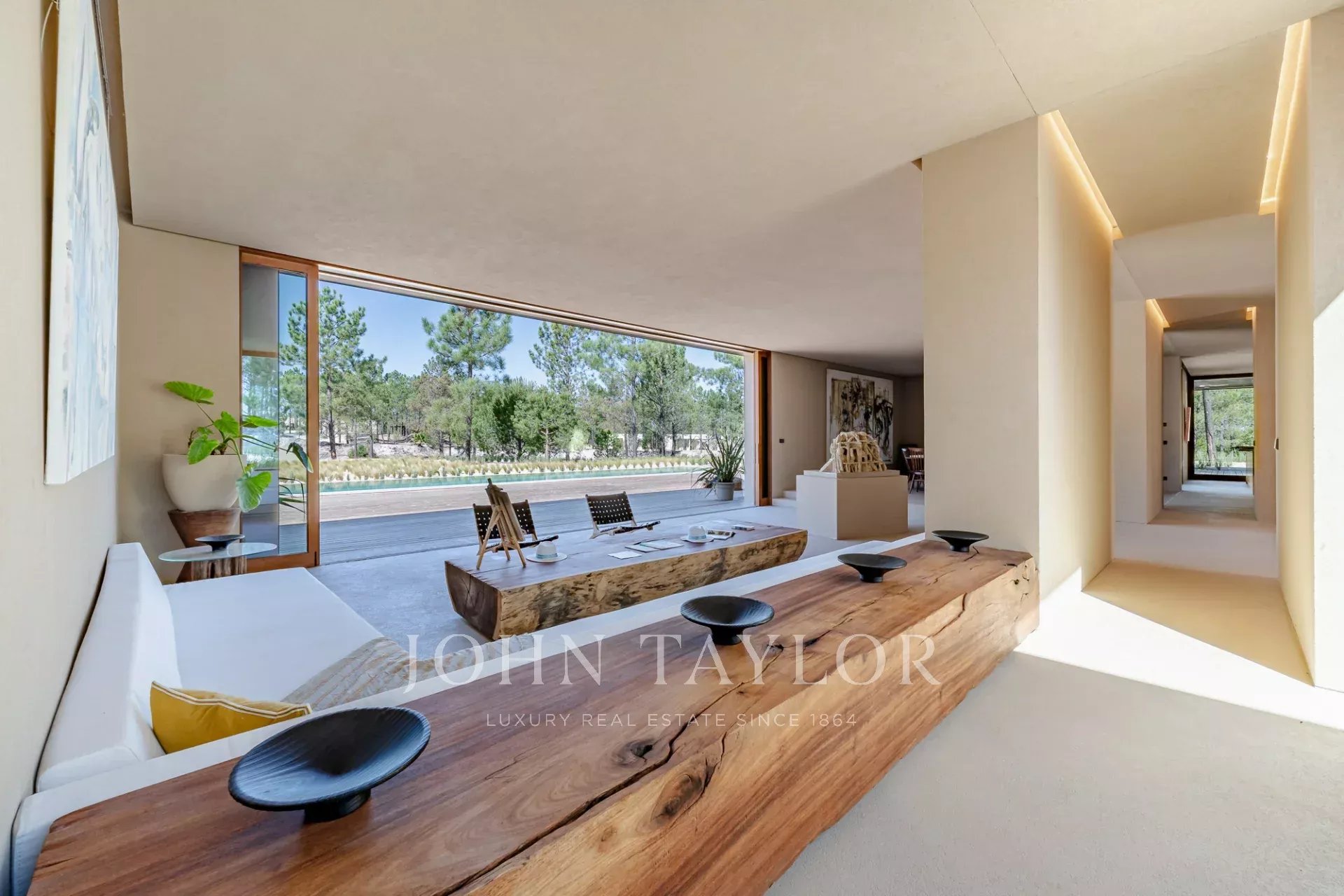 A propriedade possui quatro quartos espaçosos em suite, cada um com o seu próprio deck de madeira privado, e duas salas de estar com vistas deslumbrantes. Uma com vista para a piscina de 96 m2 e a outra para os tranquilos pinhais e para a beleza natural da Comporta. O design da moradia abraça a vida interior e exterior, com uma cozinha grande e totalmente equipada, despensa e ampla arrumação.