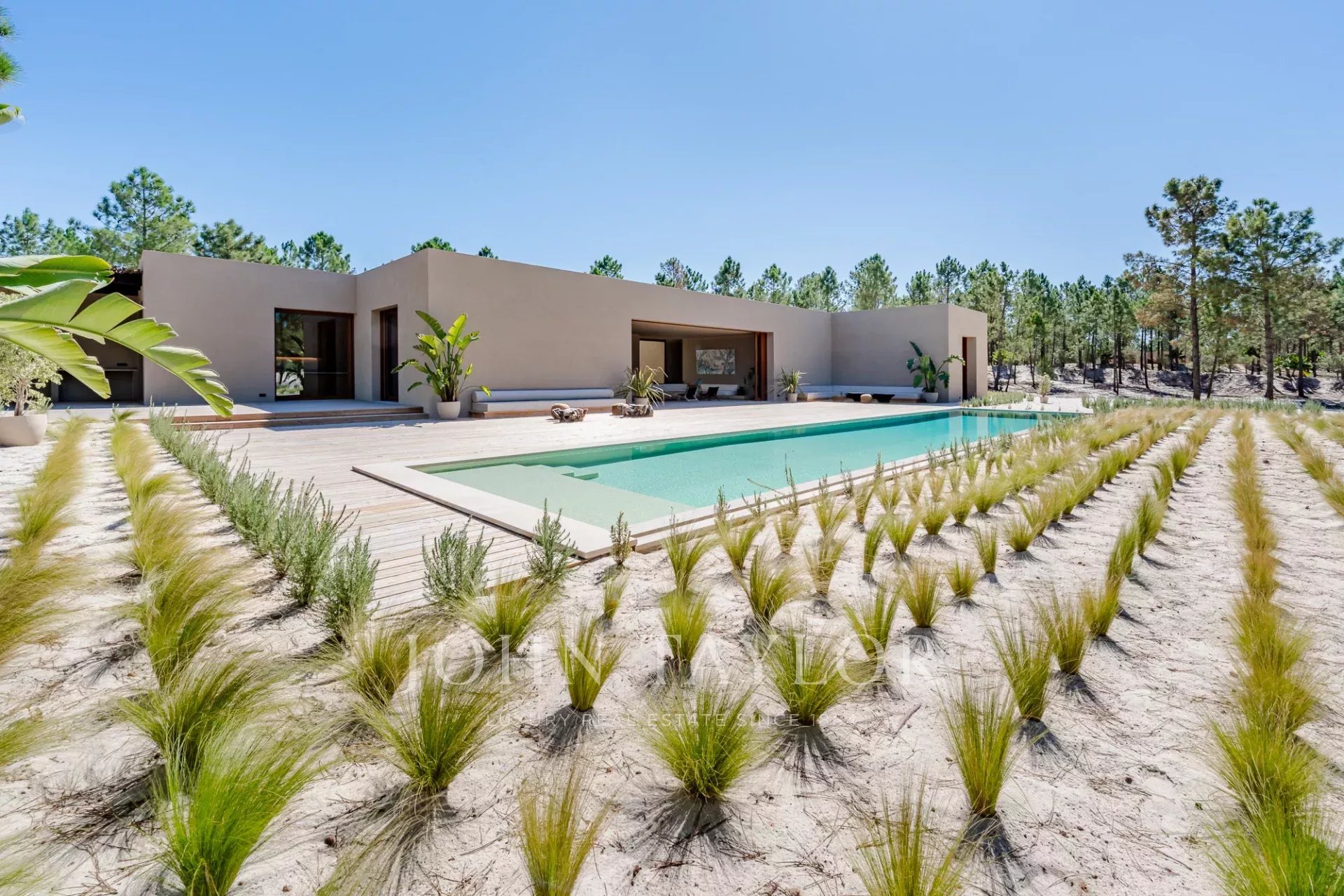 A casa dispõe de quatro generosos quartos em suite, todos com um deck de madeira privado, e duas amplas salas de estar, com vistas de cortar a respiração para a piscina de 96 m², os pinhais e a paisagem natural da Comporta. Projetada para aproveitar ao máximo a vida interior e exterior, inclui ainda uma cozinha totalmente equipada, despensa e uma zona de arrumos.