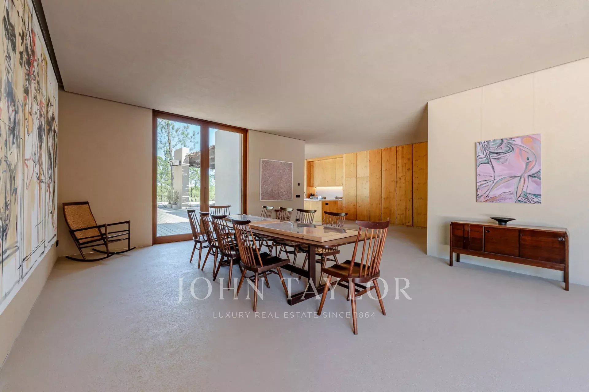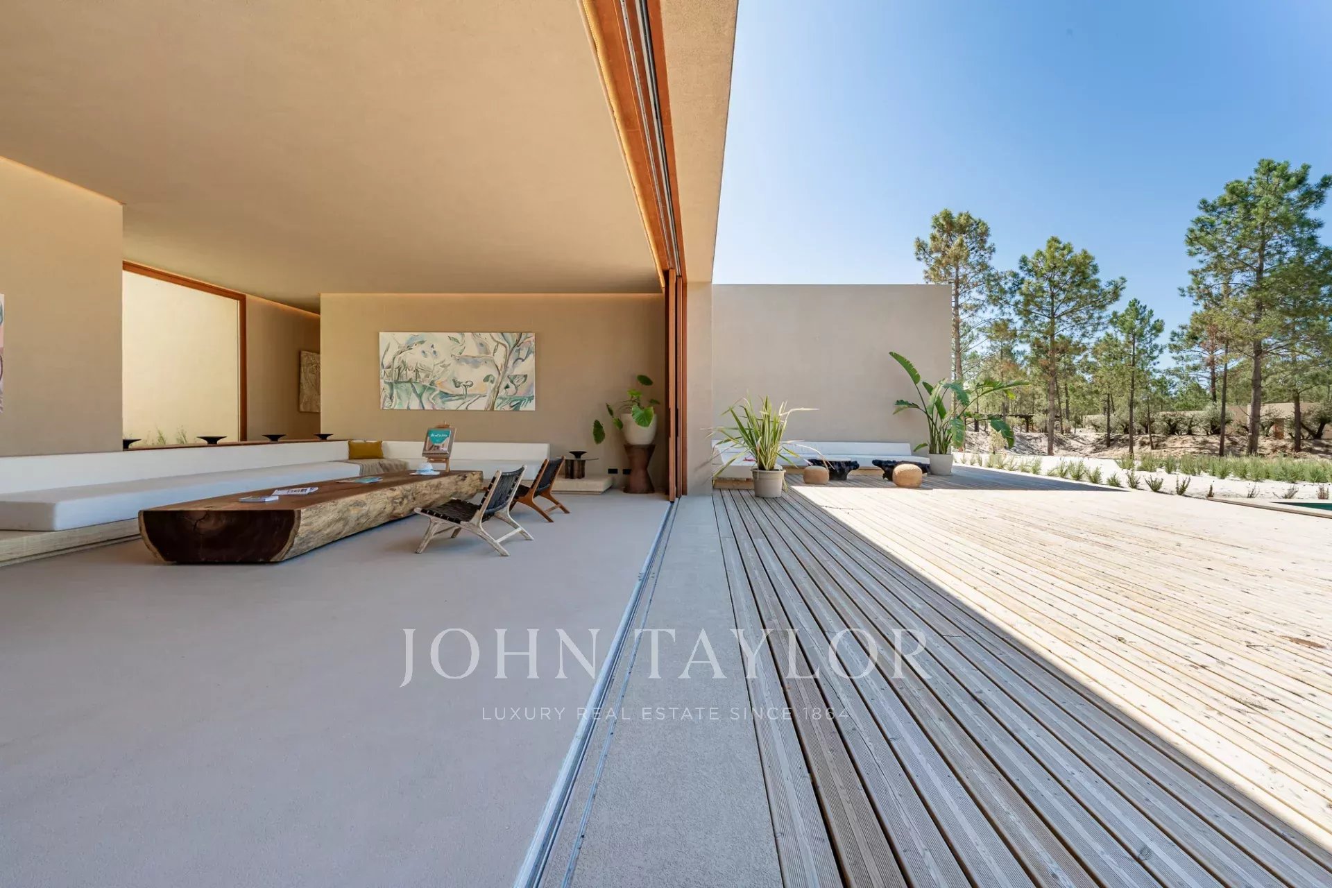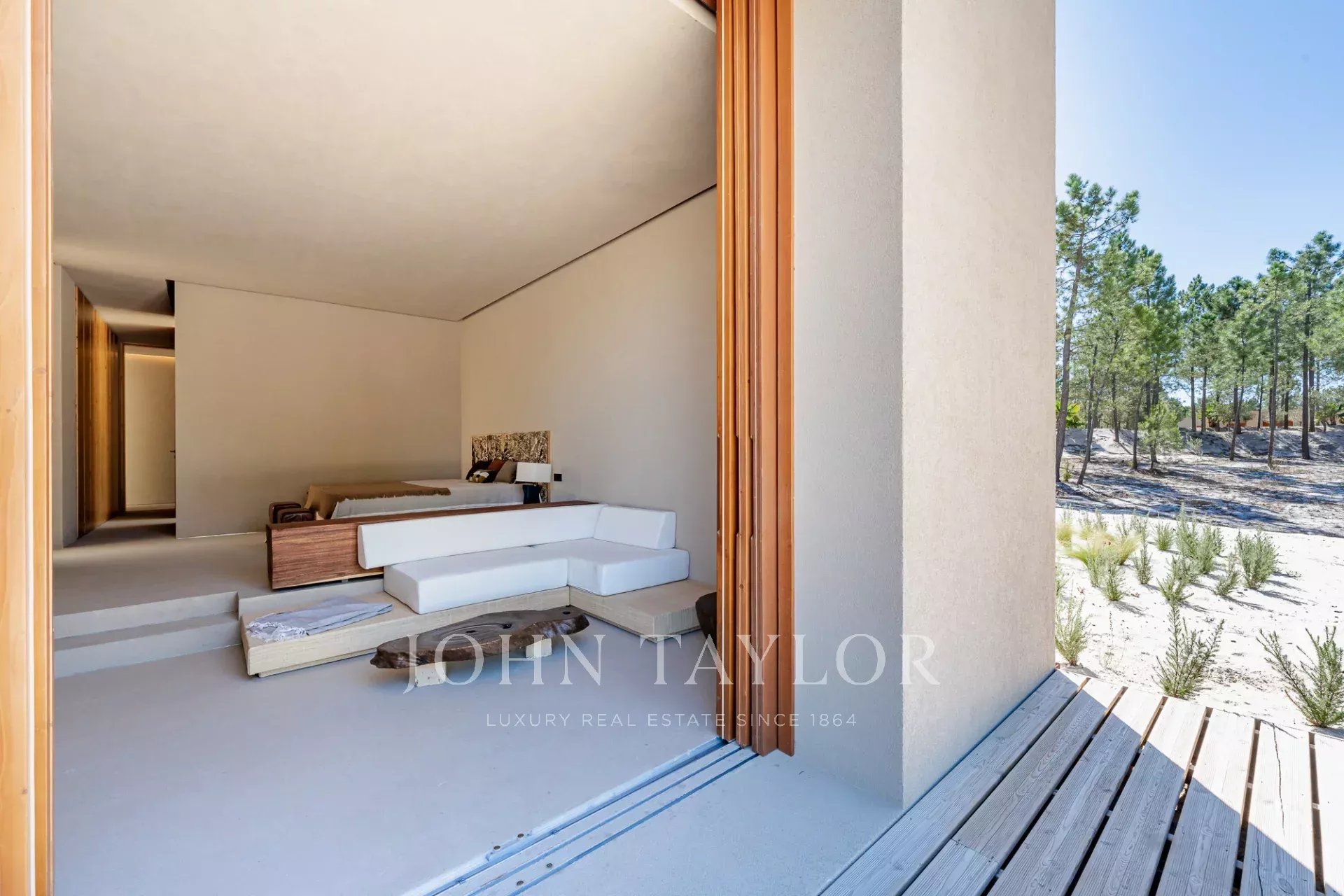 A propriedade possui quatro quartos espaçosos em suite, cada um com o seu próprio deck de madeira privado, e duas salas de estar com vistas deslumbrantes. Uma com vista para a piscina de 96 m2 e a outra para os tranquilos pinhais e para a beleza natural da Comporta. O design da moradia abraça a vida interior e exterior, com uma cozinha grande e totalmente equipada, despensa e ampla arrumação.
