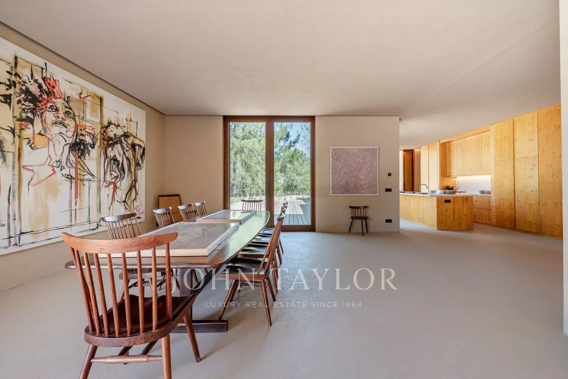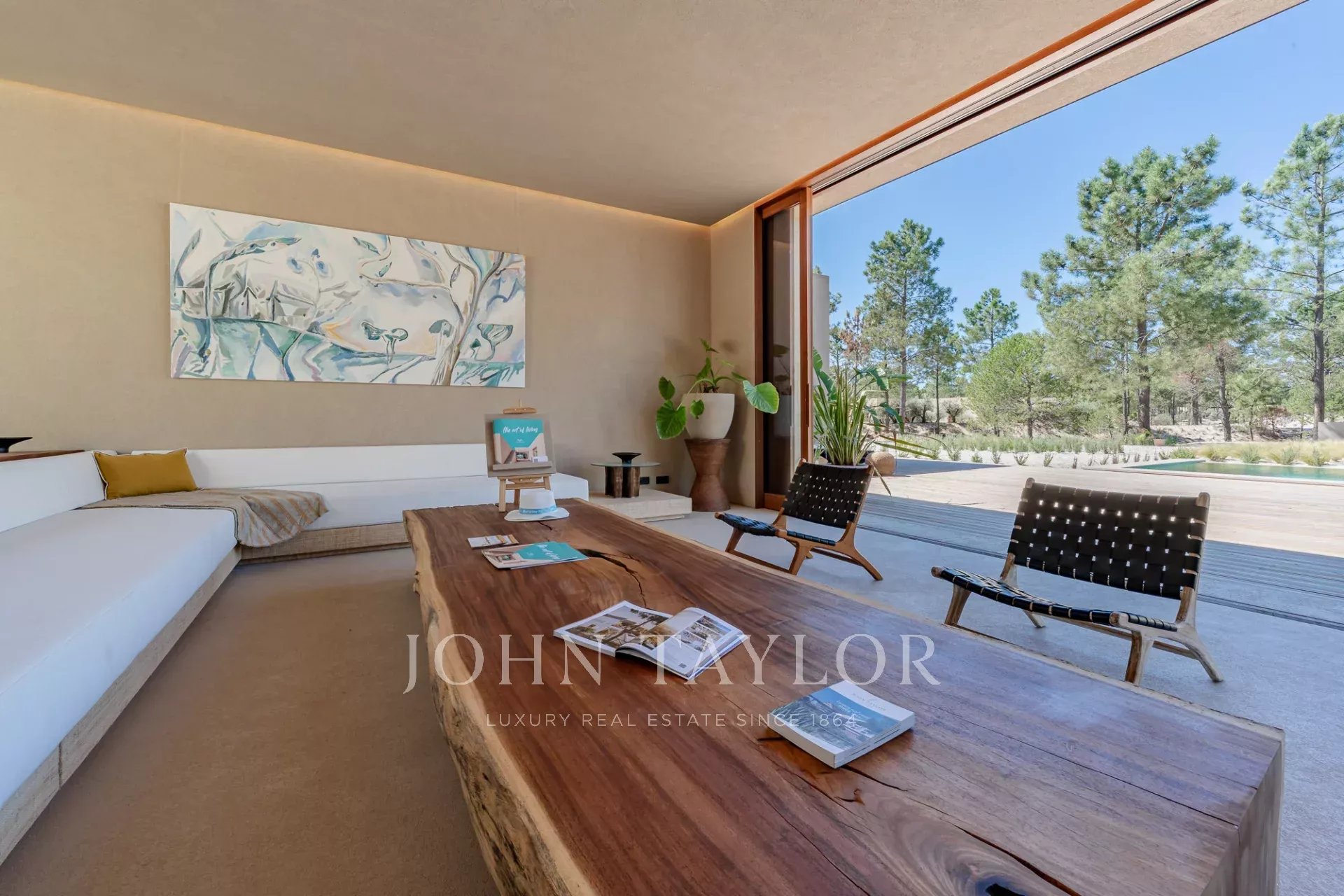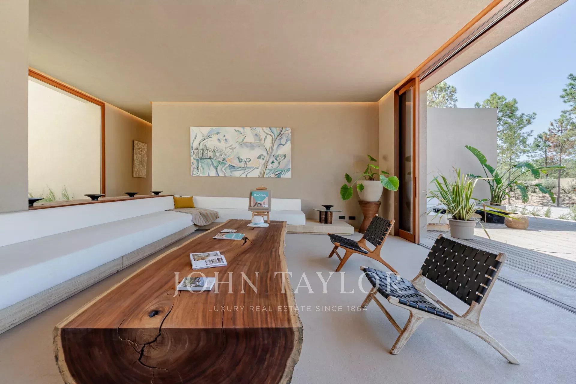 A propriedade possui quatro quartos espaçosos em suite, cada um com o seu próprio deck de madeira privado, e duas salas de estar com vistas deslumbrantes. Uma com vista para a piscina de 96 m2 e a outra para os tranquilos pinhais e para a beleza natural da Comporta. O design da moradia abraça a vida interior e exterior, com uma cozinha grande e totalmente equipada, despensa e ampla arrumação.