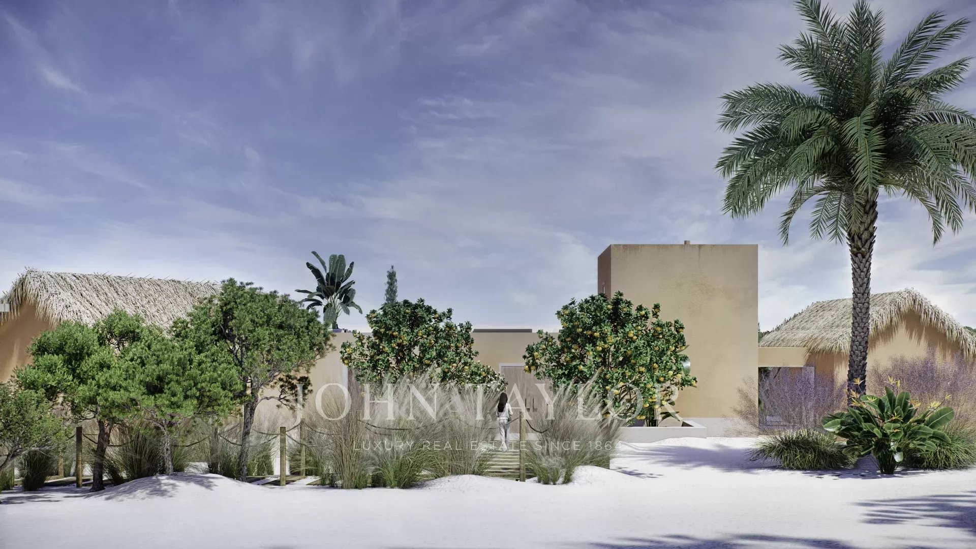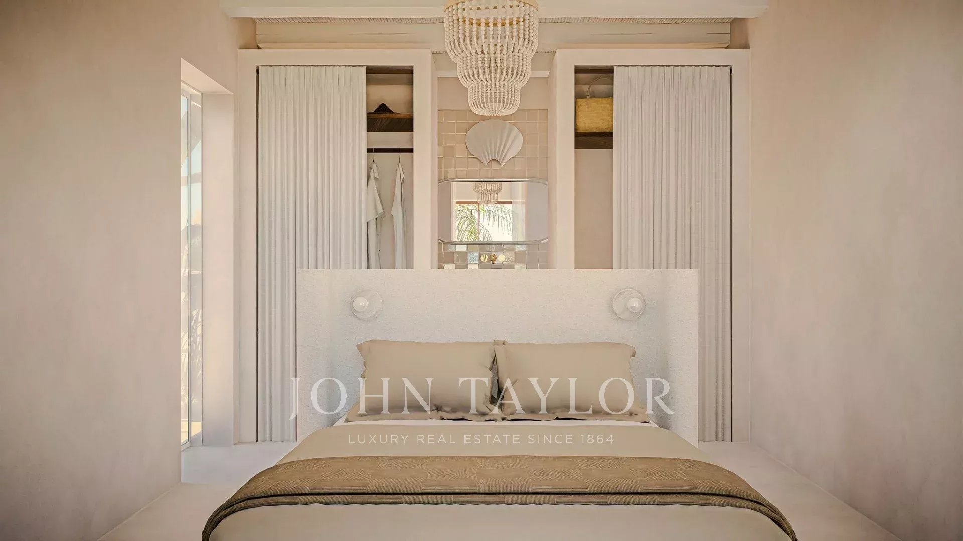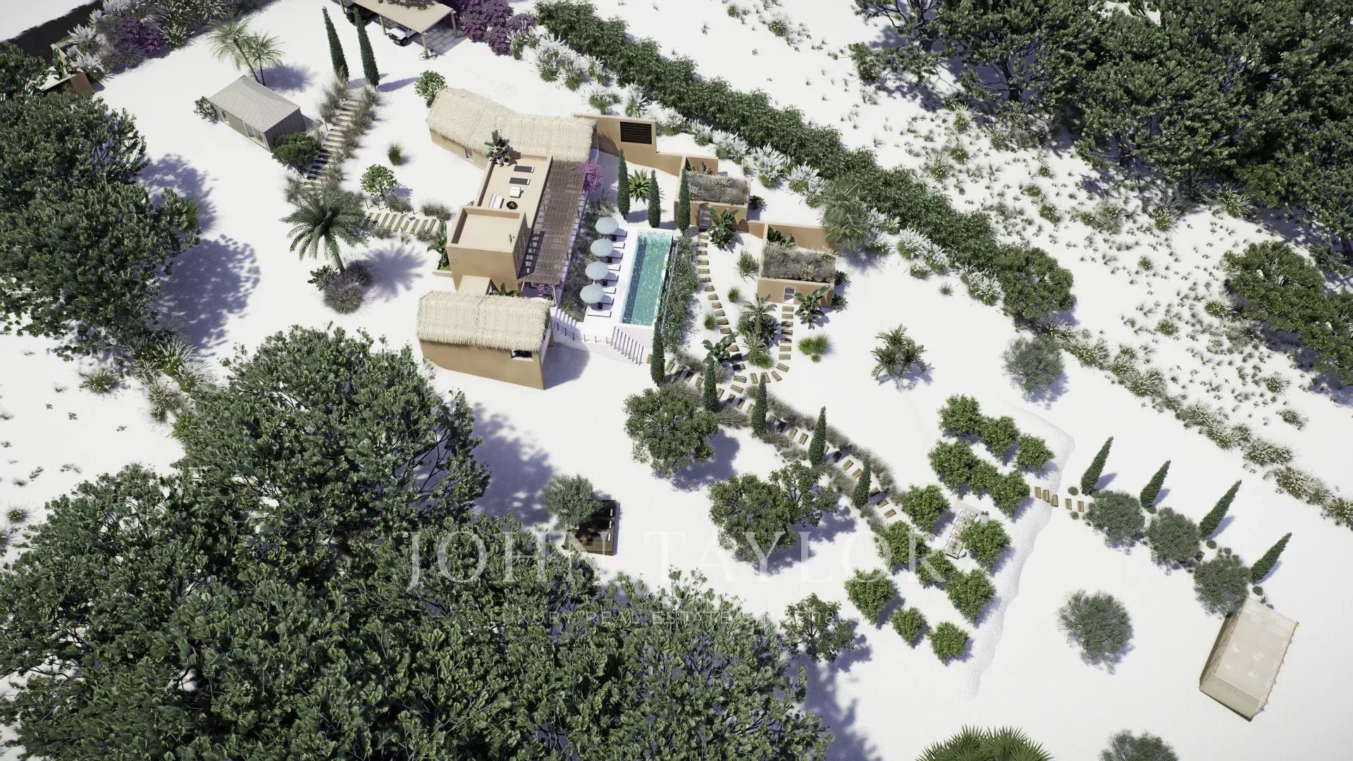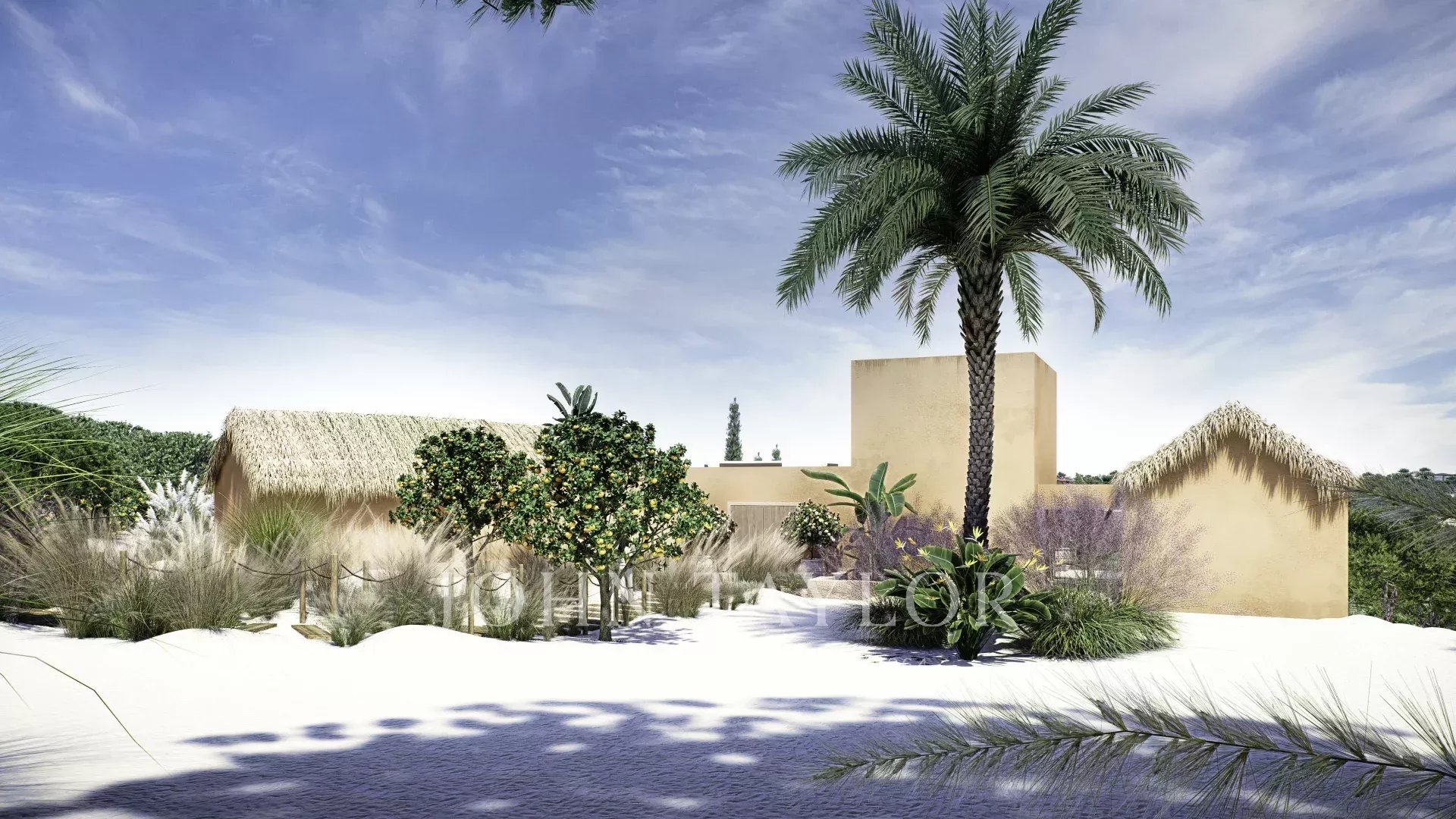 Com um projeto de arquitetura contemporânea, o imóvel é composto por uma moradia principal e duas cabanas independentes para hóspedes. A moradia principal dispõe de três suites, uma cozinha em open space com zona de refeições e sala de estar, três terraços, rooftop e ginásio. Cada cabana inclui uma suite e um terraço privativo. A propriedade é vendida totalmente mobilada e conta ainda com uma adega exterior.