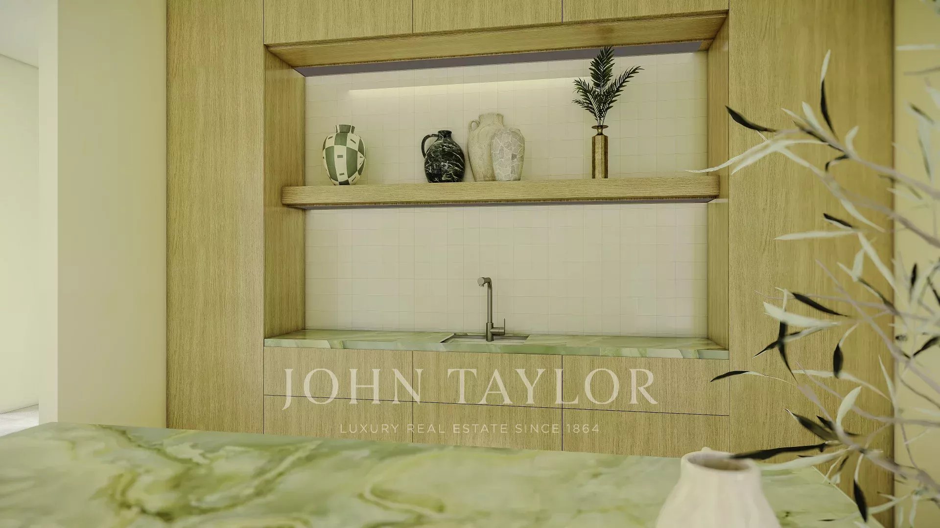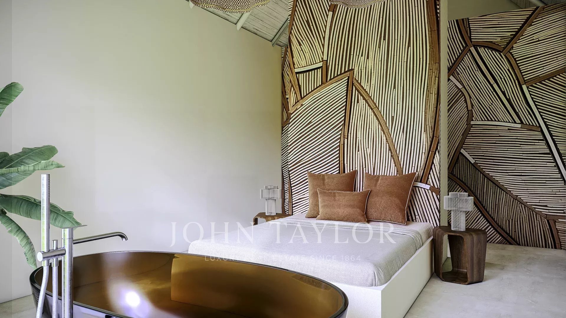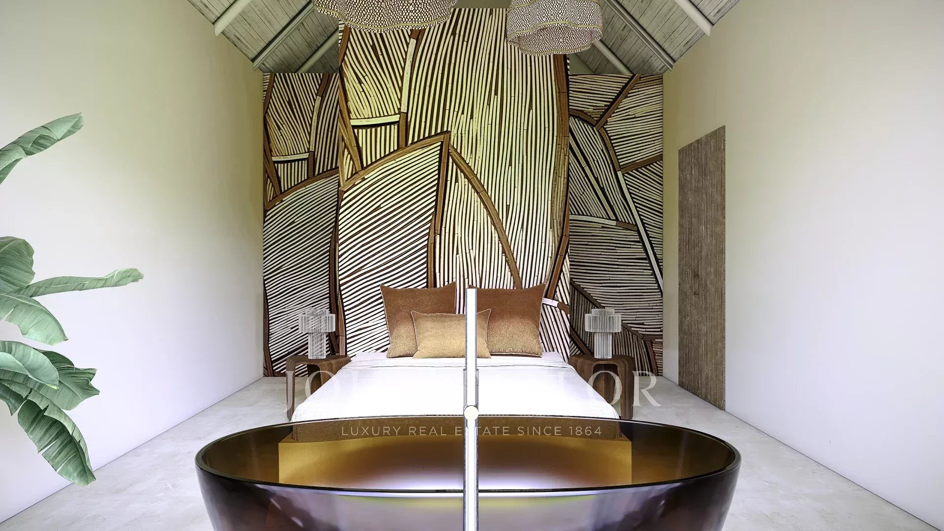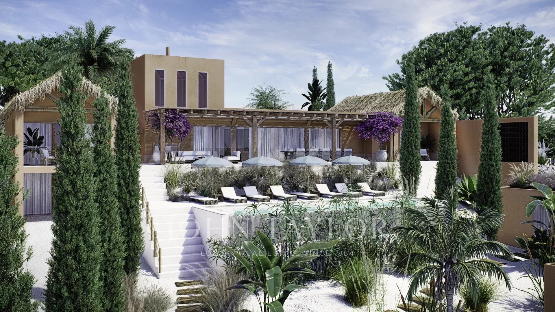 Com um projeto de arquitetura contemporânea, o imóvel é composto por uma moradia principal e duas cabanas independentes para hóspedes. A moradia principal dispõe de três suites, uma cozinha em open space com zona de refeições e sala de estar, três terraços, rooftop e ginásio. Cada cabana inclui uma suite e um terraço privativo. A propriedade é vendida totalmente mobilada e conta ainda com uma adega exterior.