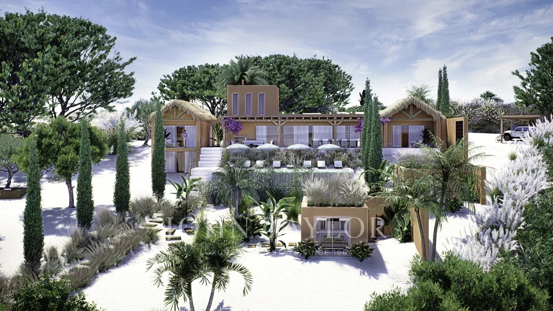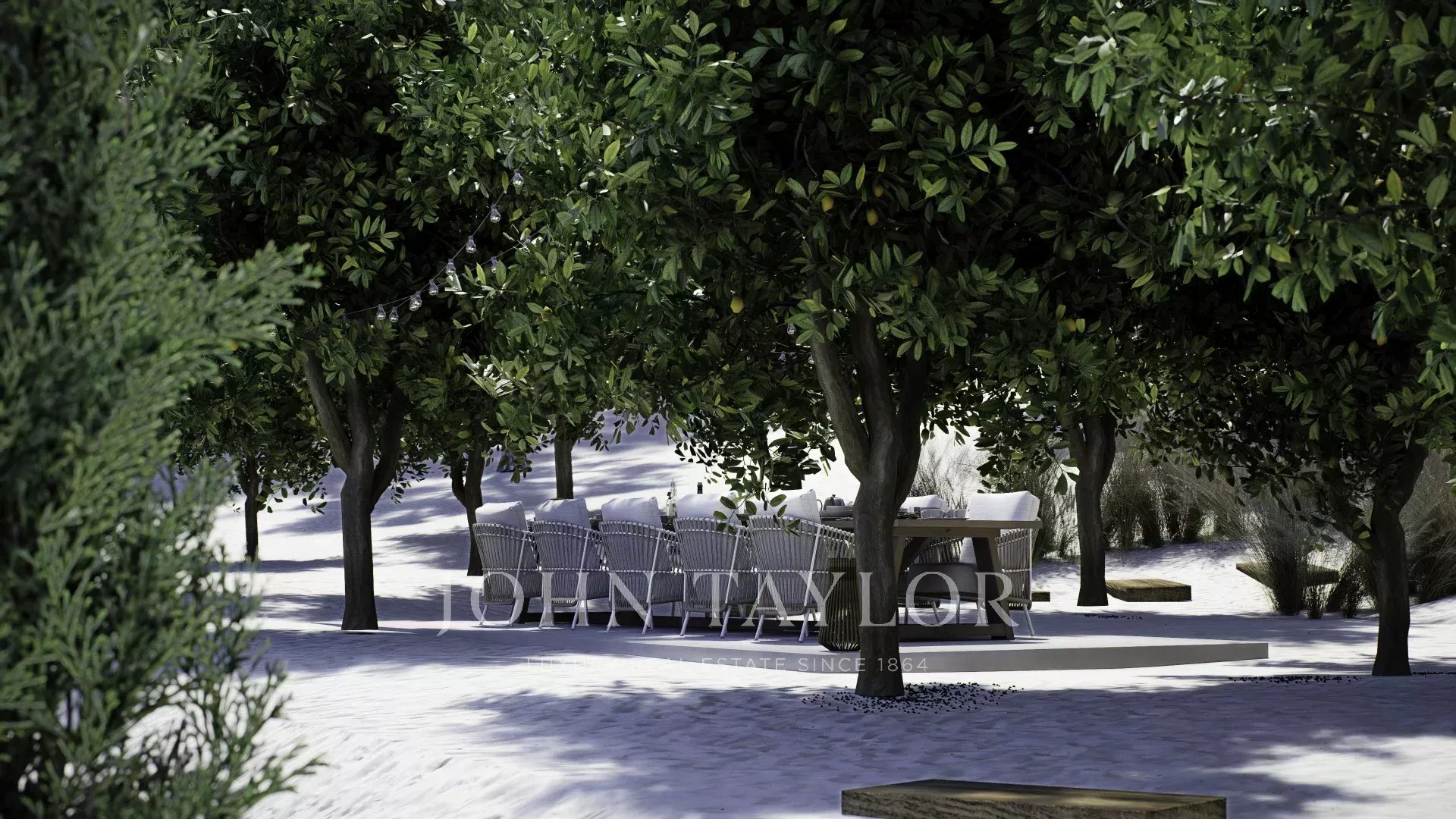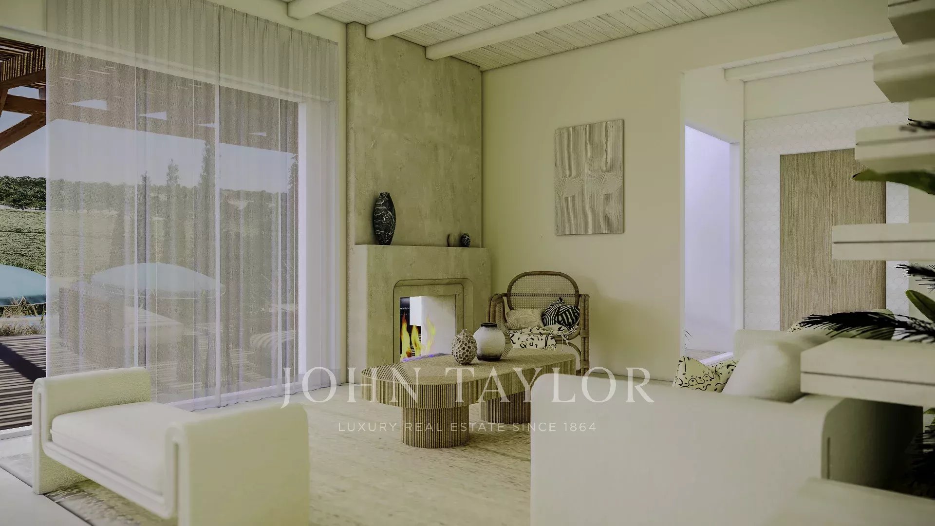 Esta luxuosa propriedade, atualmente em fase de construção, oferece 335 m² de área bruta implantados num terreno de 8.250 m², com vistas deslumbrantes sobre a lagoa e os campos de arroz de Melides.