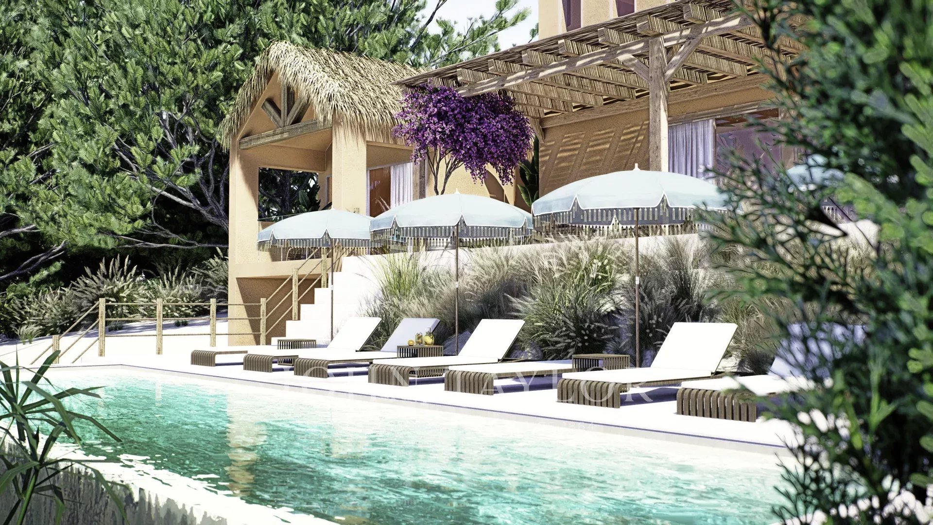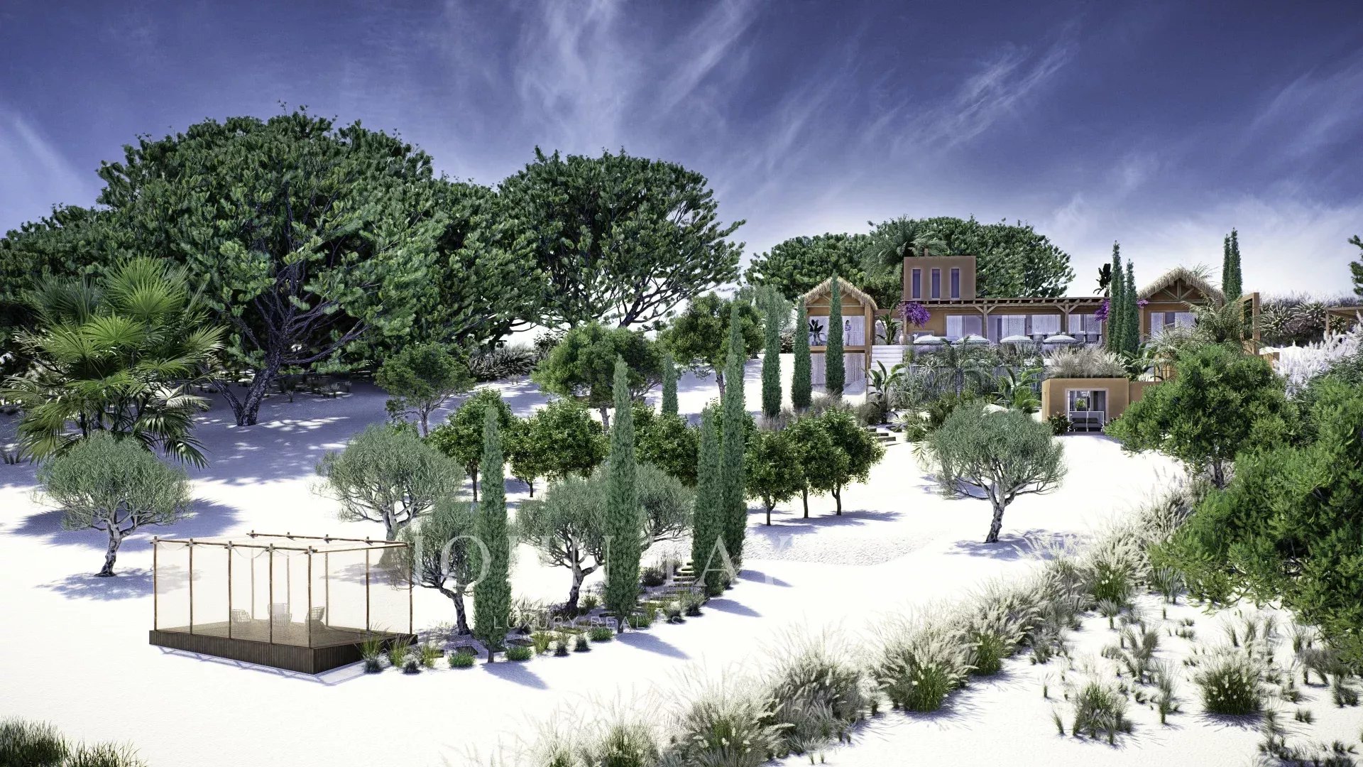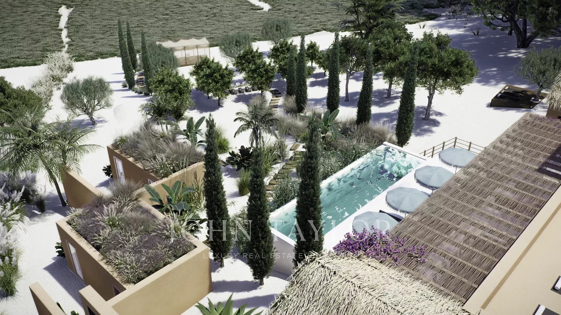 Esta luxuosa propriedade, atualmente em fase de construção, oferece 335 m² de área bruta implantados num terreno de 8.250 m², com vistas deslumbrantes sobre a lagoa e os campos de arroz de Melides.