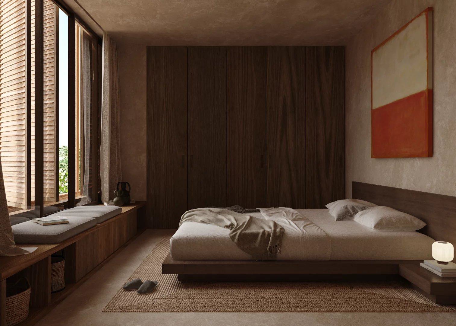 A arquitetura do empreendimento é discreta e requintada, pensada para se integrar naturalmente na paisagem envolvente. Foram utilizados materiais naturais como madeira, pedra e barro, que conferem aos interiores um ambiente acolhedor, elegante e com uma forte ligação ao exterior.
