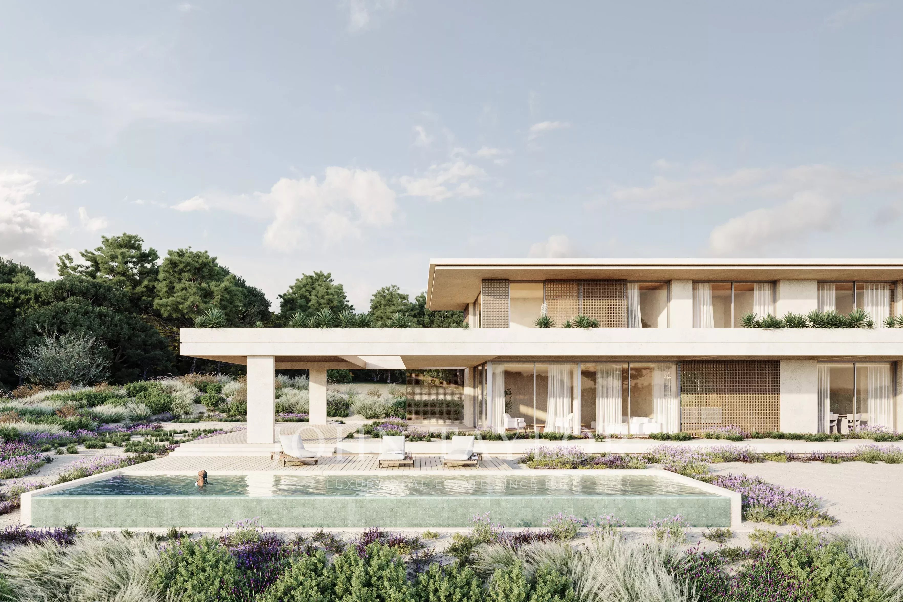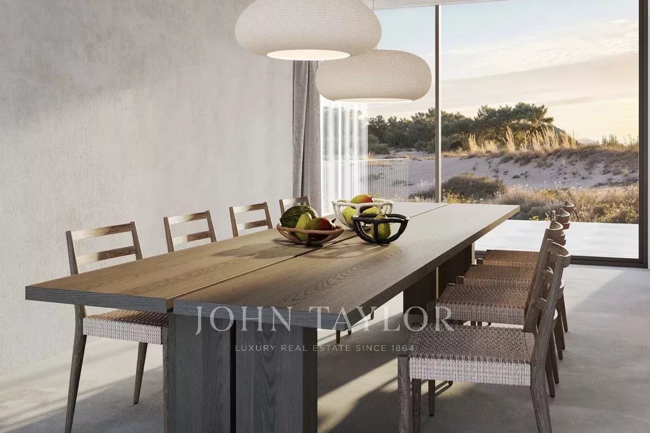 Localizada na prestigiada propriedade do Pinheirinho Comporta, esta moradia de 4 quartos está implantada num generoso terreno de 1.500 m², oferecendo privacidade e uma integração perfeita com a paisagem circundante de pinhal e dunas. Projectada pela AQA Architecture, a propriedade adopta uma linguagem arquitetónica contemporânea definida por volumes baixos e lineares, materiais naturais e uma abordagem estética contida.