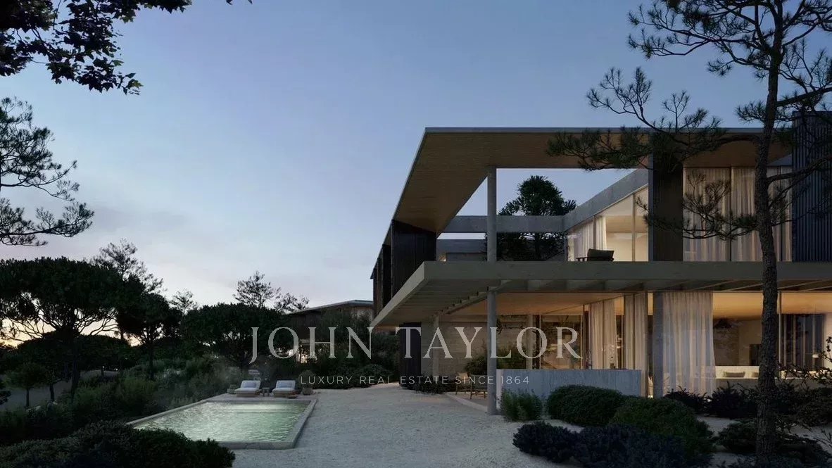 No exterior, conta com piscina privada, terraços para refeições e lazer, e um jardim paisagístico com vegetação autóctone. A localização beneficia de um dos melhores campos de golfe da Europa, lagos naturais e da Praia do Pinheirinho — a apenas 800 metros, acessível a pé. Situa-se igualmente a 75 minutos do Aeroporto de Lisboa e nas proximidades do Pego, Carvalhal e da vila da Comporta.