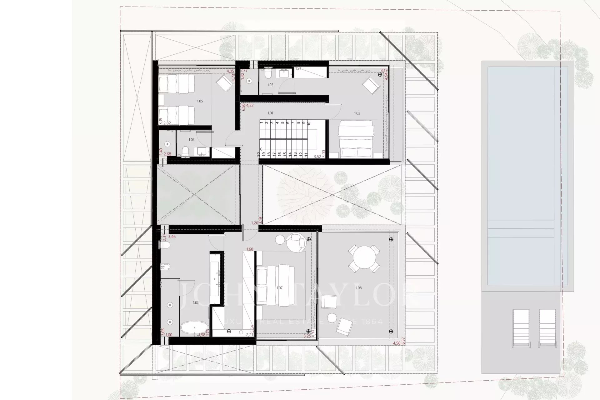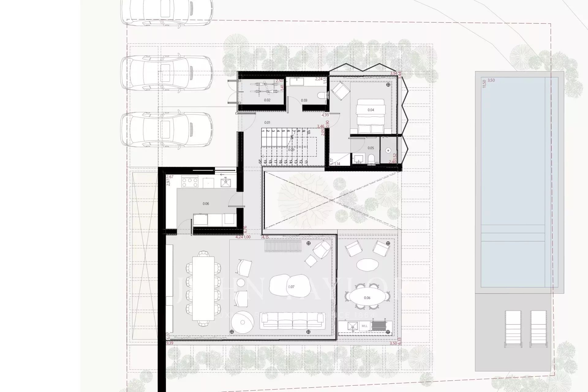 A moradia dispõe de quatro suites, uma ampla sala de estar com acesso direto ao jardim e uma cave com luz natural, preparada para acolher um home cinema, escritório ou suite adicional. Inclui ainda lavandaria e área de serviço. A conclusão da obra está prevista para o final de 2025.