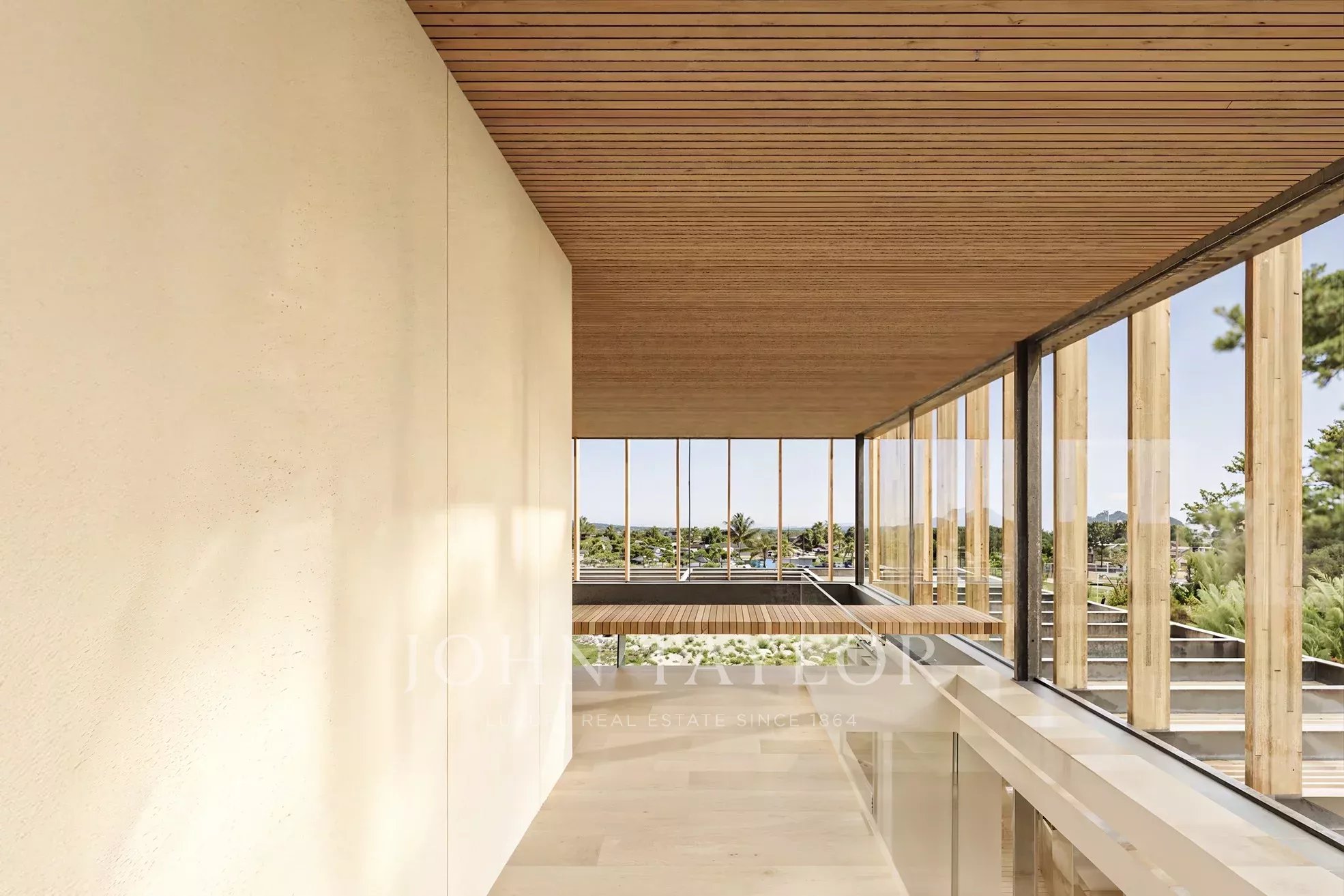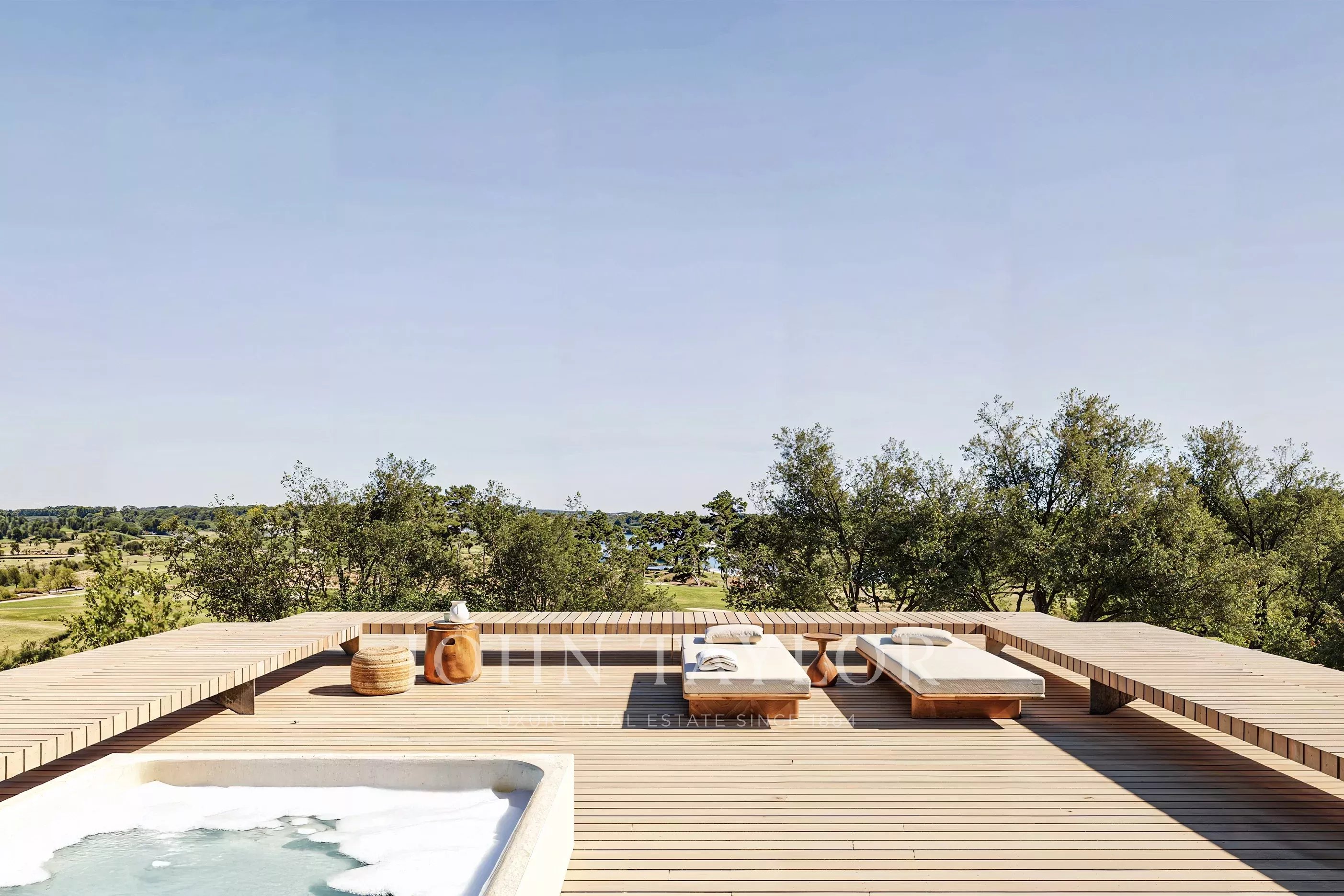 Um terraço panorâmico de 39 m² no telhado com jacuzzi coroa a propriedade, oferecendo um espaço elevado para contemplação e vistas ininterruptas sobre o campo de golfe e a envolvente natural.