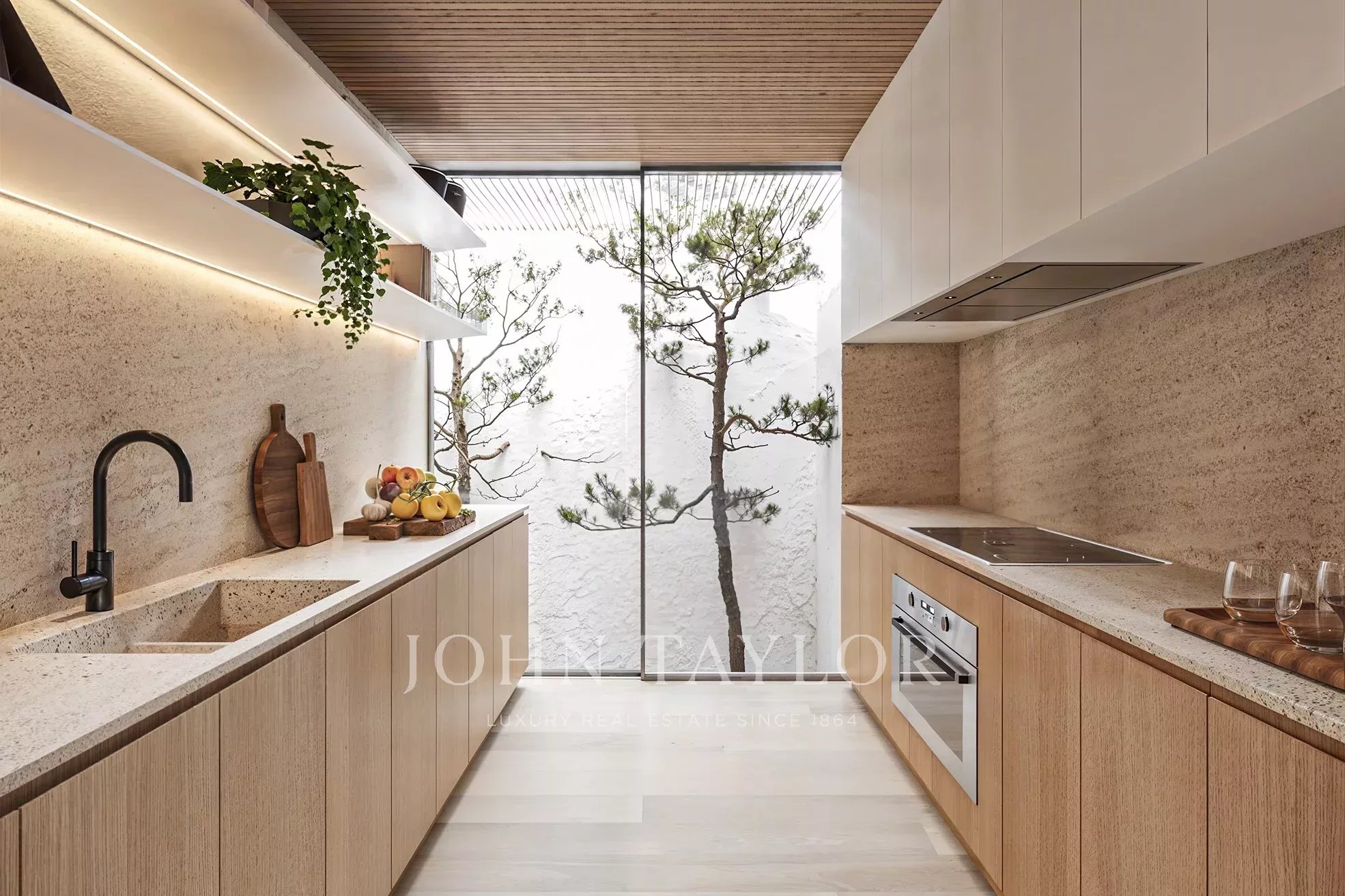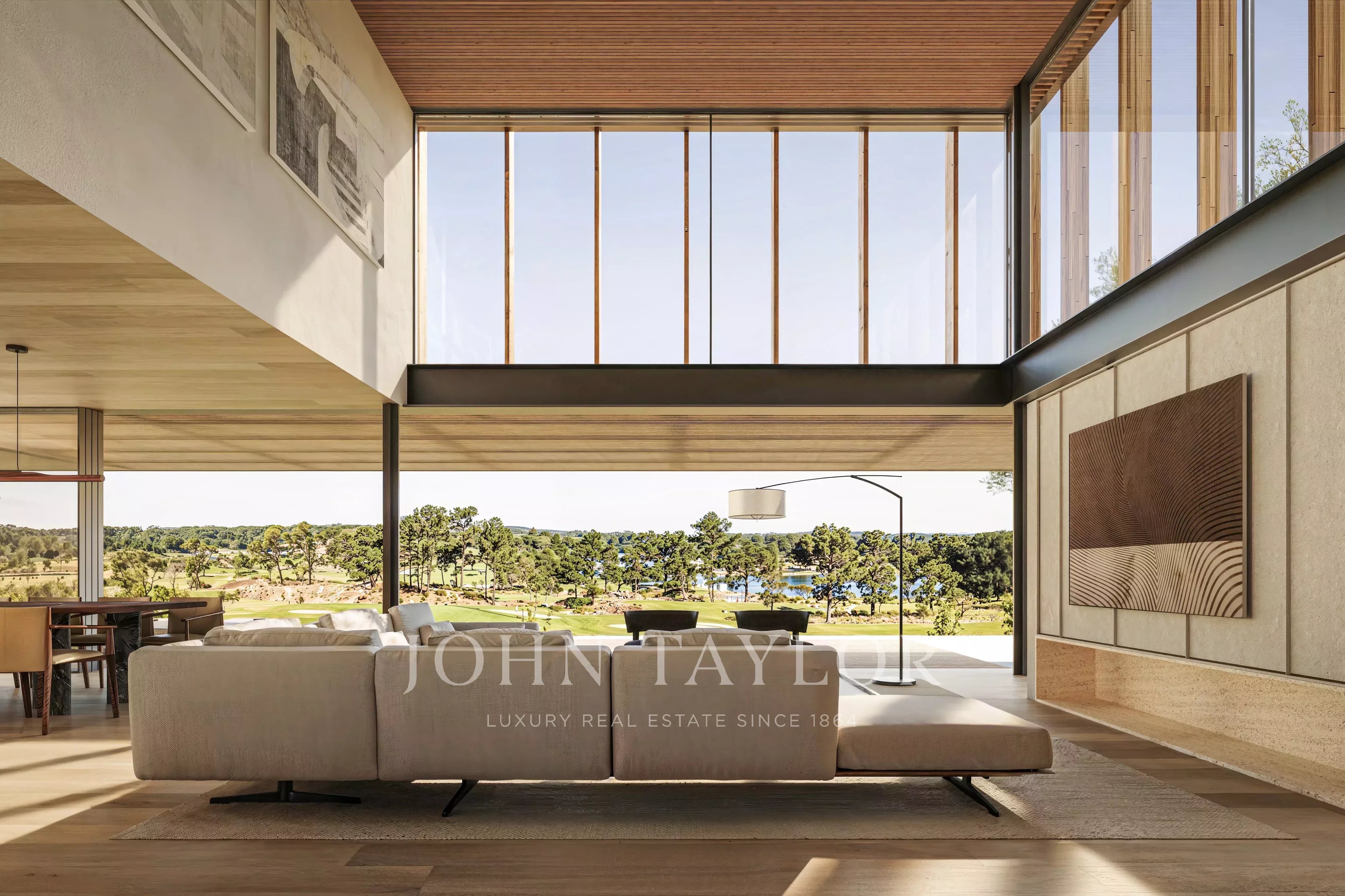 O rés do chão é composto por uma sala de estar de 33 m² com pé-direito duplo, uma sala de jantar de 39 m², uma cozinha de 15 m² e um quarto em suite (15 m²), todos com acesso a áreas exteriores generosas, incluindo um deck de 22 m², um deck de piscina de 40 m² e uma piscina de 68 m² virada para o campo de golfe.