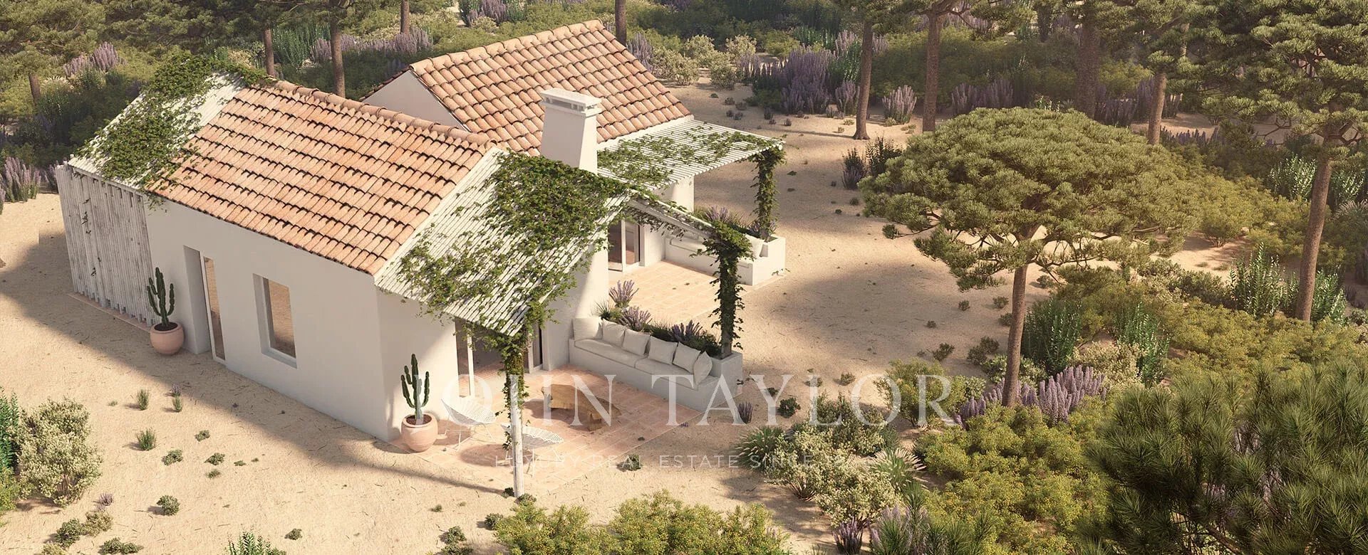 A casa é composta por cozinha, sala e quarto, e tem acesso a uma piscina comum, utilizada por um grupo de quatro casas. O design privilegia a vida interior e exterior, com grandes portas de vidro que se abrem para um deck com sombra. Rodeada por pinheiros, vegetação nativa e caminhos de areia, a propriedade oferece privacidade e uma forte ligação à natureza.