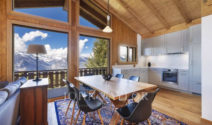 Uma verdadeira varanda com vista para os Alpes Valaisan, esta elegante propriedade virada ...