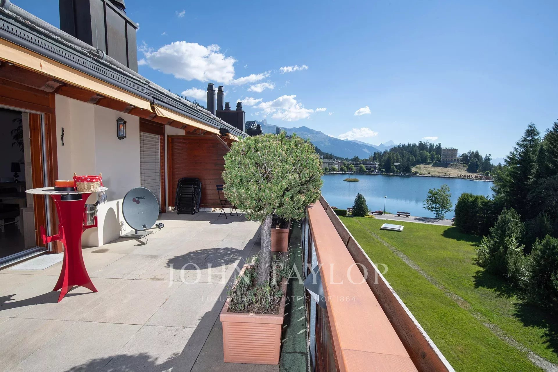Situado entre o centro de Crans e o centro de Montana, este magnífico apartamento duplex no sótão de 225 m2 e o seu terraço de 123 m2 vão seduzi-lo de imediato.