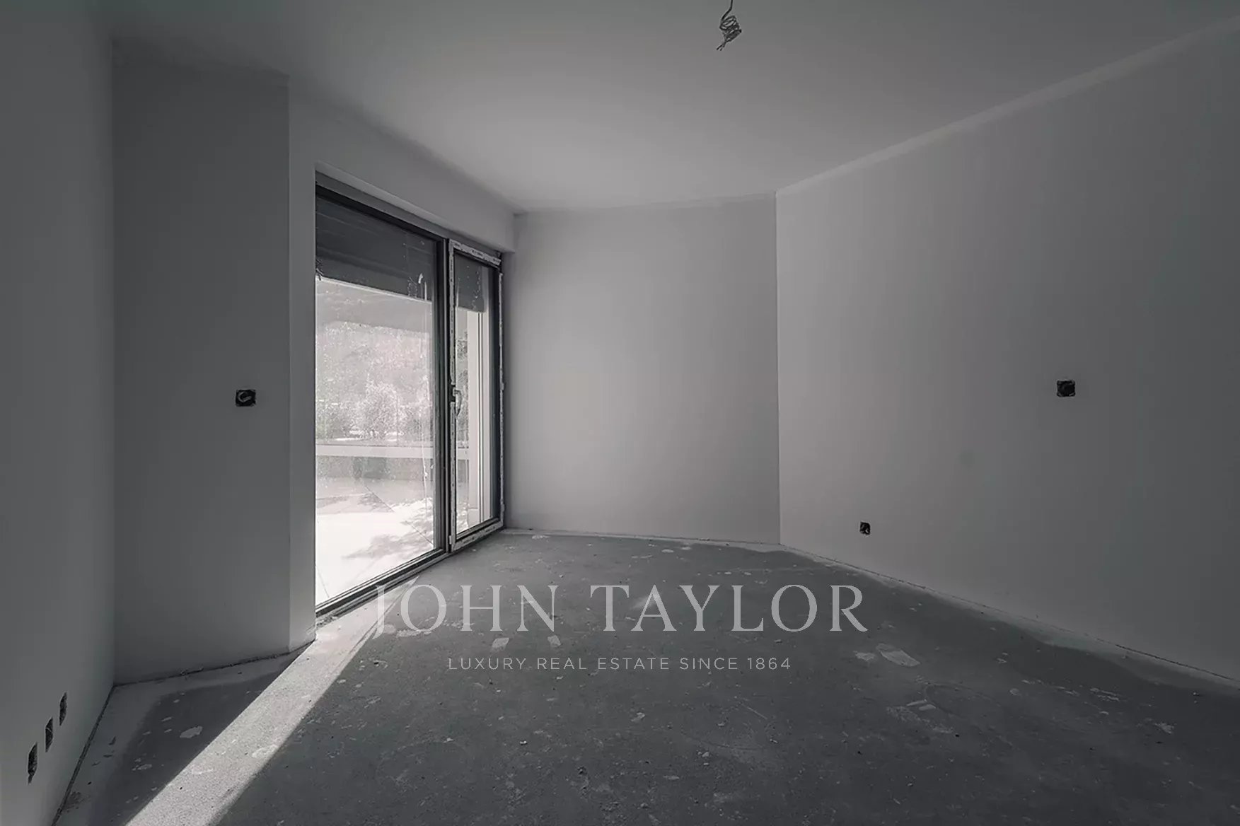 Este magnífico apartamento de 4,5 assoalhadas ao nível do jardim combina um espaço de vida generoso, muita luz natural e caraterísticas topo de gama. Esta propriedade rara oferece o conforto de uma casa com as vantagens de um apartamento contemporâneo.
