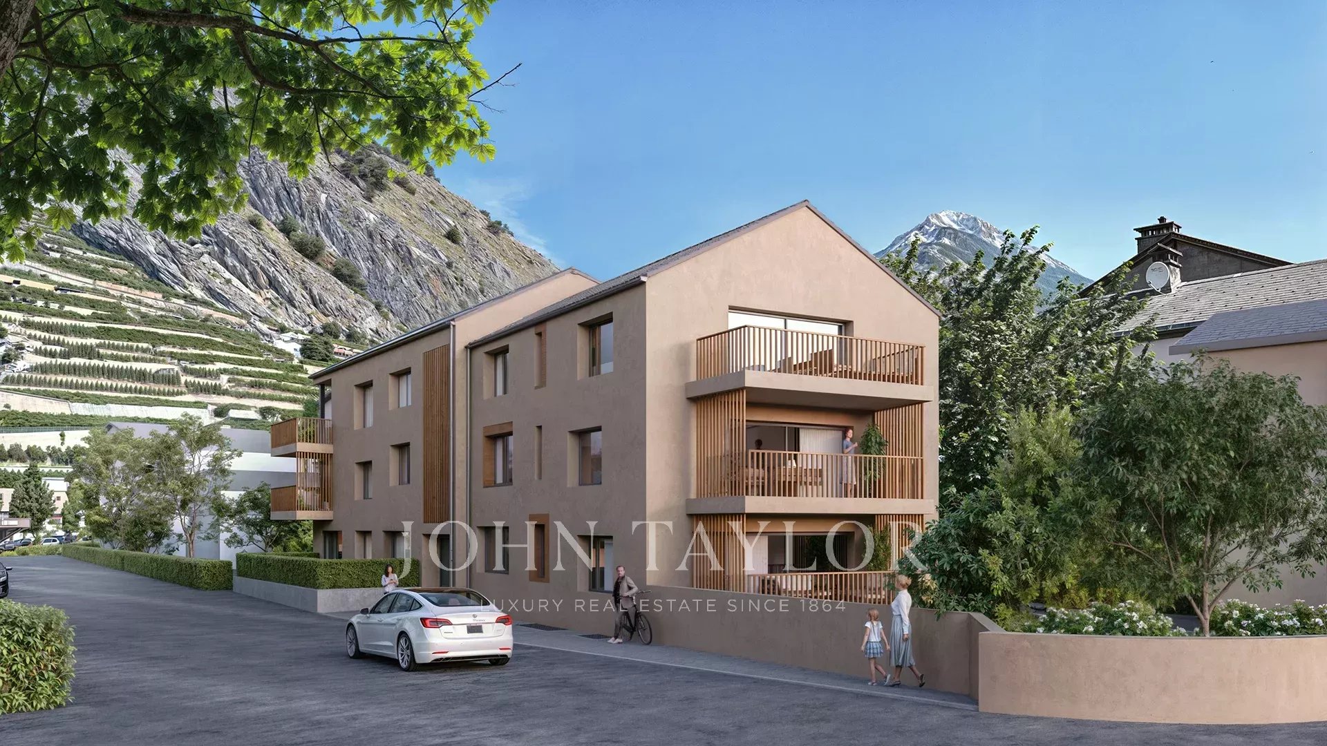 Estão previstos lugares de estacionamento exteriores para cada lote, com um custo de 12 000 CHF por lugar de estacionamento, para além do preço de venda.