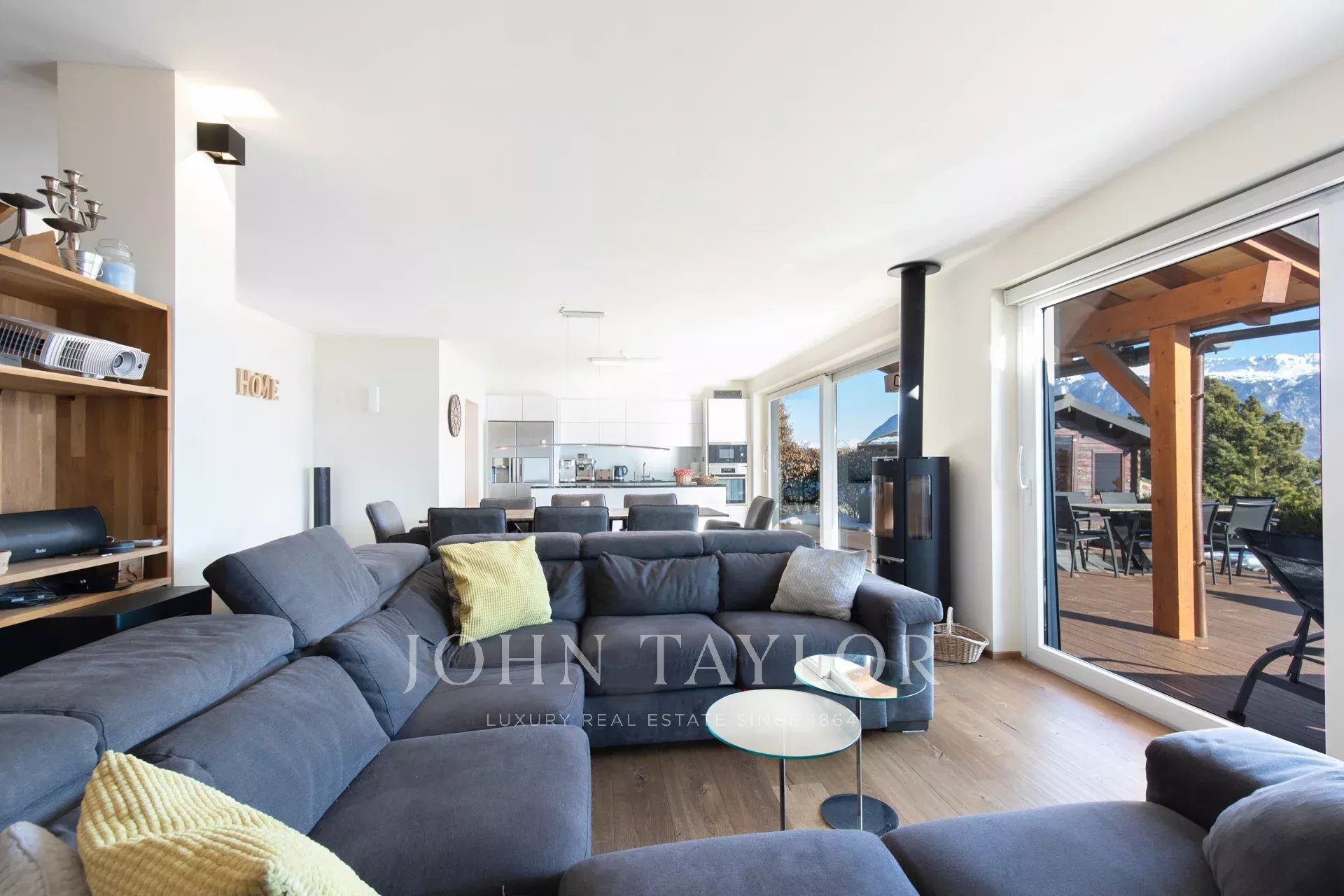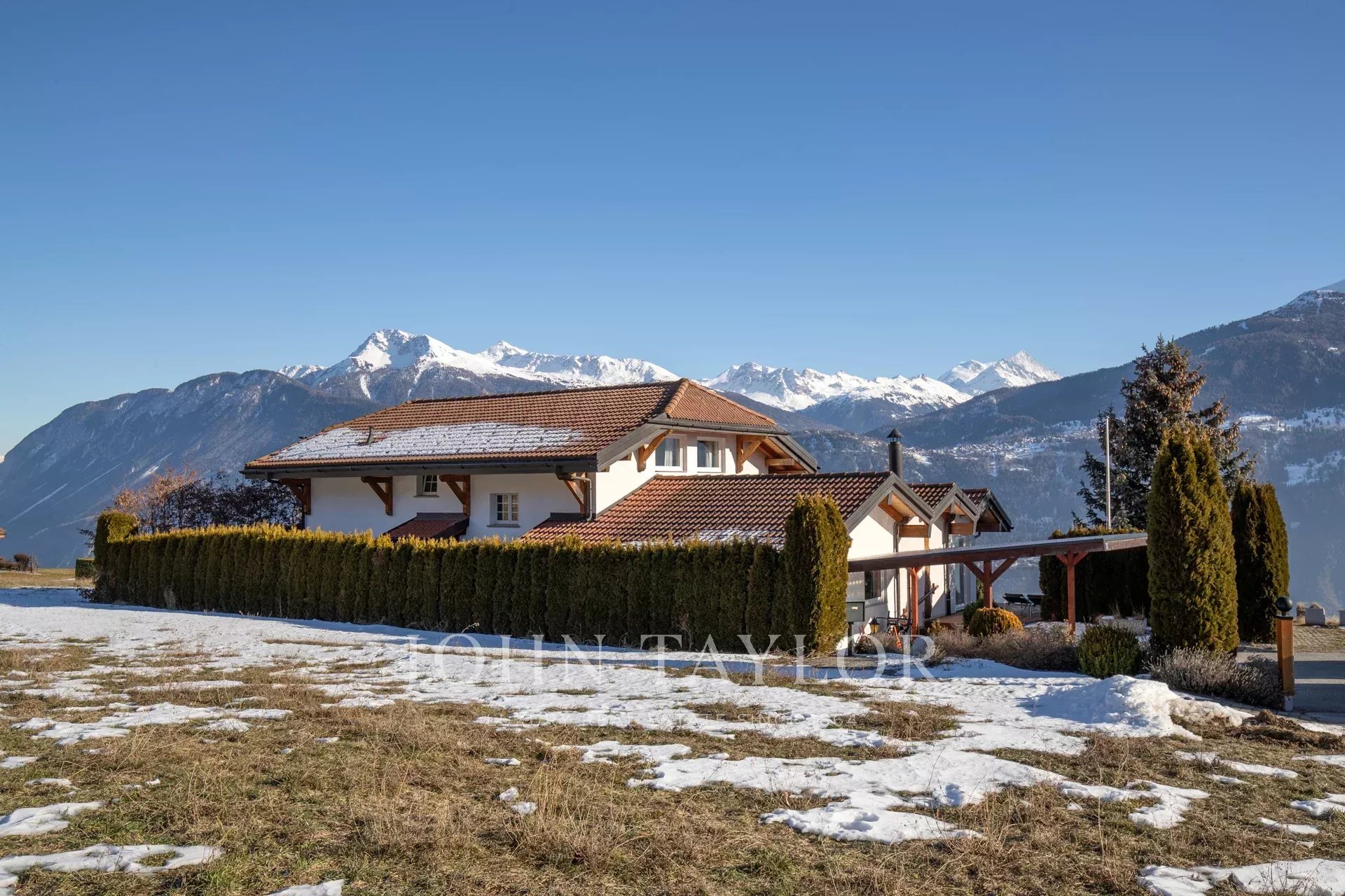 Situada apenas a 6 minutos do centro de Crans-Montana, esta magnífica villa goza de uma localização excecional na orla de uma quinta com vistas ininterruptas para os Alpes e sem poluição sonora.