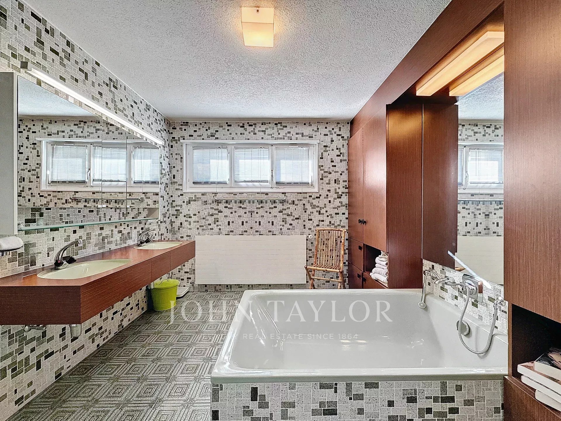 O jardim de 300 m² com as suas árvores e vários terraços é um refúgio de paz. O caminho de acesso pavimentado e o estacionamento para 4 veículos garantem um conforto ótimo.