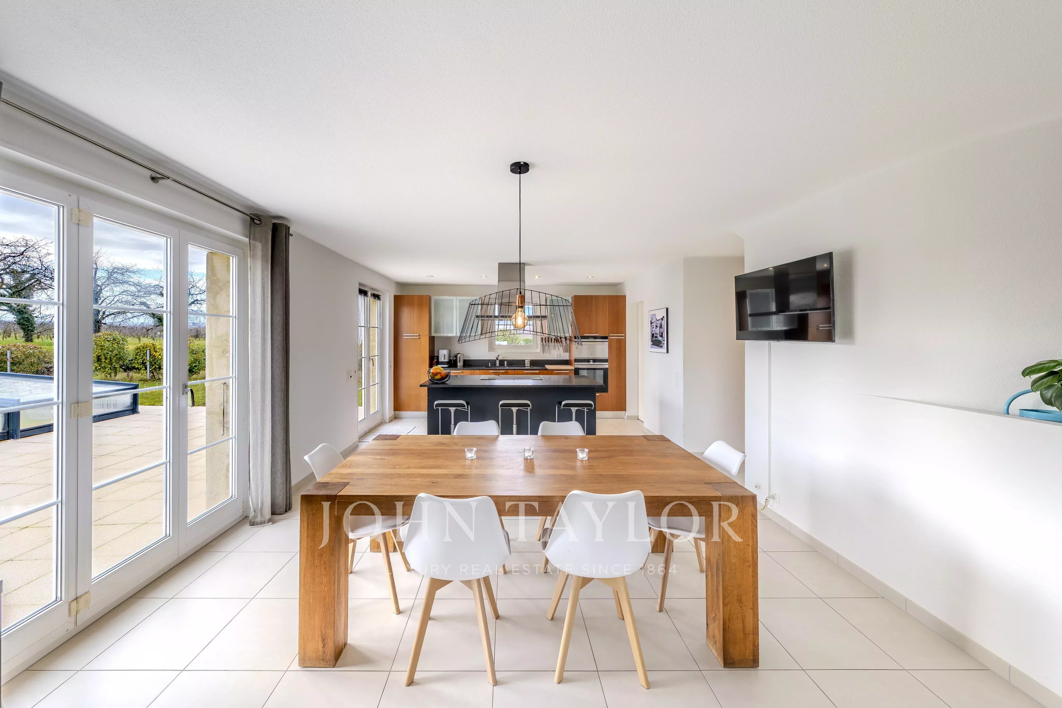 -Sala de jantar acolhedora e aberta para o exterior