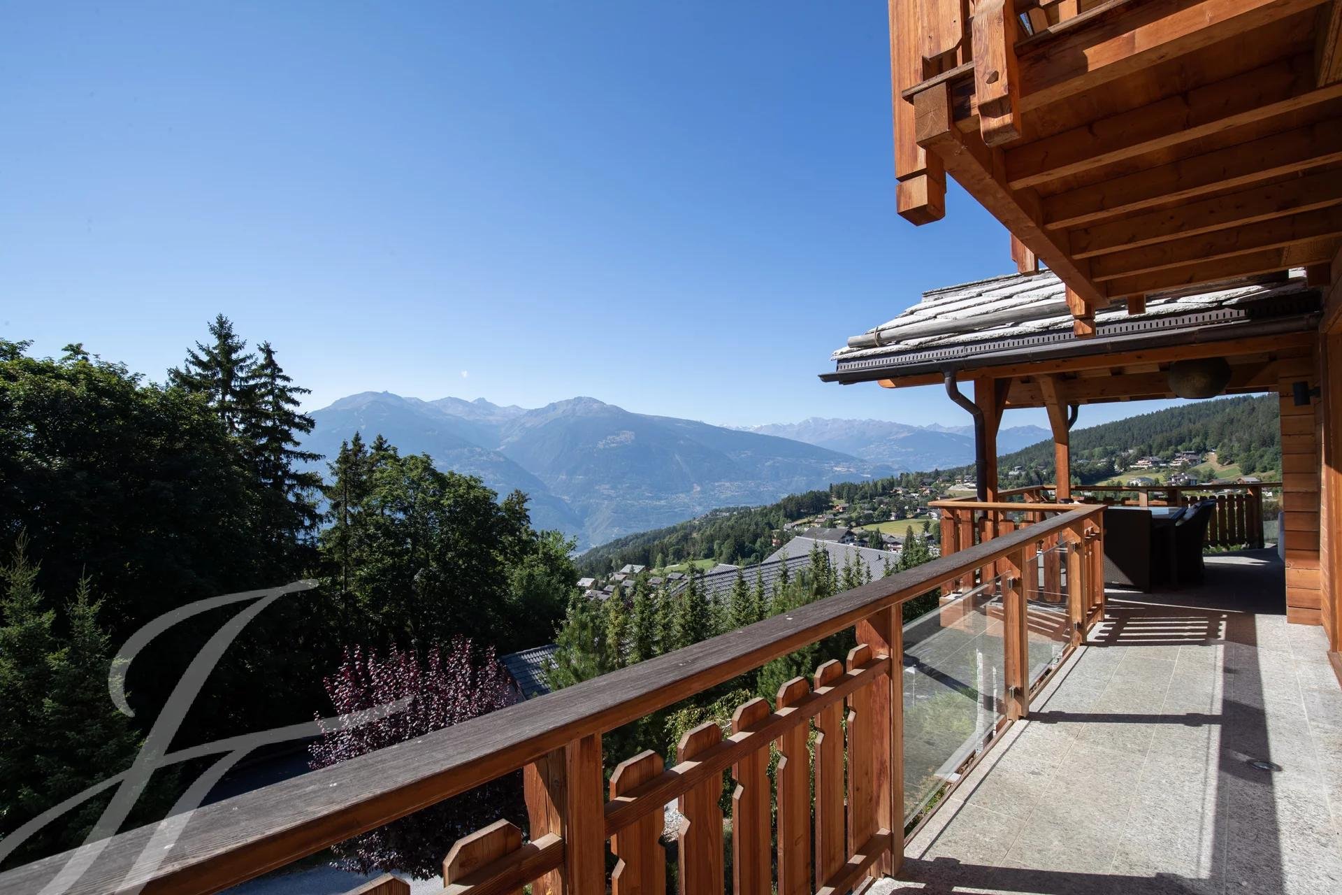 Uma verdadeira varanda com vista para os Alpes Valaisan, esta elegante propriedade virada ...